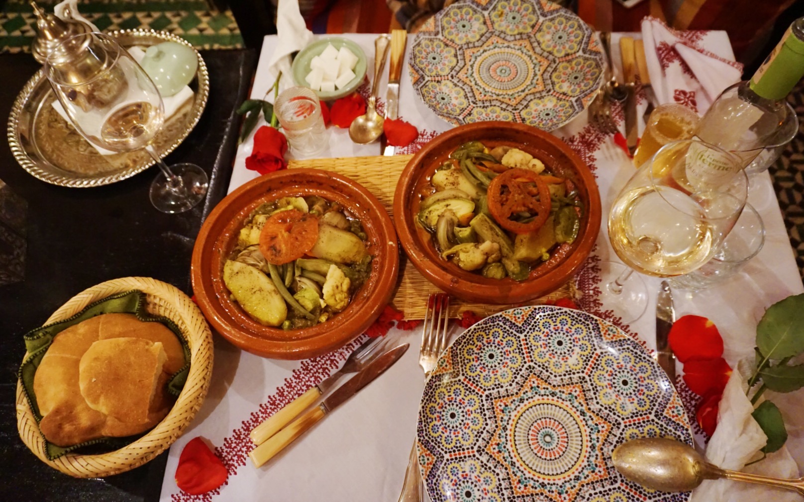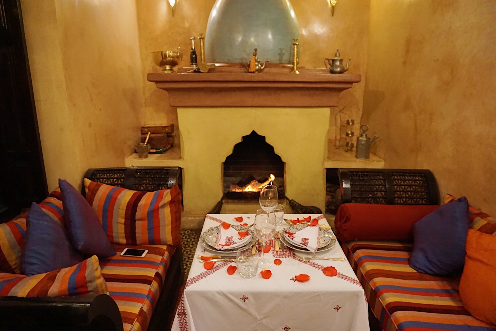 由於第二天早上要早早趕路出發至 撒哈拉沙漠 所以跟網美小夥伴決定晚餐就在酒店解決,但是味道竟然出奇的好吃,尤其我們點了一個蔬菜湯好喝到我們相繼續了4碗,然後店家都很用心的佈置餐桌,管家老爺爺還贈送了兩朵玫瑰花~真的很貼心,後來結賬的時候發現其實消費還是蠻高的,我們兩人吃了450迪拉姆不過服務和味道都很滿意~