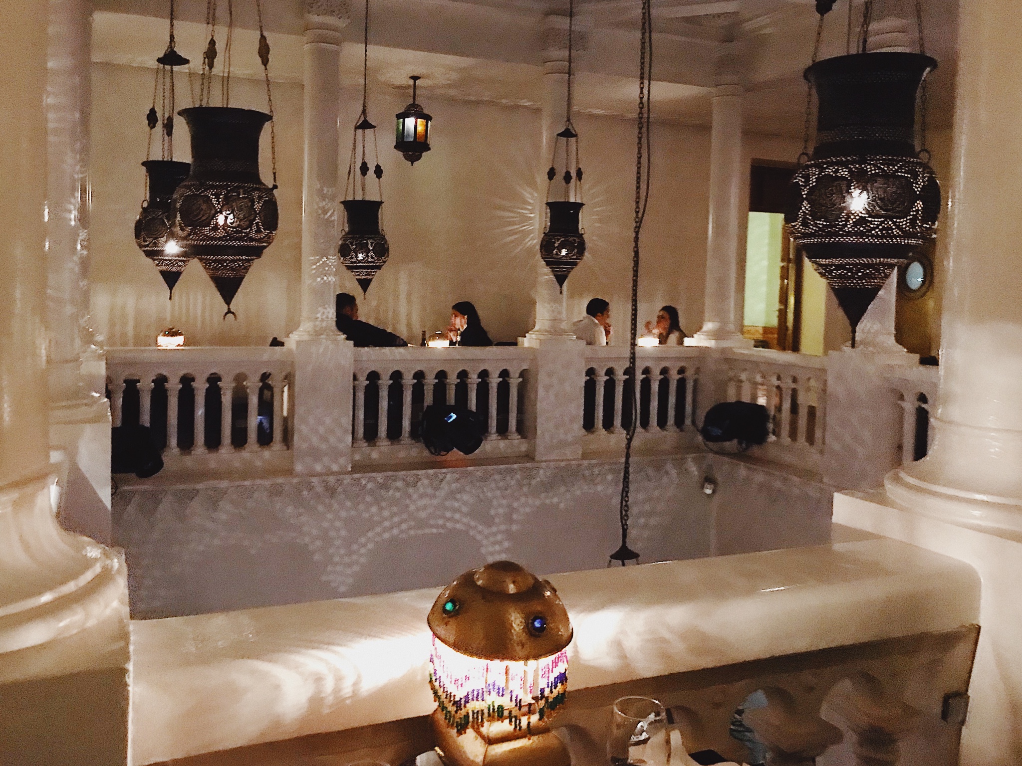 晚上在網紅咖啡館Rick's Cafe吃晚餐,晚餐我們是提前在螞蟻蜂窩預約的,每人10塊人民幣的預約費用,抓住 . 北非 諜影.(又名卡薩布蘭卡)這部電影的尾巴,網上評價都說餐廳出品和味道都一般般,純粹只是打卡感受電影氣氛,但我們點的東西都很好癡~~尤其有一道是蝦的 沙拉 很好吃(這裡忘記菜名了)中高消費,我們兩人晚餐點了三道菜、一瓶蘇打水,,消費是400迪拉姆左右