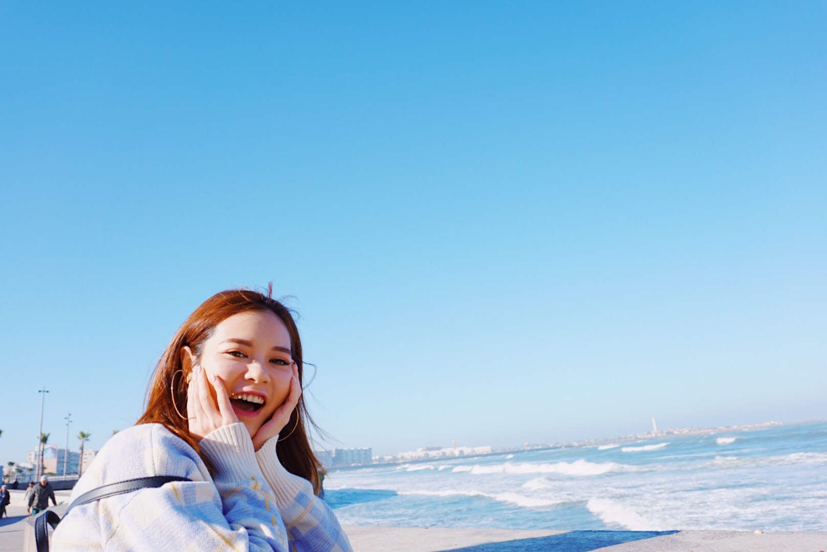 清真寺的旁邊有一個很大的公共設施場所,然後你會看到大西洋。在這裡被大西洋的海風吹醒了,開心到像長了翅膀一樣