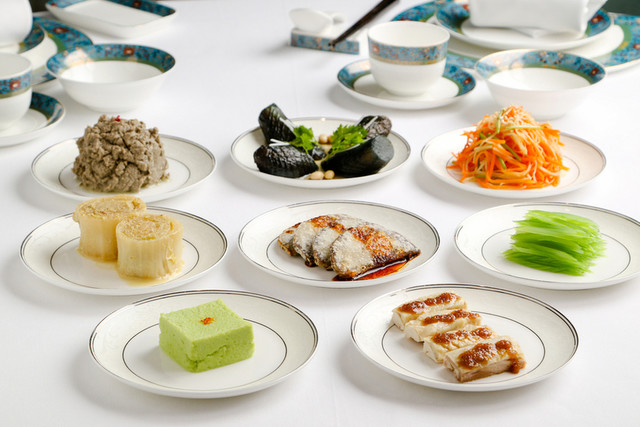 在精细的前菜和点心、味道浓厚的汤品之后,紧接香炒梅山猪肉。另外包括蜂蜜腿肉和炭火烤胸肉的乳鸽盘也是该店的名菜。