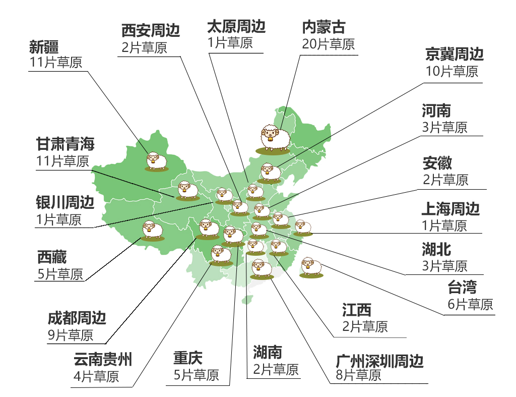 克什克腾旗。它地广人稀,房屋寥若晨星,平均每平方公里不过12人,而这片土地上的牛羊却数以万计,多如牛毛。茫茫草原上,敦厚的牛,肥美的羊,奔腾的马,翱翔的鹰,随处可见。【如何前往】京承高速——大广高速——京密高速——京加路——G111——京成线——首都环线高速——G239——S105——丹锡高速【呼伦贝尔——呼和诺尔草原旅游景区】特点:有美丽的呼和诺尔湖,景色绝佳位置:内蒙古自治区呼伦贝尔市陈巴尔虎旗,距离1889km,约21小时//www.achim-lelle.com/poi/5436025.html