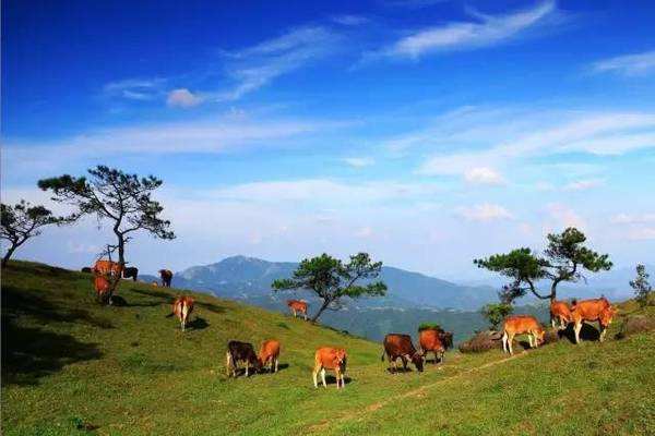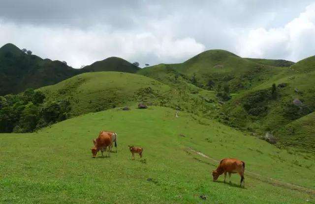 这种只在川藏云贵高原才有的景色,堪比“香格里拉”和九寨沟,在八排山的最高峰,极目远眺,只见群山茫茫,大有“一览众山小”之感叹,山顶上天然形成的开阔草原是一个当地群众称之为八排顶的天然大花园。牛群三三两两悠闲自在地漫步和吃草,仿佛置身于世外桃源。【如何前往】:自驾线路:云浮出发—广昆高速—罗阳高速—深罗高速—双东立交桥出口—S352—龙华东路—兴华三路—迎宾路—G324—S280—S369—船步镇。公交线路:在广州市各汽车客运站乘坐到罗定市区的客车,到达后转乘到船步镇的班车。【阳江——阳春鸡笼顶大草原】特点:南方最大草原位置:广东省阳江市阳春市双滘镇七星村,距离广州245km,自驾车程约4小时