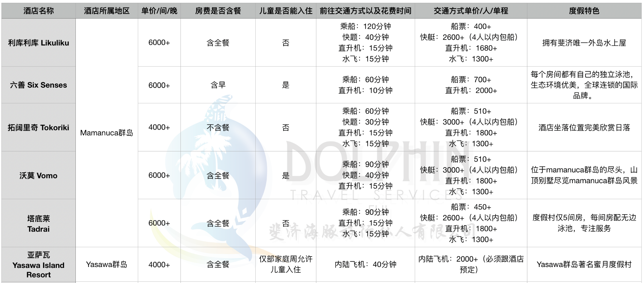 likuliku很不错啊,还有就是瓦努阿岛 浮潜很不错 具体还要看亲的预算,根据您们的预算推荐合适的酒店========== 如果你觉得TA的回答不错,快来给TA点个赞吧! 你的支持是对作者莫大的鼓励~显示全部