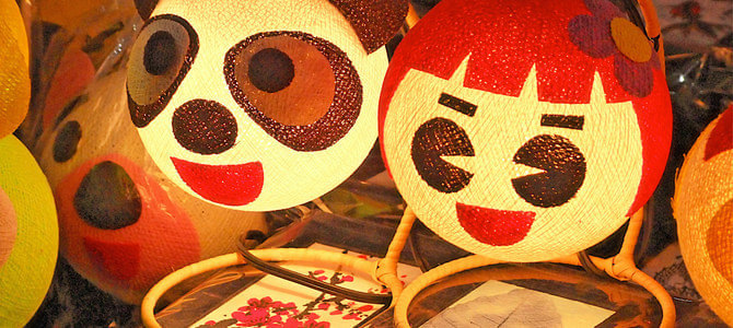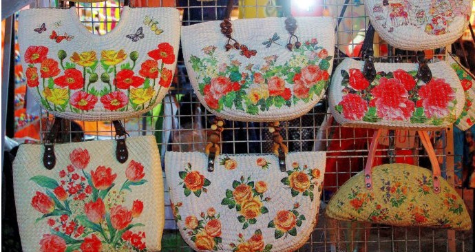 每逢夜幕降临,夜市便有很多摊位燃起漂亮的灯笼,有藤编的、纸制的、丝绸的,造型奇异,十分漂亮。这些灯笼大多是工匠手工制作,利用纯天然材料,图案大多采用手绘,创意丰富。