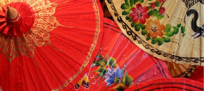 手绘纸伞是泰国著名工艺品,手绘大部分是各种动物或花卉的图案。这些色彩艳丽的伞和扇子有极高艺术价值和欣赏价值,令人爱不释手。
