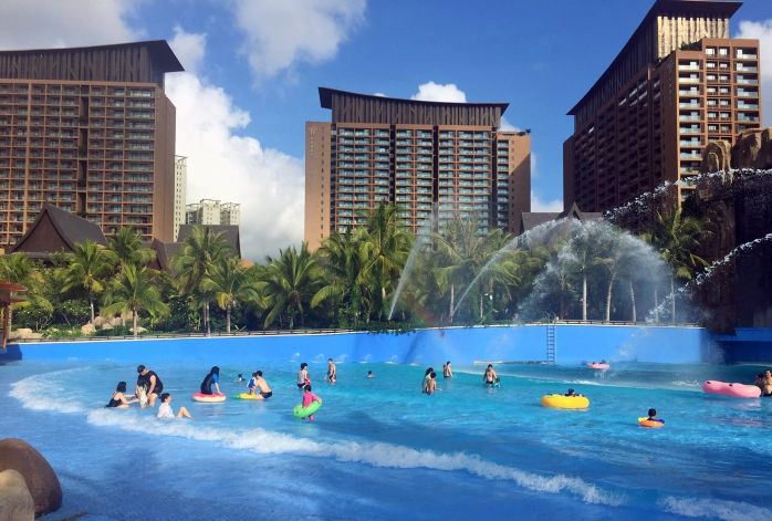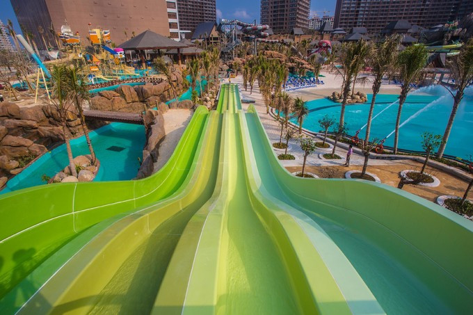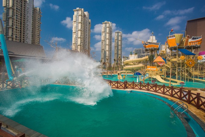 水上乐园度假世界的中心是中间有一个最大规模的水上娱乐中心--亚马逊水上乐园--亚首家造浪泳池、丛林漂流、火山主题水乐园,占地面积超3.3万平方米。