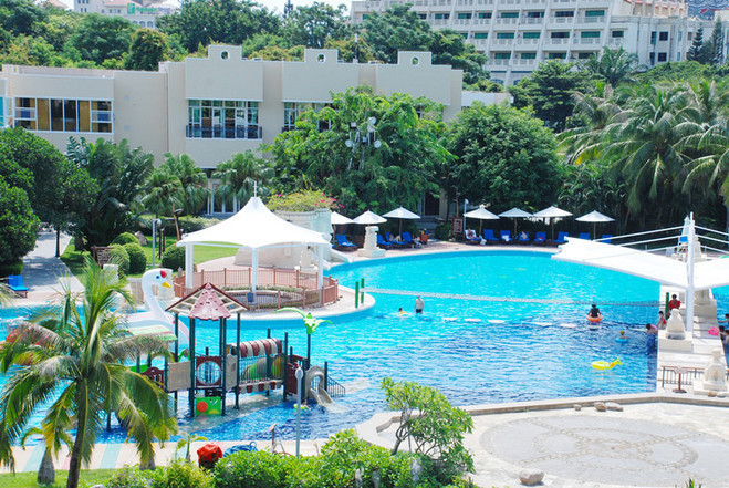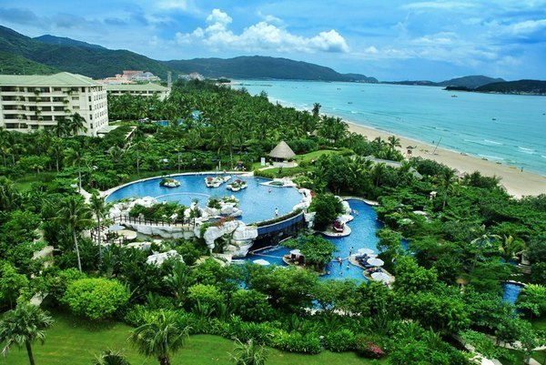 的粤菜和海南特色菜肴。【园林】:热带风情的园林中镶嵌了5个泳池,对于喜欢泡酒店的客人,极其方便,酒店的无边大草坪,直通海滩,很是漂亮。