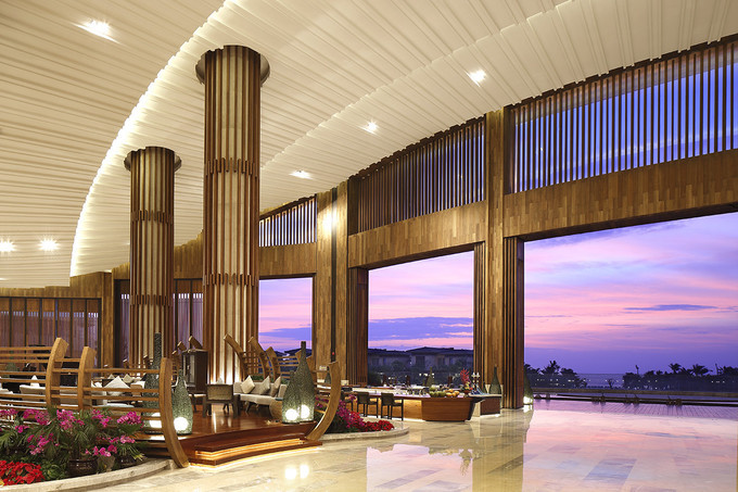 【特色】:酒店有内部水系,可以坐船游览,喂喂鱼,有种水上威尼斯的感觉,客人也可以乘坐贡多拉船往返于客房和餐厅之间。木雕艺术馆周围有高尔夫推杆果岭,设有瑜伽、排球等活动,酒店具备私人海滩、私人游泳池、室外烧烤区等。不出酒店也能有多种度假体验。【风格】:热带植物茂盛,很具东南亚风情,客房设施配有经典艺术品,典雅高贵。【餐饮】:早餐品类特别丰富,每天晚上都有不同主题的自助餐宴。中餐厅提供多种精致