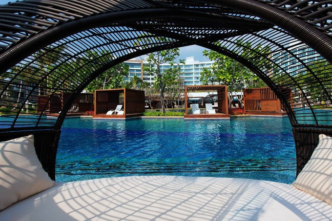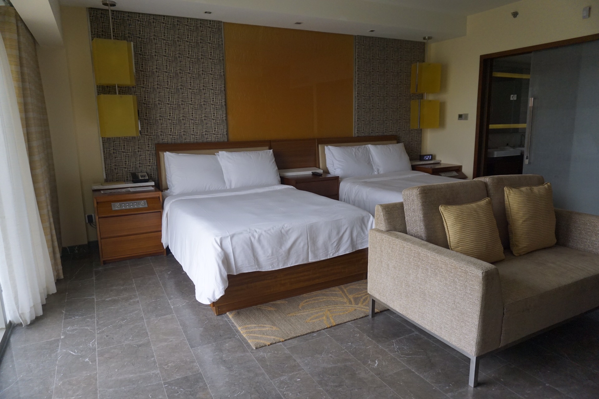 酒店隶属于喜达屋集团,是旗下的人性化服务型酒店品牌,紧邻国际免税城。大楼外观类似鸟巢,一楼是直通泳池的房间,适合带小朋友的家庭。