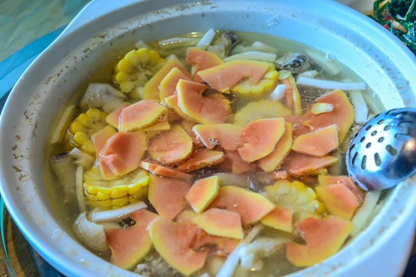 如同嫌汤料太寡淡,还可以加入 海南 木瓜和玉米同煮,汤头更加鲜美,这也是一大锅热带风情的养颜汤。