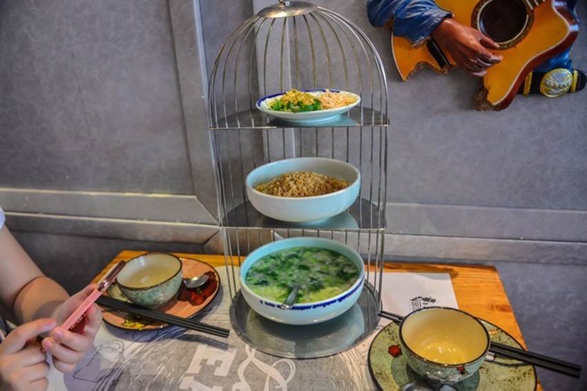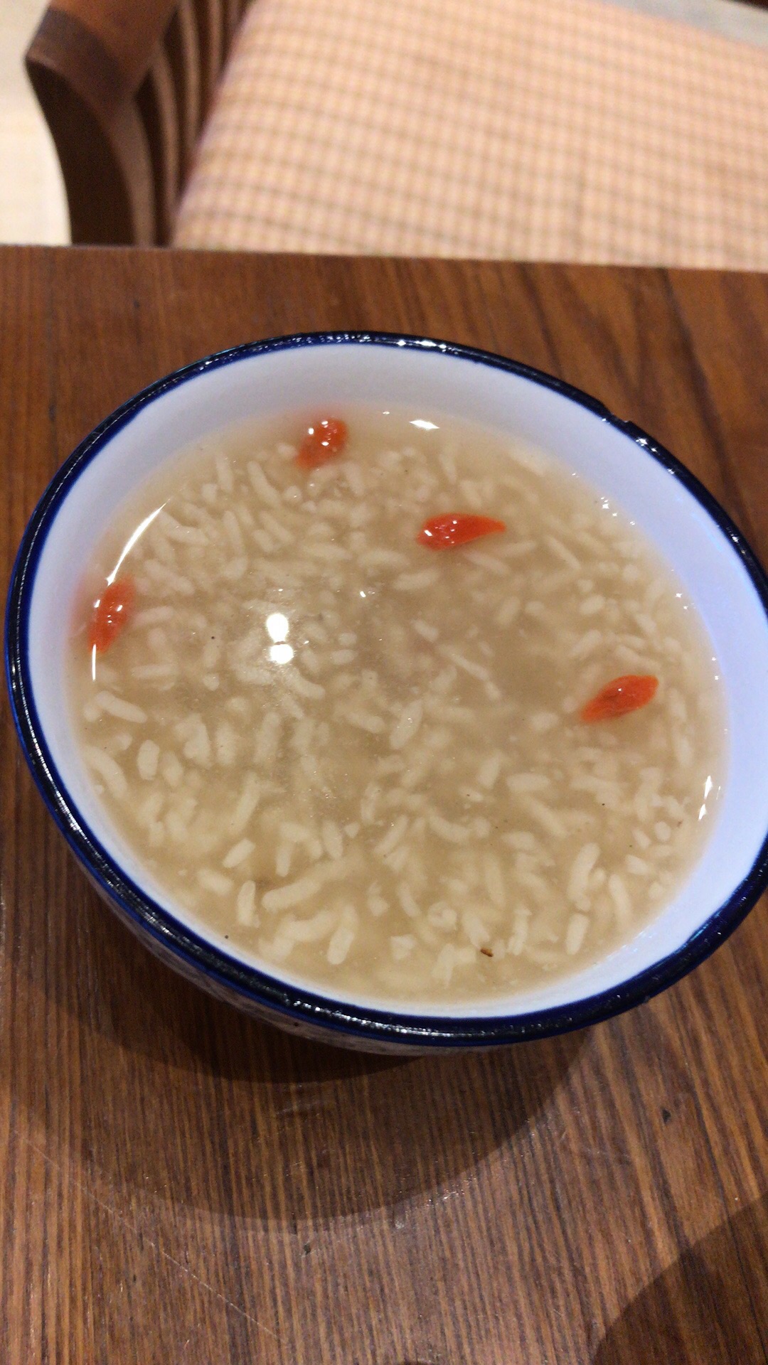 店内的必点--没吃过的海鲜泡饭,第一层是海鲜蔬菜汤,第二层是煎得脆脆的粟米,第三层是葱、姜丝和小菜,吃前先将粟米用勺子舀到碗里,然后加海鲜汤,加葱姜,鲜美得让你合不拢嘴,特别是脆脆的粟米,是小孩子的最爱。