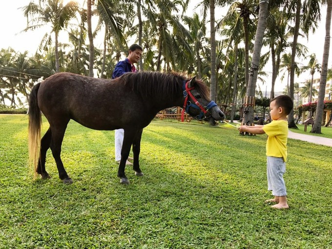 不仅室内儿童设施齐全,室外也有适合不同年龄小朋友的娱乐设施,还有刺激的水滑梯。值得一提的是酒店内还有个迷你动物园,小朋友可以和小马、孔雀等小动物亲密接触,非常不错的体验。