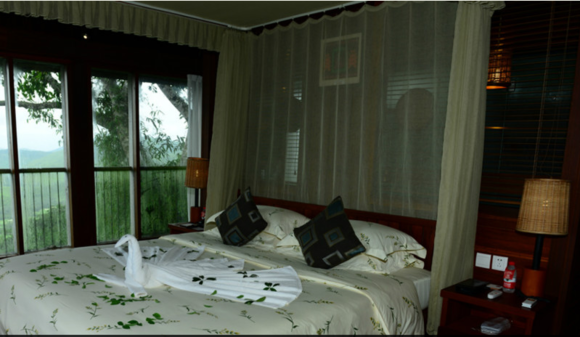 【省钱攻略】:如果预算有限,但是又想体验雨林别墅,那就选择麻雀房吧, 麻雀房是小小一间屋,基本上只有一张双人床, 大门和床之间的距离,只有一个行李箱的宽度。 房间没有电视,没有卫生间,但睡衣、保险柜、洗漱用品这些基本设备都有,酒店一共有16间麻雀房,有一个公共卫生间,很大,装潢卫生也不错,楼下就是泳池,泳池旁有几间淋浴房,都离麻雀房很近,如果不考虑裸着上洗手间、裸着走出酒店,那基本上就没有什么不方便了。【适合人群】:特别适合情侣入住。