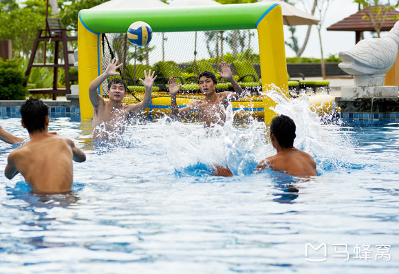 【观赏型娱乐】:露天电影、喷火表演。【泳池】:提供儿童滑到和多个不同种类和规格的泳池,满足孩子们的各种需求。【其他特色】:自助早餐很是丰盛,很多蜂蜂对该酒店的早餐赞不绝口。迷你酒吧的酒水均免费!【缺点】:2014年刚开始,植被比不上别的酒店那么茂盛。【地理位置】:位于开发区,距离15分钟车程,距离火车站有20分钟车程,距离市中心和凤凰国际机场均有40分钟车程。【适合人群】:亲子游 高端家庭度假海棠湾万达希尔顿