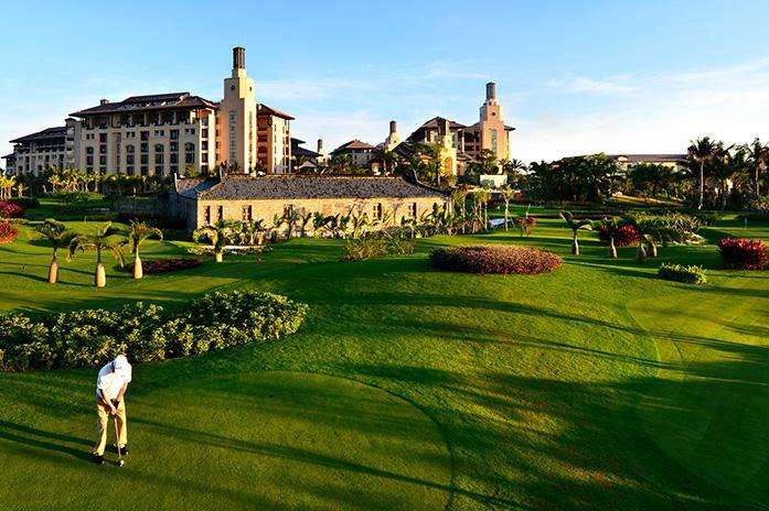 酒店中心区域是最负盛名的天域花园。园内遍植名贵热带植物,品种多达上千,经过酒店的苗圃基地精心培育,椰树、棕榈已蔚然成林,更有鹦鹉蜂鸟翩跹其中,人在其中,宛如置身于向海的花园中。