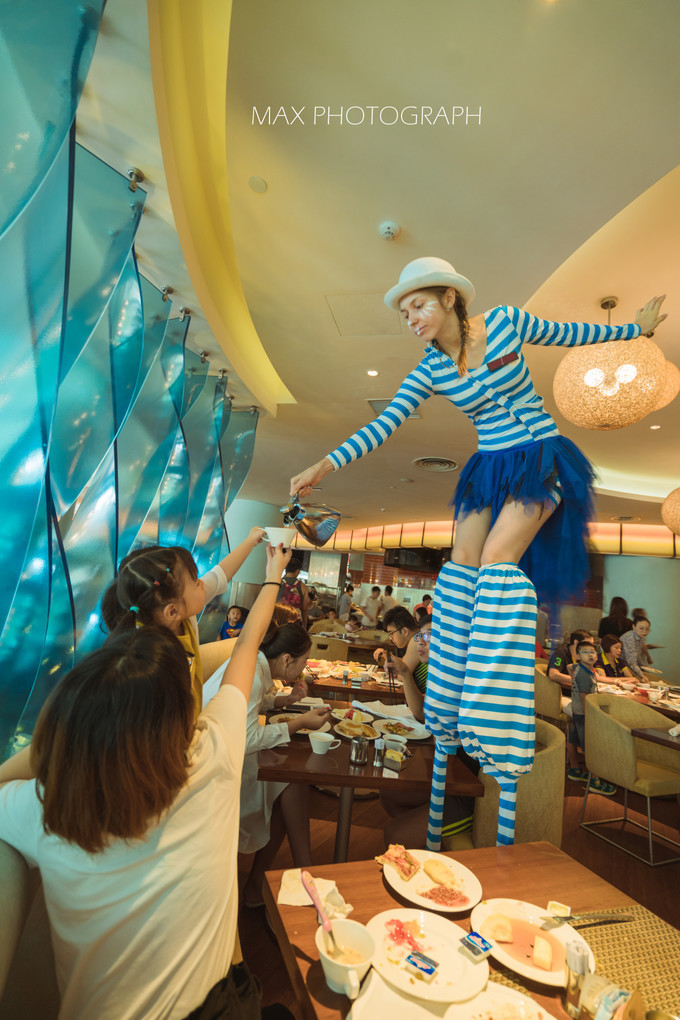 宝宝惊喜地与每一种经过的海洋生物打招呼!在他小小的世界里,每一个新发现都足以让他兴奋、大叫!即便是成年人,在这庞大的生物群众前,对会有对自然生命的敬畏与喟叹:这是一个怎样奇妙的世界啊!香喷喷的烤鱼烤虾、丝滑的奶酪、酸甜的水果 沙拉 还有瀑布巧克力奶球······每一样都让我么流连驻足,赞不绝口。