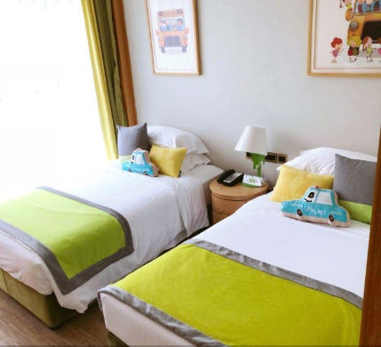 特别设有《大头儿子小头爸爸》主题房,超大的落地窗、黄色的儿童帐篷和特色的洗漱用品,非常适合年纪稍小的小朋友。
