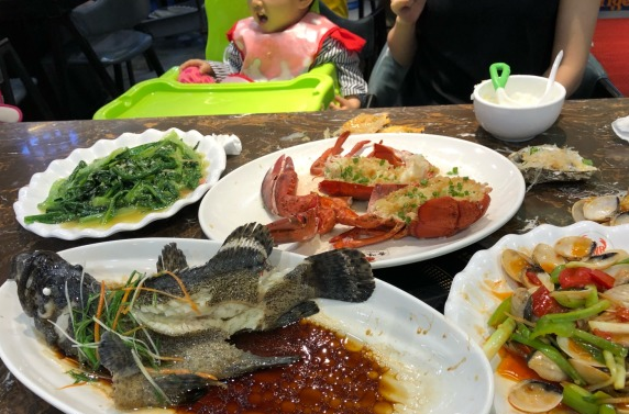 旅行中除了住的好,还有一项重要的事就吃好,尤其是带着宝宝更要吃好才能有充足的体力去玩。说到的饮食海鲜是占据首位的。这里的人们常说无海鲜,不。因为住的离市区近,所以选择去第一市场吃一顿海鲜。当地的朋友也热情的介绍到:这家海鲜店是他经常来的,每次有朋友来 他都会带朋友到这家 重庆英姐海鲜店,说是味道好、价格公道,看门口有这么多人等位就知道了,她家的味道肯定不错。而来这里的人更多的是为了“重庆英姐”这个景点去的,说是景点,那是因为基本来的人吃海鲜必打卡的地方,不来“重庆英姐”吃一顿,那么感觉就像是没到过一样,所以就更不会错过这里,在第一市场她们家人很多,生意都爆棚了。不多说了,我们一起到这家网红店尝尝吧。