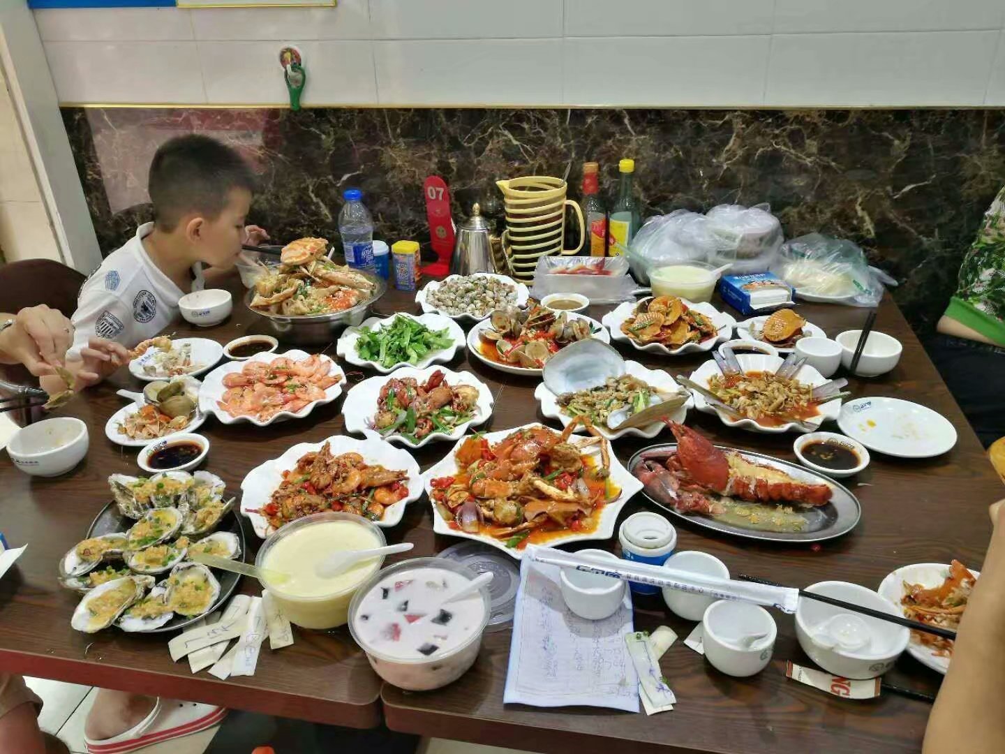 半个小时后,满满的一桌海鲜就出现在眼前了,简直是口水直流。