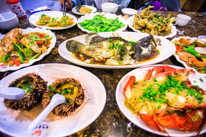 关于海鲜及饮食说了那么多,好像没有说吃的,来到 不吃海鲜好像不对哦~~!~!嘿嘿! 的海鲜种类多、选择多、吃的地方也很多,所以大家还是要根据自己的口味去选择,不要被当地人的介绍所蒙骗!当然这些地方大家也耳熟能详,人气最旺的就是第一海鲜市场、还有火车头海鲜、鸿港市场等!我们选择了第一海鲜市场,要想吃到好的,就要多方打听和询问,最后选择了林 姐香 味海鲜这家店加工,味道很棒,店员先带我们去买海鲜,然后回来加工,这点一定要再重申一下,可以让海鲜加工店的店员带你们去买海鲜,也可以自己买,但自己一定先要去海鲜市场逛一逛,问清楚每个种类海鲜的价格! 比如计划要吃的海鲜,青龙、扇贝、芒果螺、和乐蟹、鸡腿螺、海胆、虾类(基围虾、竹节虾、皮皮虾)等,自己买海鲜时要货比三家哦,了解了真实的价格后,在去点餐也不迟哦~!~!再说下火车头海鲜市场,那里海鲜的价格会略高一些,人气没有第一市场火爆~!~