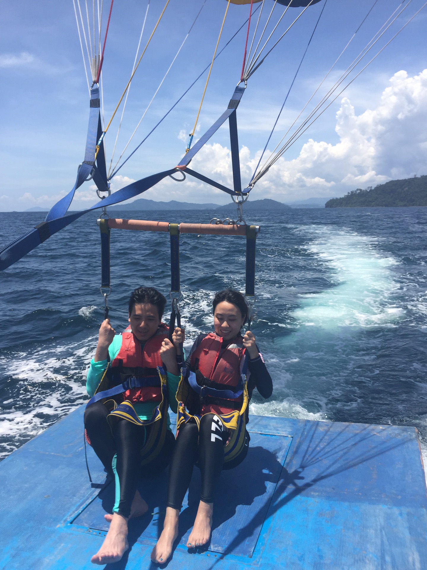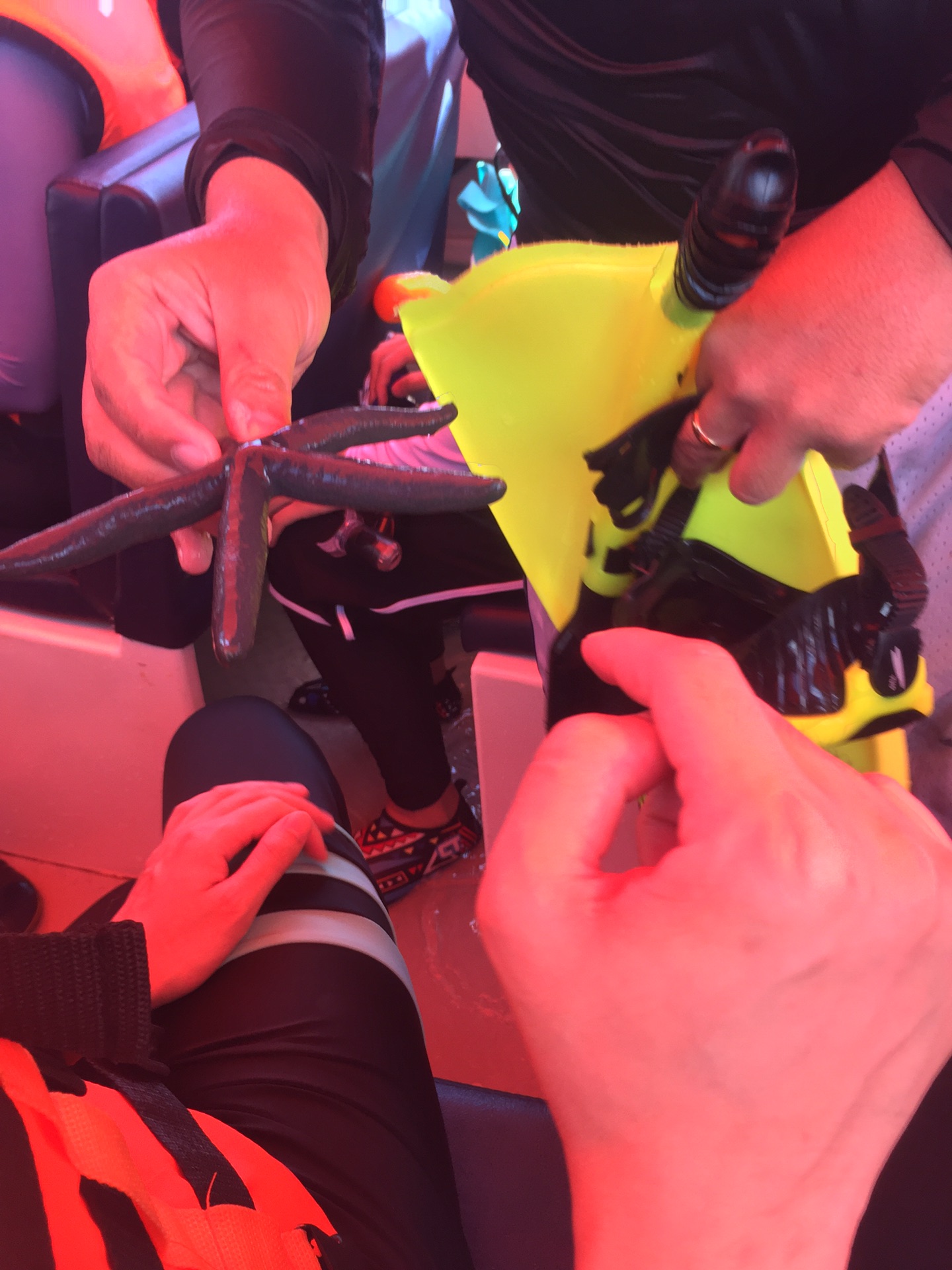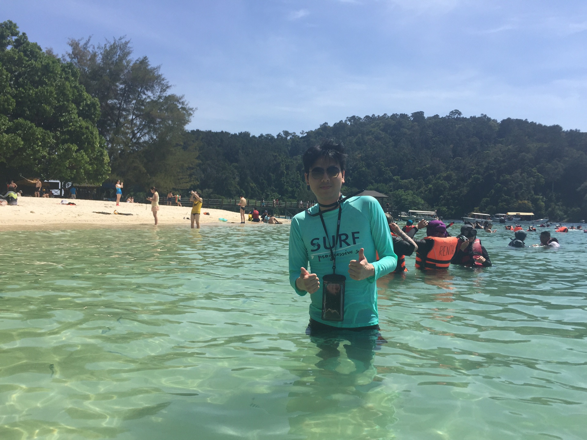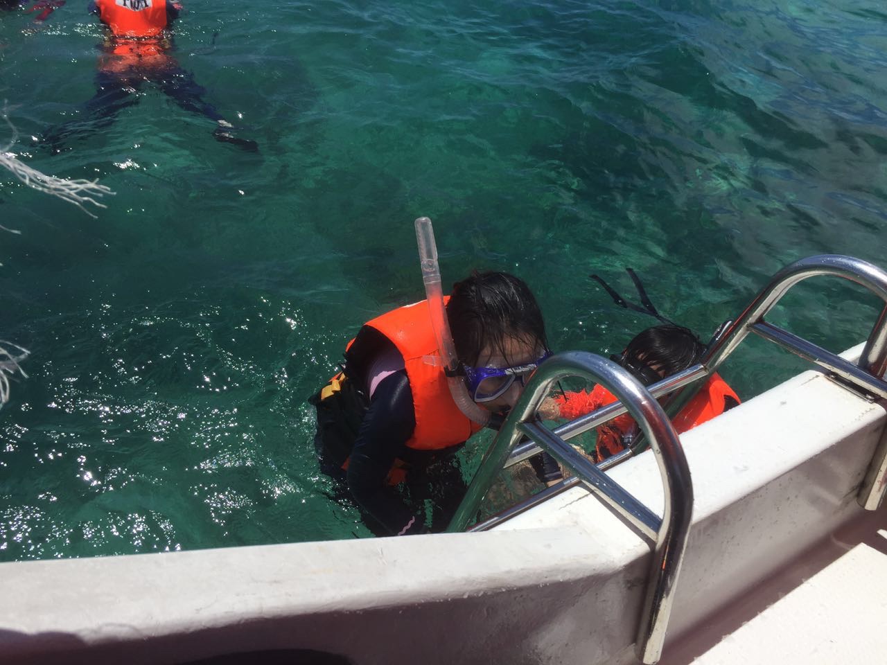 玩嗨了,但是时间到了,不得不上来,淘宝买的防晒泳衣真是好用,身子没晒黑,只有手和脚黑了,而且速干。
