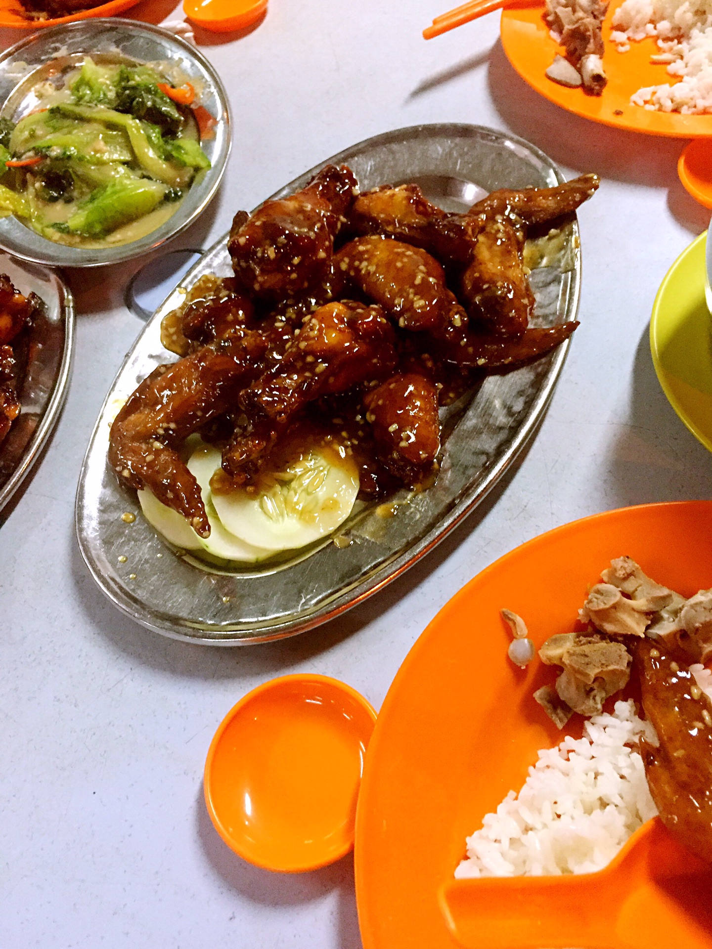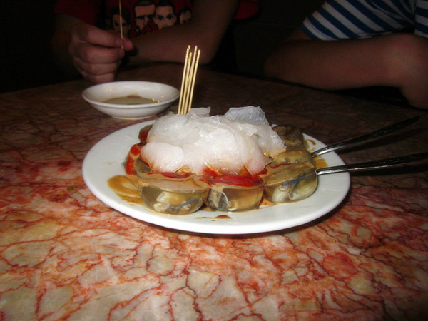 本来晚饭想在菲律宾夜市吃,结果看到全是冷冻海鲜,而且大排档在臭水沟上面,所以就打消了念头,只吃了一个烤鸡翼,都烤糊了,不过很便宜1.2马币一只,味道不错。随后路过天桥水果市场,没什么好逛的,我和大肚佬都不是非常喜欢吃榴莲,所以天桥下榴莲对我们没有吸引力,喜欢的可以找一个叫华侨榴莲的,老板华人,很实在,我买了菠萝蜜吃,一盒6瓣左右,6RM,很甜。因为没在菲律宾夜市吃晚饭,但是又看到海鲜,所以就有路去了大茄来海鲜吃一顿
