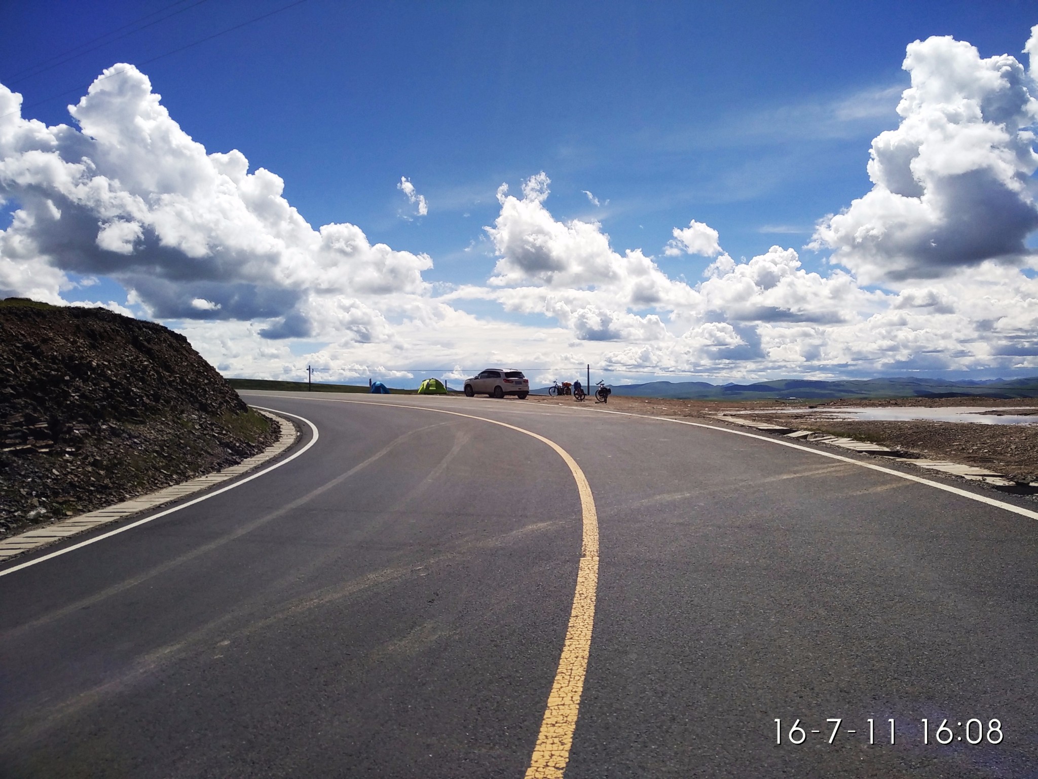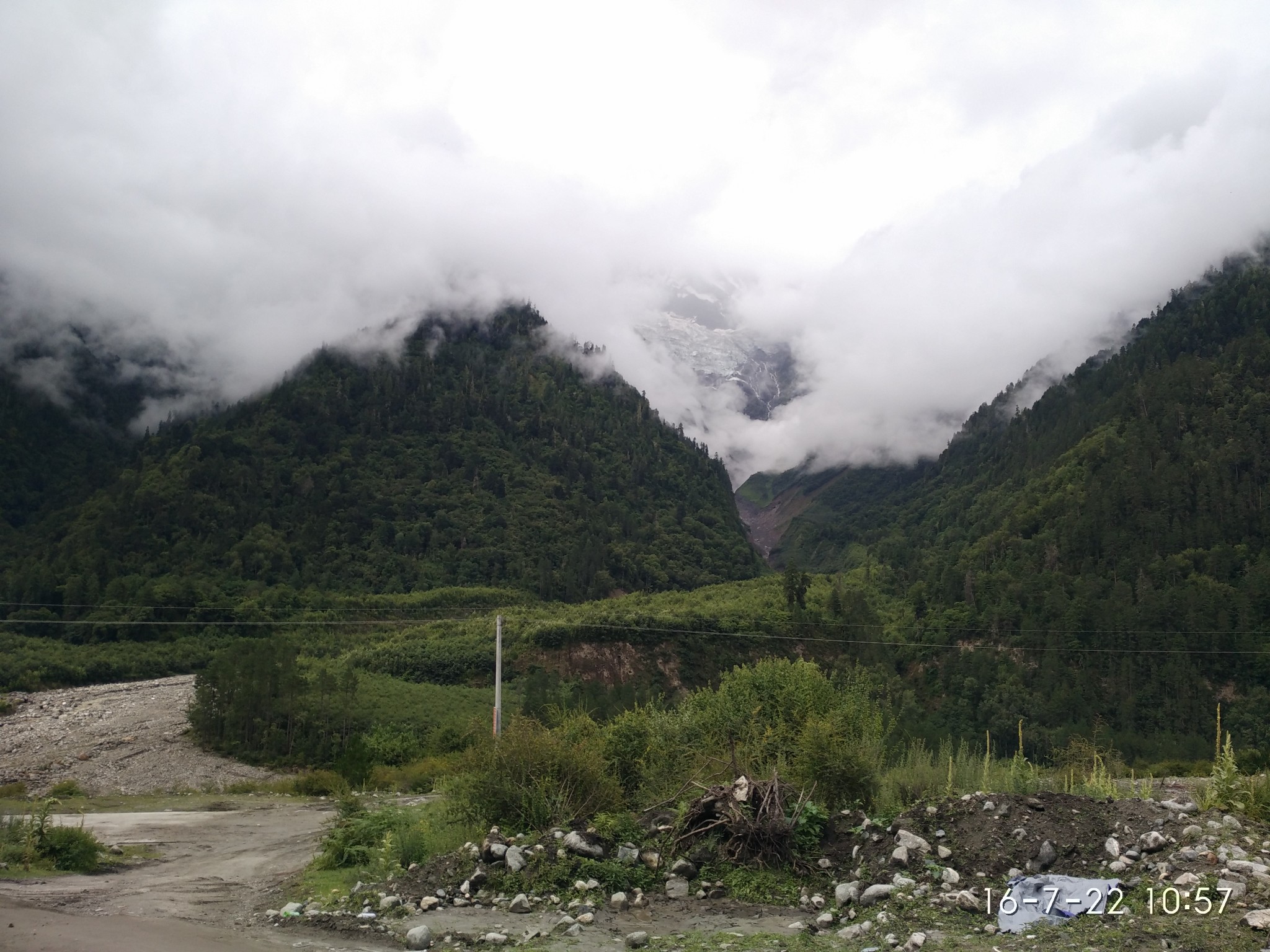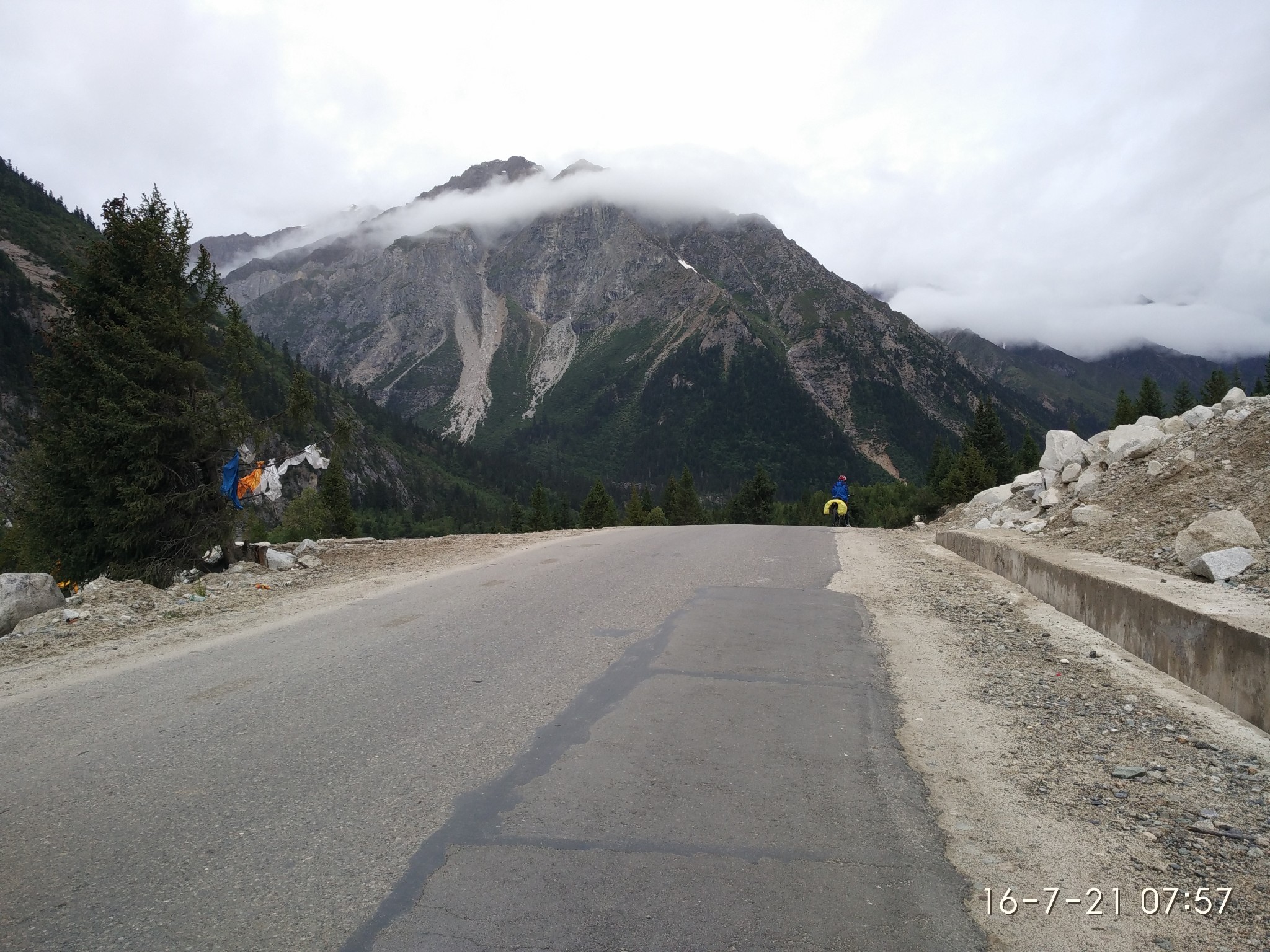 路上的萍水相逢 自有其神奇的地方D9 飞来寺-阿-- 2013.6.21 小雨-多雾-晴-黑夜昨晚上到达飞来寺已经天黑 跟骑友微笑一起决定在飞来寺附近搭帐篷 明天早起看 很不幸 下了一晚上的雨 自己没休息好而且帐篷睡袋都打湿了 没办法无法使用只好寄回去了 给朋友寄了明信片祝福寄完睡袋买了几个包子回赶 太冷没办法 只好停车请求搭车了 还真碰上了一位去背崩运货的好心人 捎我到的飞来寺 万分感激~