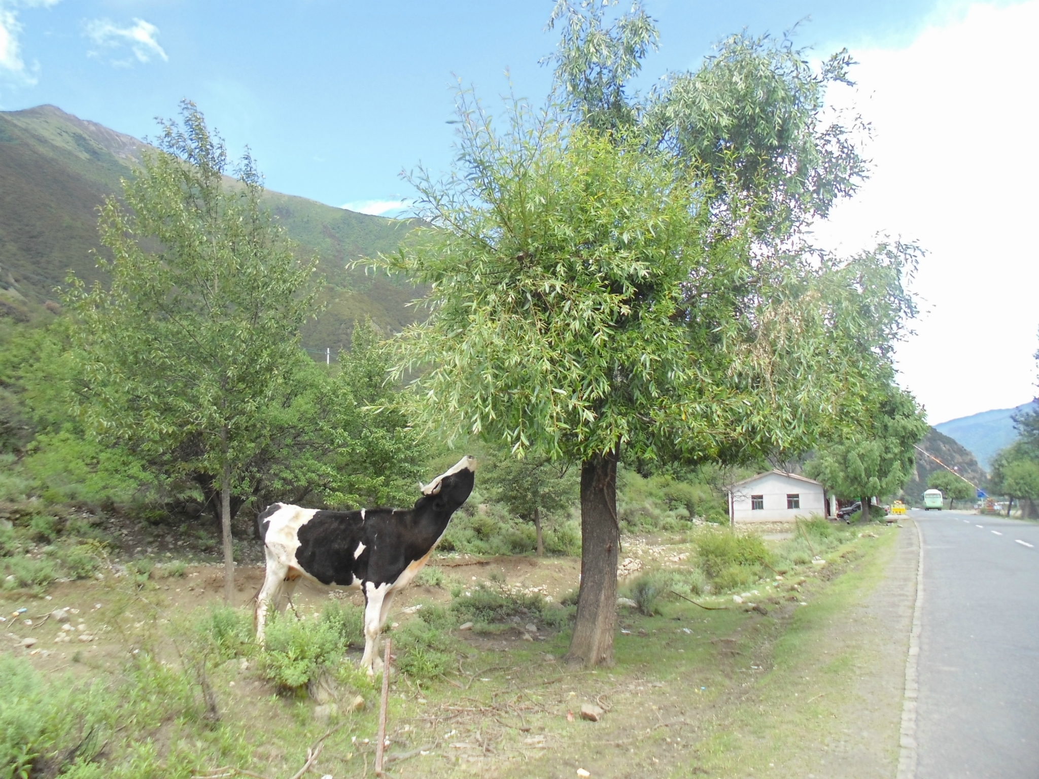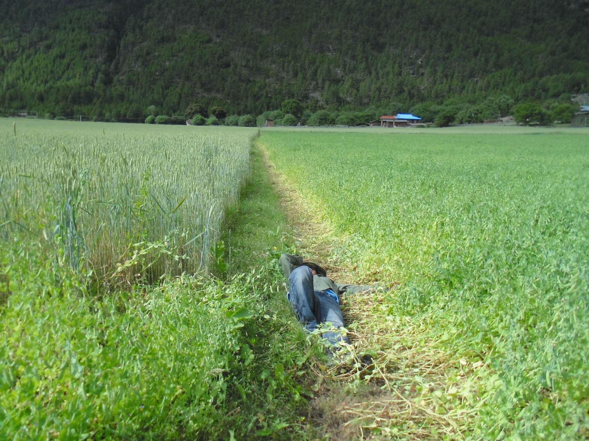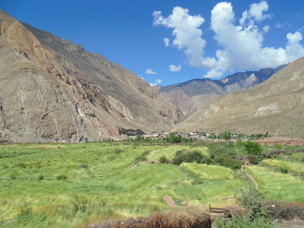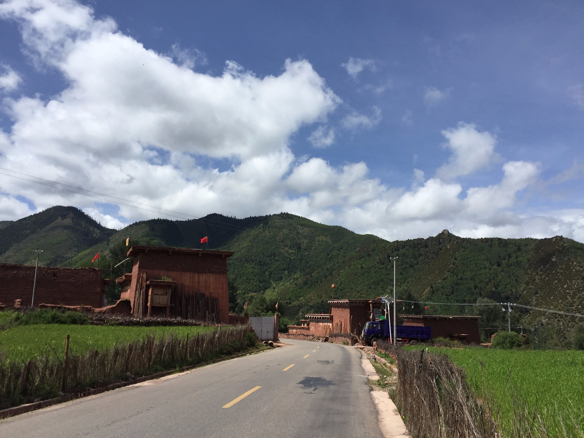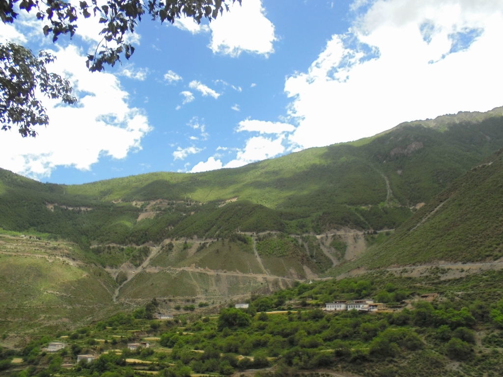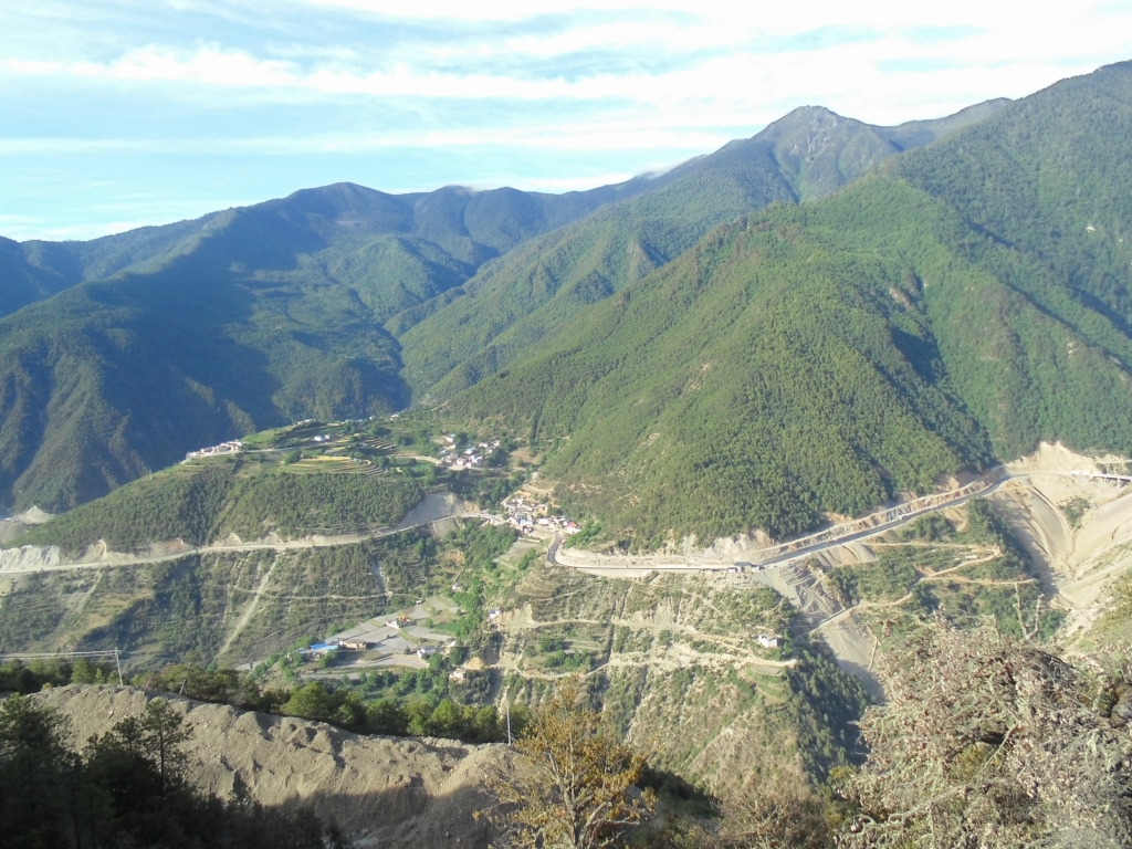 山下的觉巴村--过期不候的温暖所在 记2014.1.14-------------------------------------------------------------------------------------------------------D13 登巴-荣许兵站-东达山- 2013.6.25 晴夹小雨在登巴村吃了chaofan,开始14km的路程到许荣兵站,昨天冒雨下山,鞋子裤子已全变湿,向大姐要了4个塑料袋子裹足前行了。出登巴的路上 一路山清水秀~