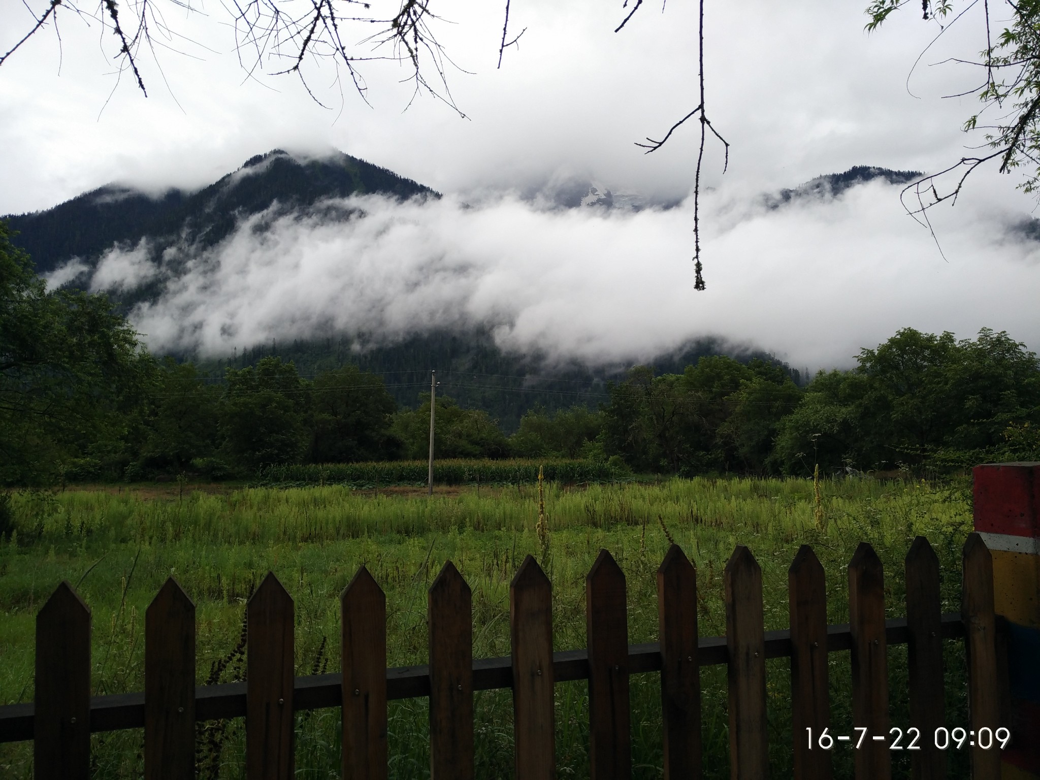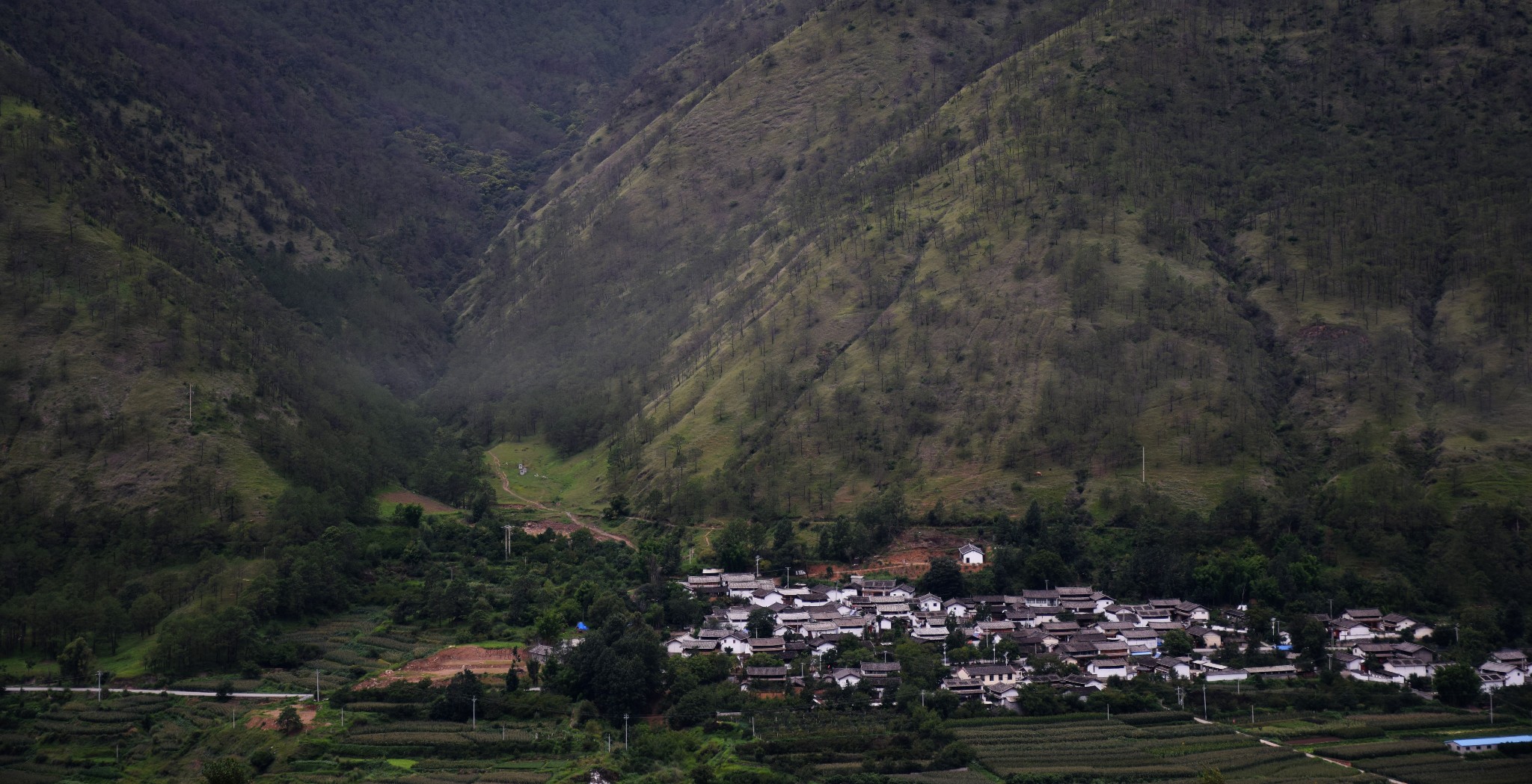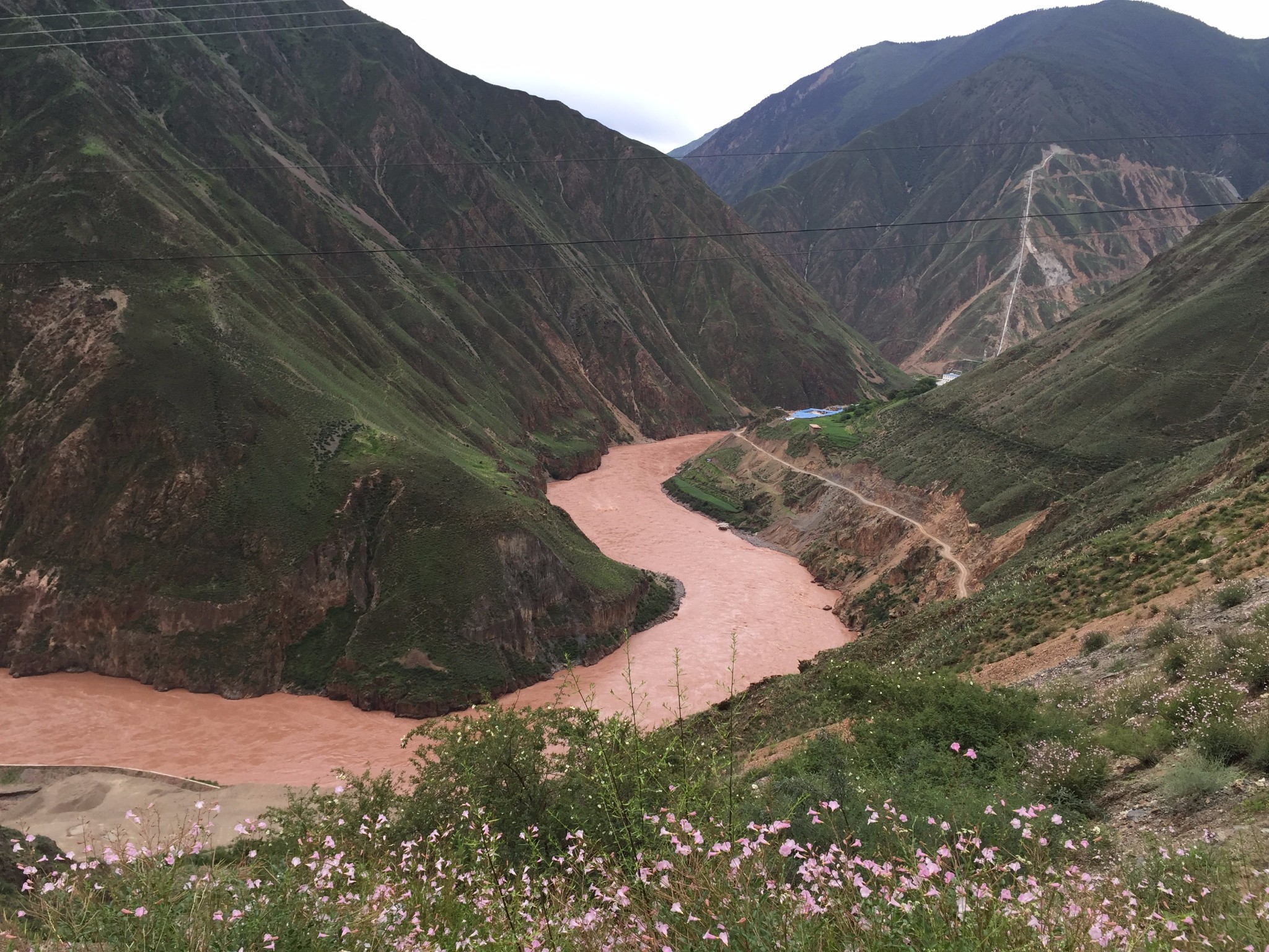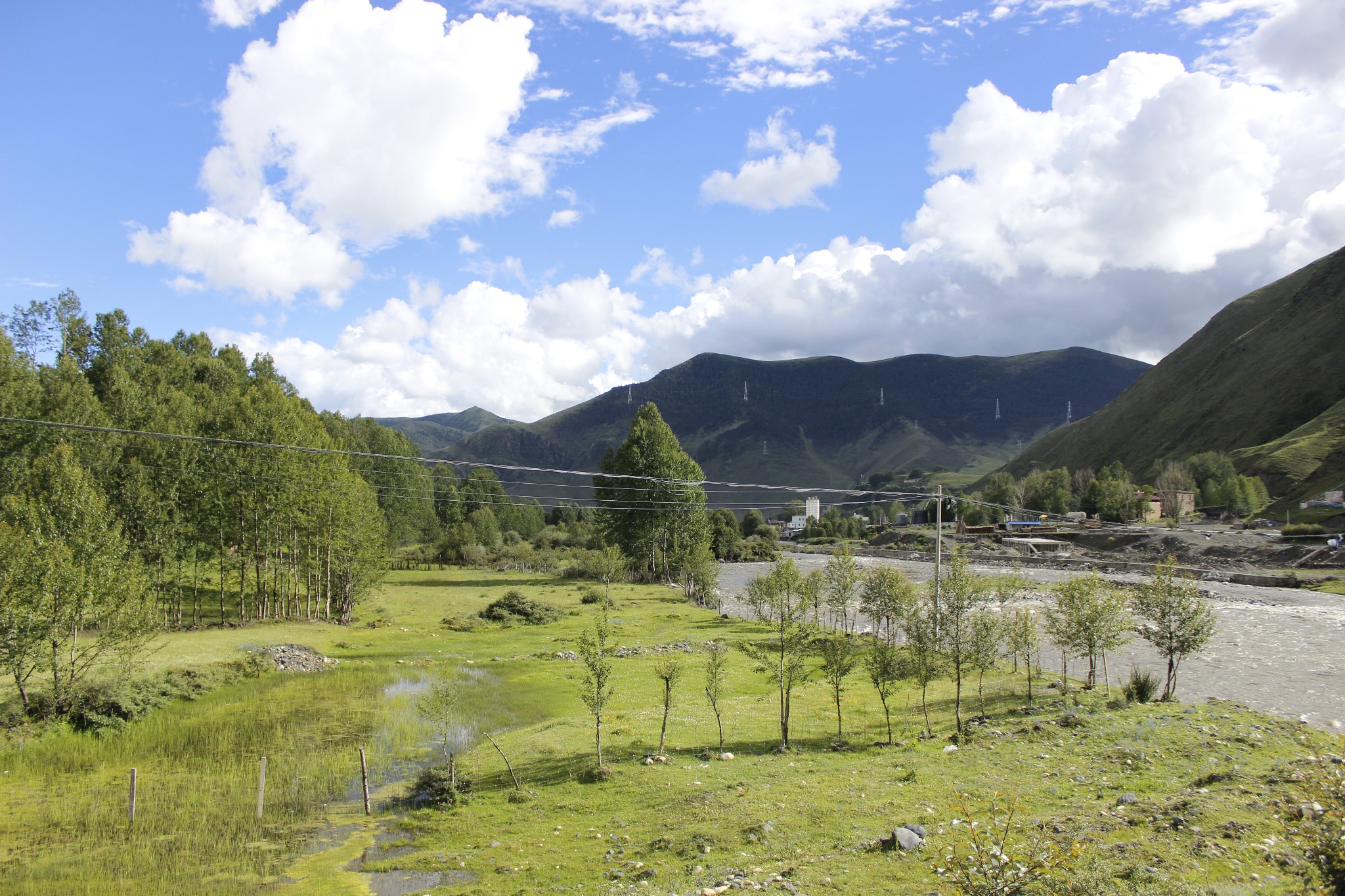 山下的觉巴村--过期不候的温暖所在 记2014.1.14-------------------------------------------------------------------------------------------------------D13 登巴-荣许兵站-东达山- 2013.6.25 晴夹小雨在登巴村吃了chaofan,开始14km的路程到许荣兵站,昨天冒雨下山,鞋子裤子已全变湿,向大姐要了4个塑料袋子裹足前行了。出登巴的路上 一路山清水秀~