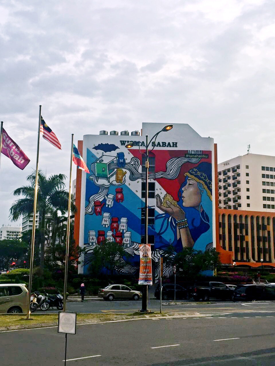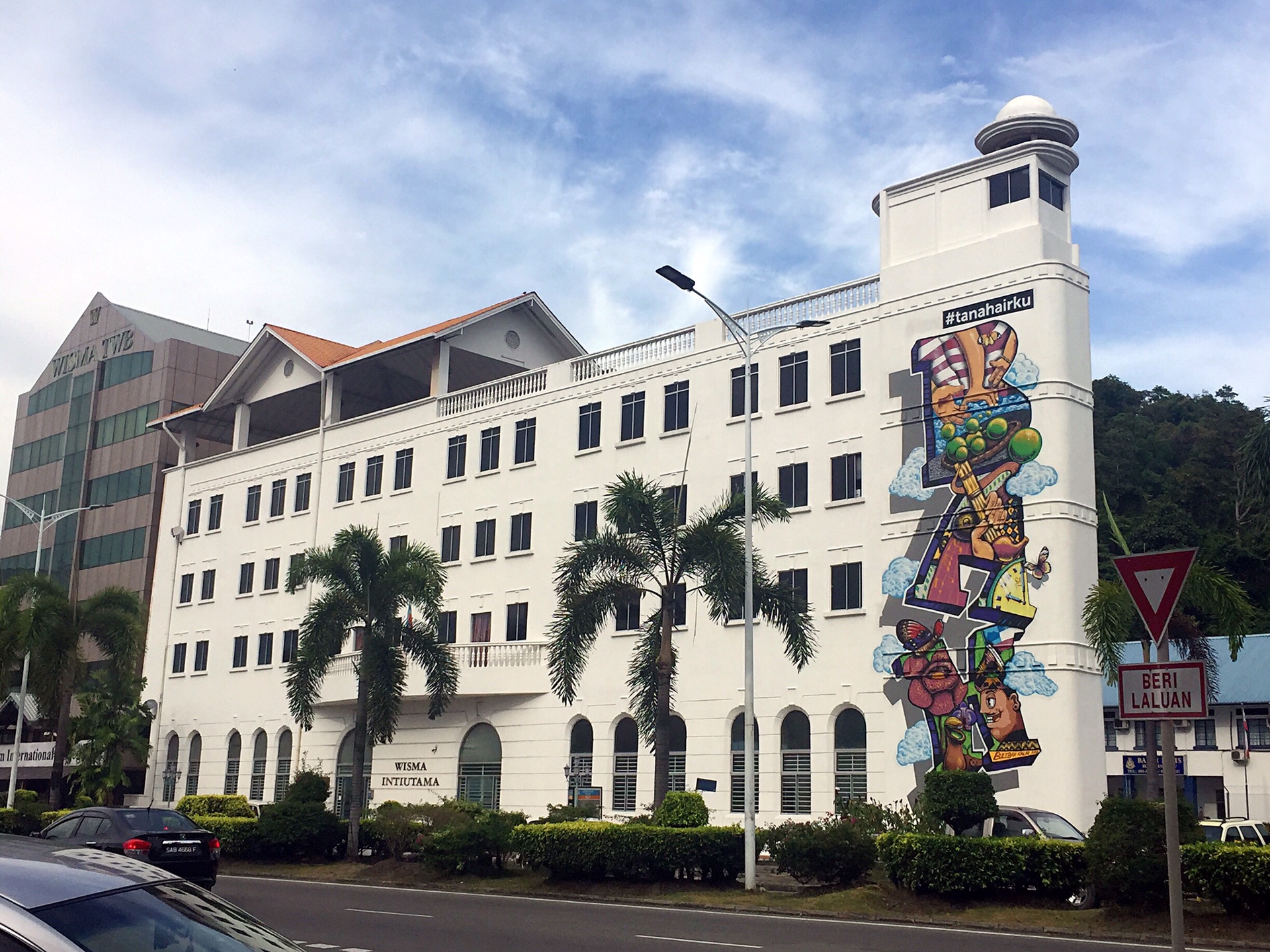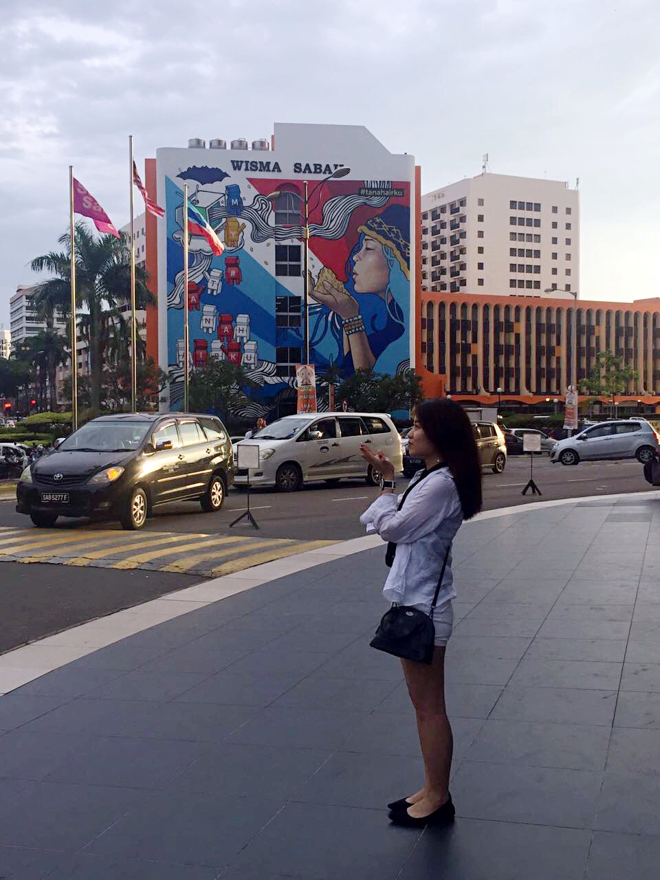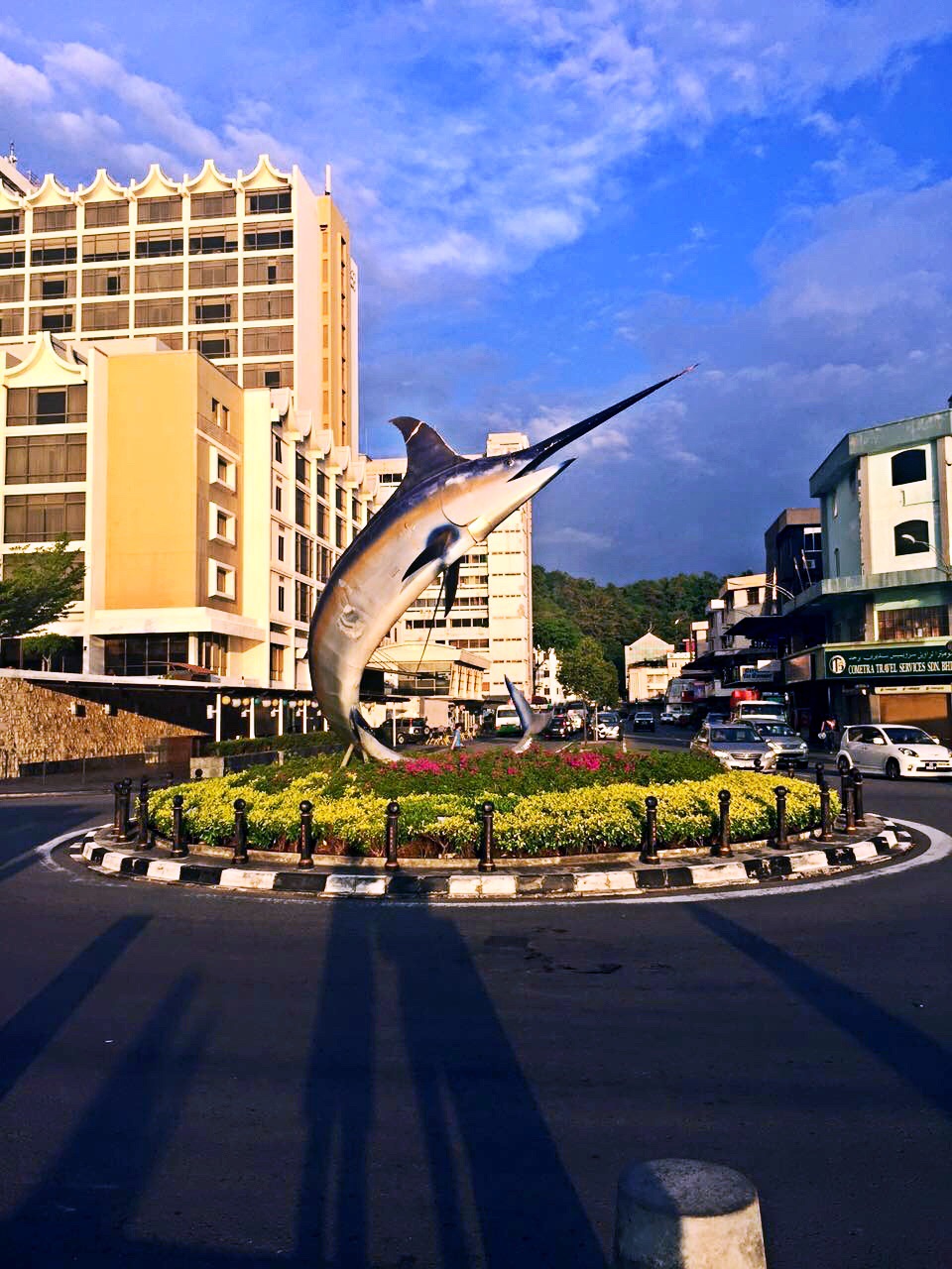 Wisma Sabah⬆️图涂鸦在曙光商场旁边,隔一条马路,海豚雕塑⬇️图在海边,菲律宾夜市附近,从曙光商场,沿着海边,往菲律宾夜市走,路上就会见到