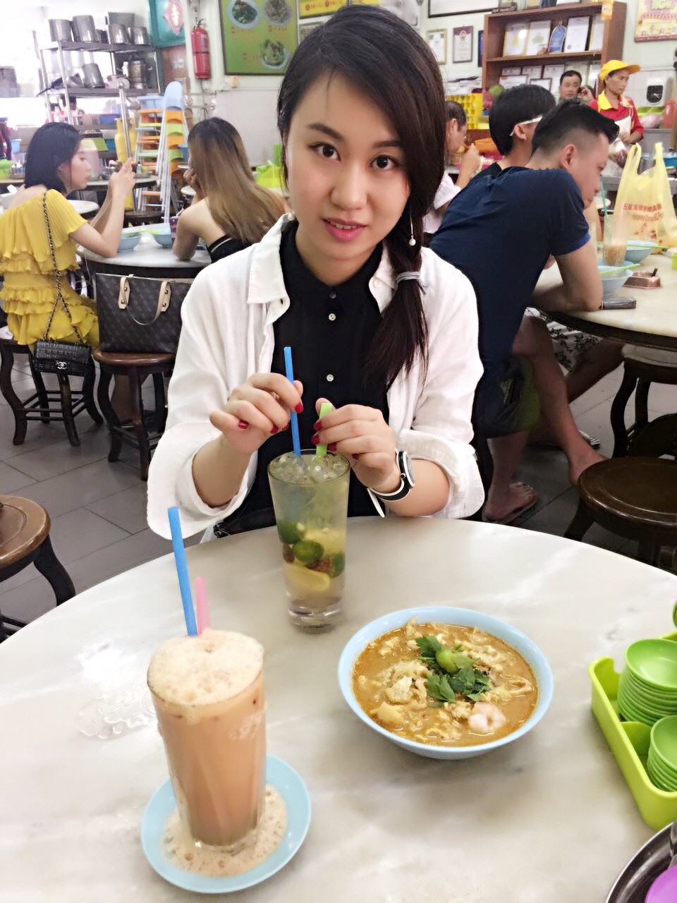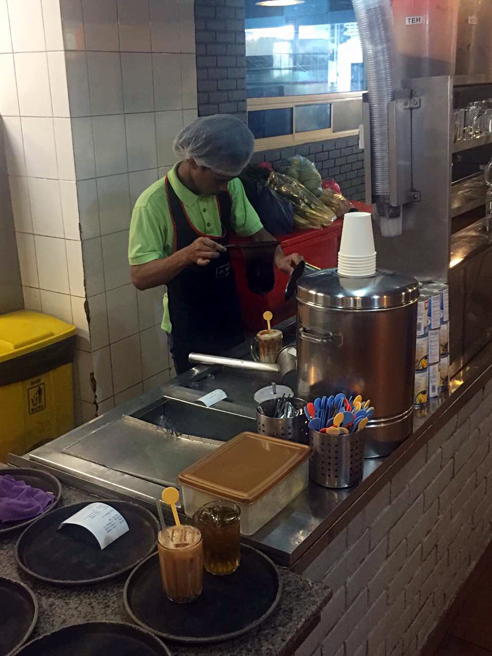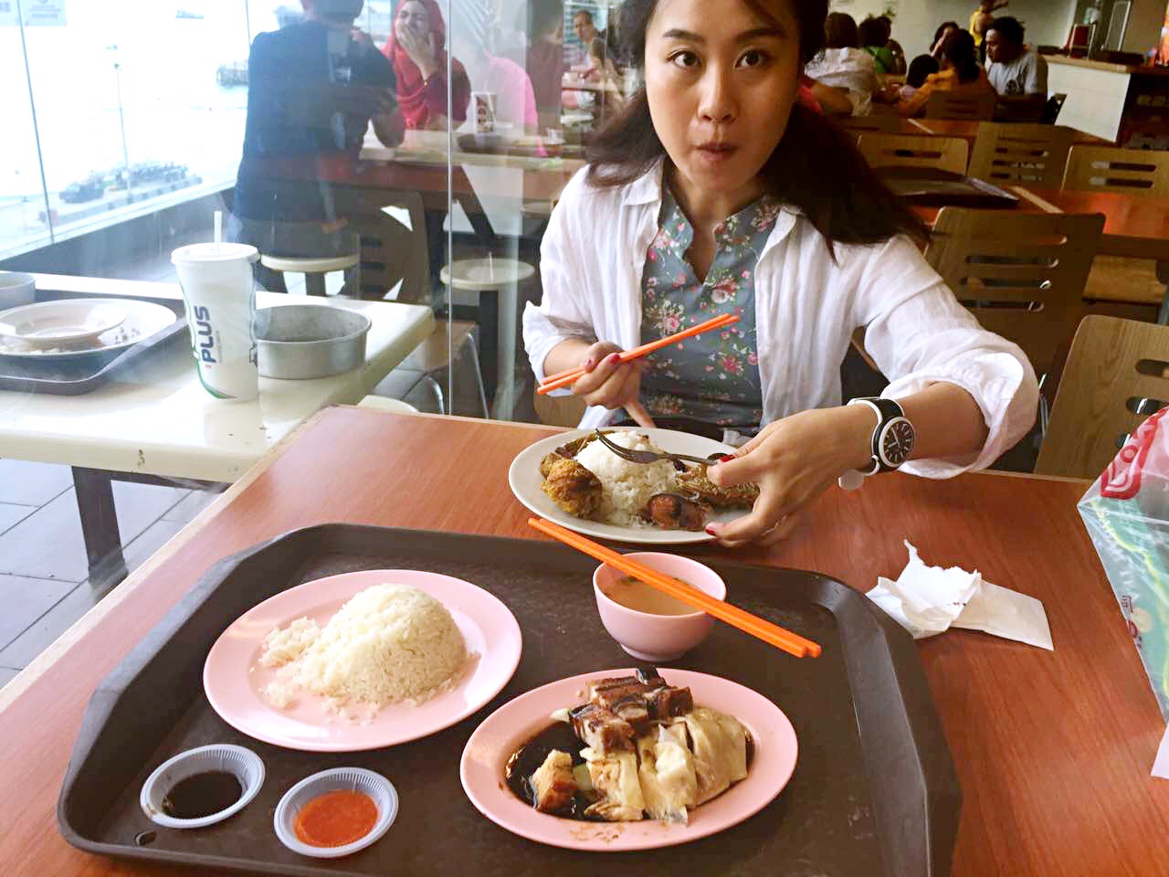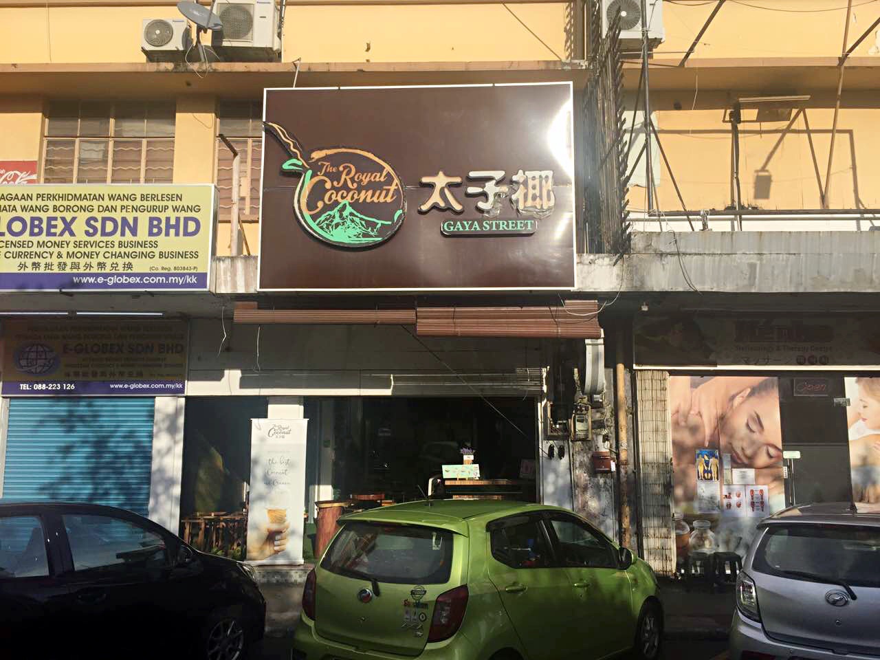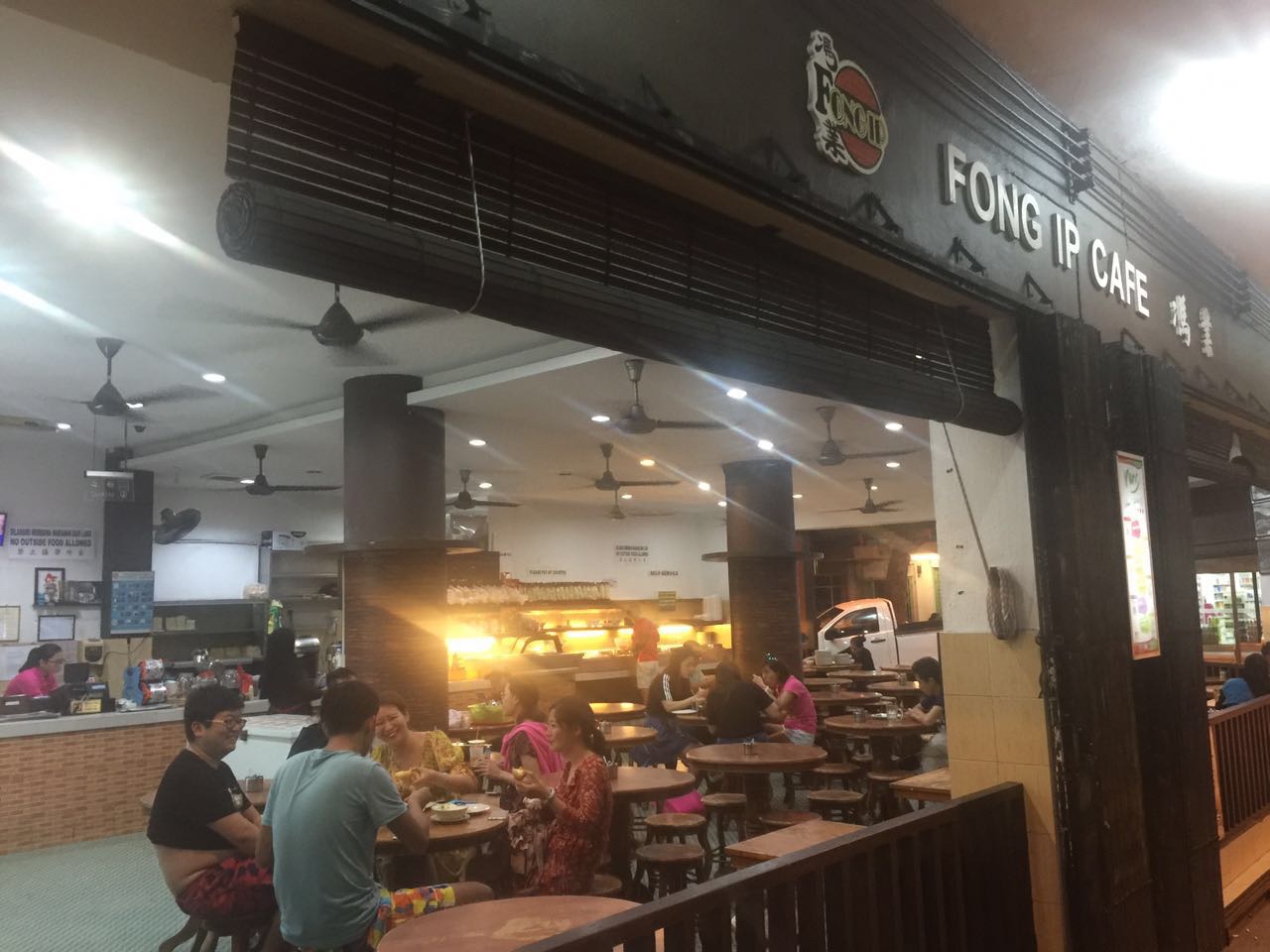 下面开始详细的每日行程第一天,五月2号,9:50am-12:50pm,亞航飞亚庇国际机场,早餐飞机解决,没有提前预定,机上点餐,15马币一个马来西亚椰浆鸡饭,7马币越南冻咖啡,飞机准时到达,入境不用排队(非节假日的原因吧)。出境大厅hotlink买电话卡,7日套餐,25RM一个,等司机接机,司机迟到,不过不影响我们的行程,13:50到达梦想酒店(Dreamte Kota Kinabalu),check in,100rm押金,14:00拿到房卡,进房间,满意,冲凉,简装出去找吃的。因为酒店就在加雅街入口附近,所以第一站去的就是怡丰茶室,此行只去了一次,每次在想去的时候都是发现关门了,大概下午六点左右关门,没吃到沙煲鸡饭,不开心,吃了叻沙(laksa),超便宜,超好吃,飲品点了拉茶和咸桔冰,都和差不多,所以没太大感觉,还有就是不知道咸桔冰和桔子冰有什么区别,喝着一样,但是餐单上都列出来了。