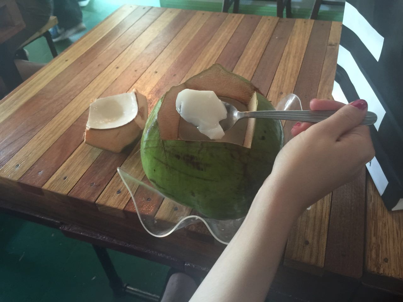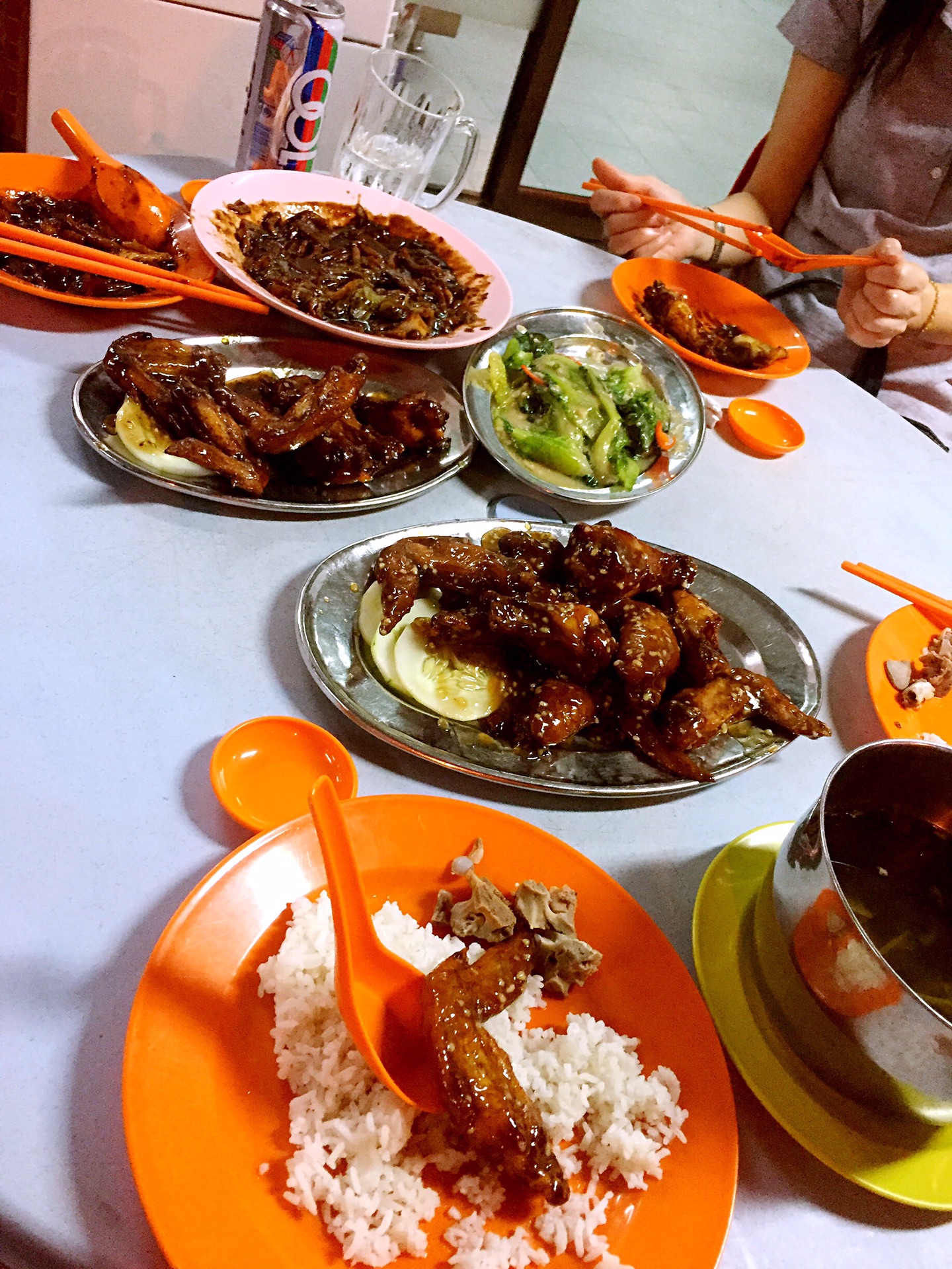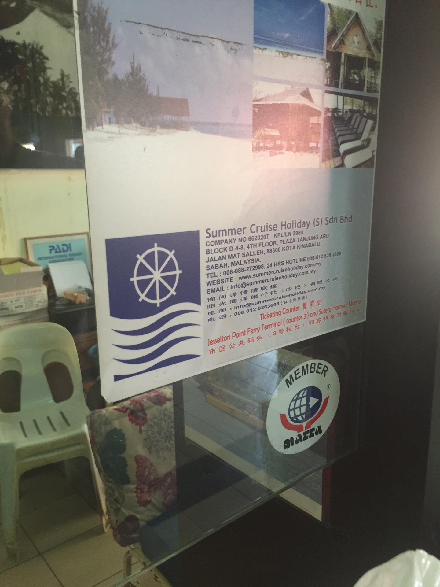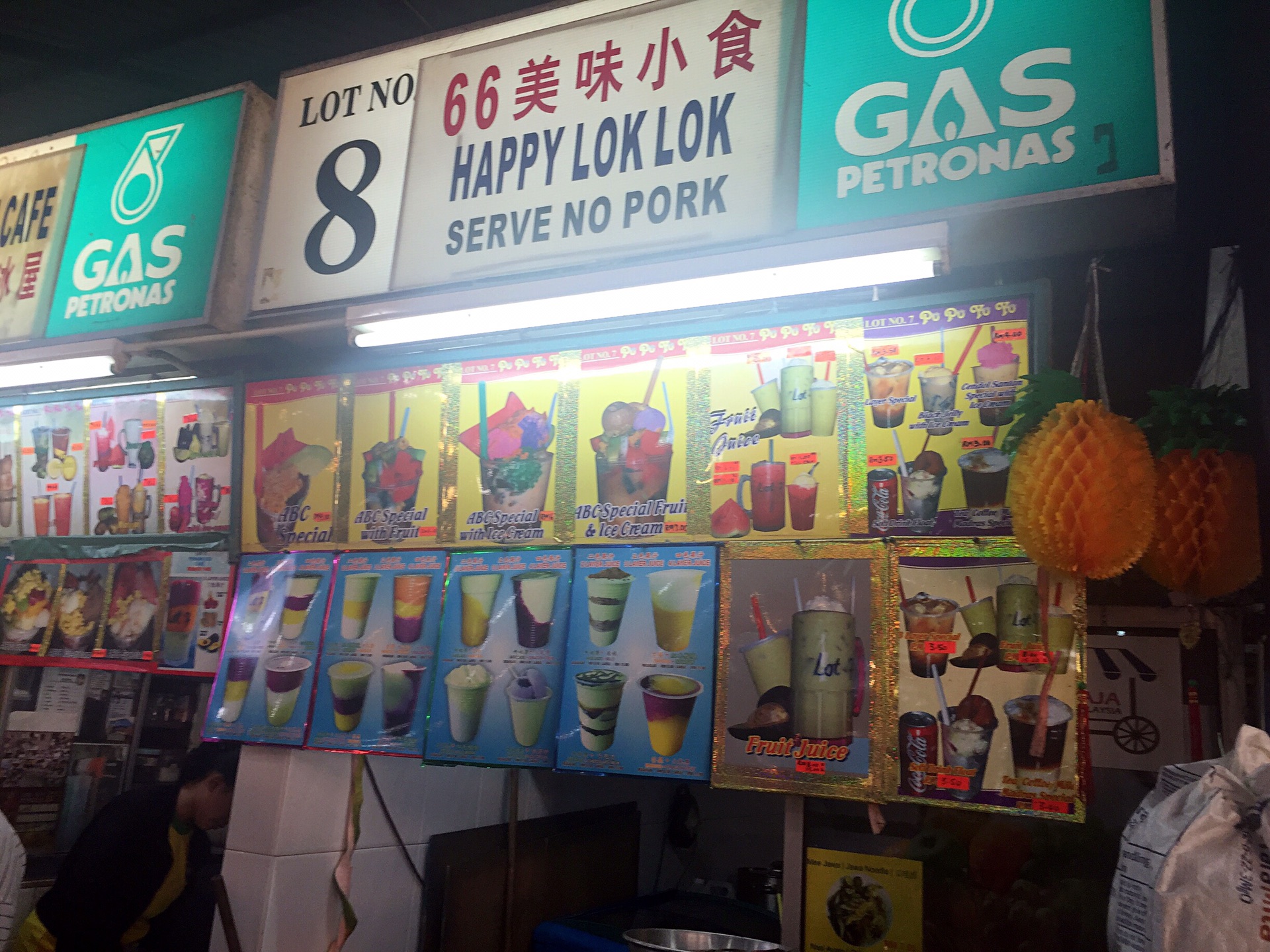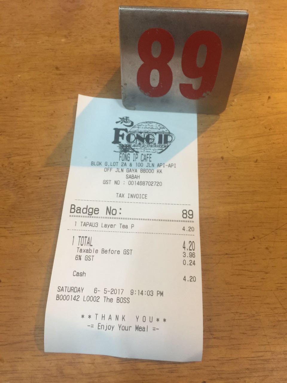 下面开始详细的每日行程第一天,五月2号,9:50am-12:50pm,亞航飞亚庇国际机场,早餐飞机解决,没有提前预定,机上点餐,15马币一个马来西亚椰浆鸡饭,7马币越南冻咖啡,飞机准时到达,入境不用排队(非节假日的原因吧)。出境大厅hotlink买电话卡,7日套餐,25RM一个,等司机接机,司机迟到,不过不影响我们的行程,13:50到达梦想酒店(Dreamte Kota Kinabalu),check in,100rm押金,14:00拿到房卡,进房间,满意,冲凉,简装出去找吃的。因为酒店就在加雅街入口附近,所以第一站去的就是怡丰茶室,此行只去了一次,每次在想去的时候都是发现关门了,大概下午六点左右关门,没吃到沙煲鸡饭,不开心,吃了叻沙(laksa),超便宜,超好吃,飲品点了拉茶和咸桔冰,都和差不多,所以没太大感觉,还有就是不知道咸桔冰和桔子冰有什么区别,喝着一样,但是餐单上都列出来了。