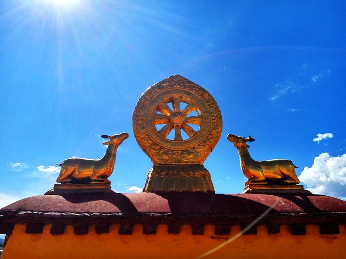 ▼当庙宇金顶绽放奕奕光辉的时候,天上就被涂抹成醉人的湛蓝,用饱和的画面陶醉朝圣的灵魂。