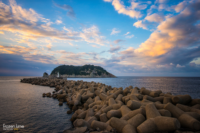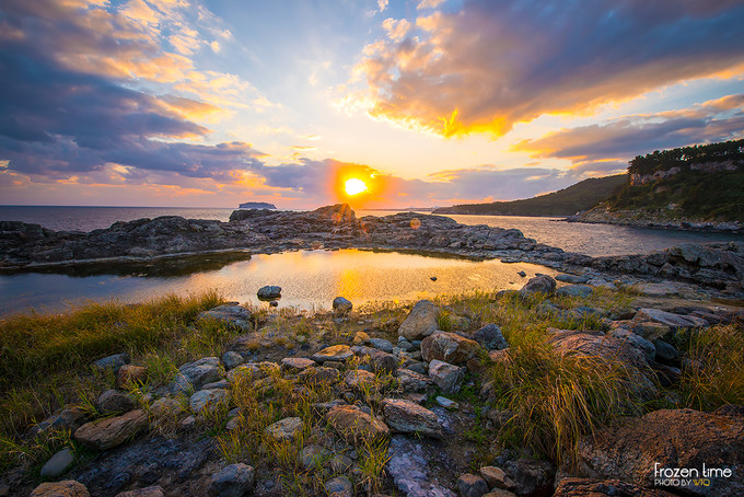 再看对面,已经开始有金光泛出,但还是被一片云挡着,拍一拍果断向下去海边继续等待!