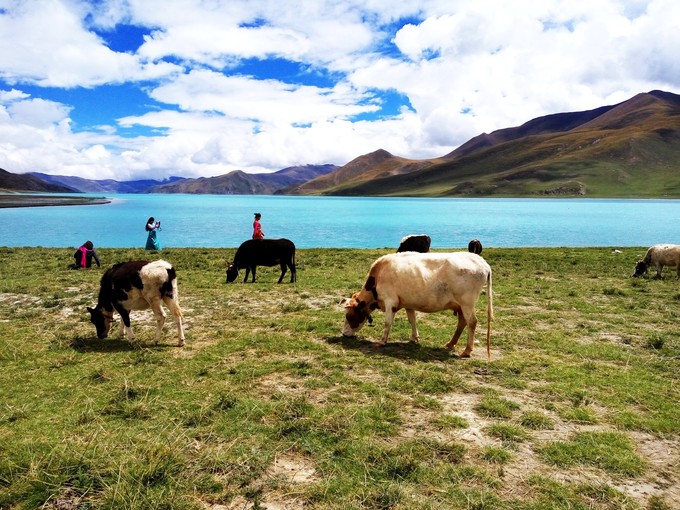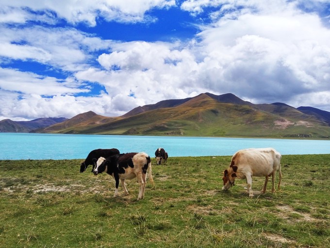 ▼ 那一世,神的女儿将她漂亮高贵的绿松石耳坠散落凡间,幻化成青藏高原上的圣湖。无论从哪个角度眺望,都是那一抹照破人心的蓝。我不想离开了.... (羊湖在阳光的折射下会呈现出不同的颜色,非常美)远距离+近距离,都是去羊湖必须体验的。