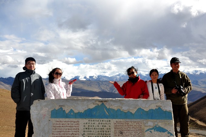 距离珠峰越来越近,来到珠峰观景平台,依然一张游客照。在这里如果你运气够好,就可以远远的看见珠峰和海拔八千米以上的喜马拉雅群山在天边一字排开,壮观无比。其中从左到右可以看到:马卡鲁峰(世界第五高峰)、洛子峰(世界第四高峰)、(世界第一高峰)、卓奥友峰(世界第六高峰)。