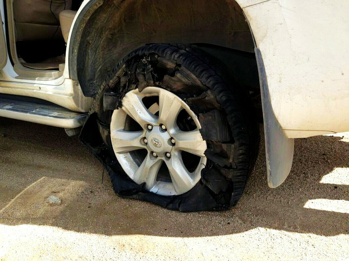 刘奇没看到路上一个块 直接爆胎了 而且一炮双响 前后轮一起 一举成为爆胎哥