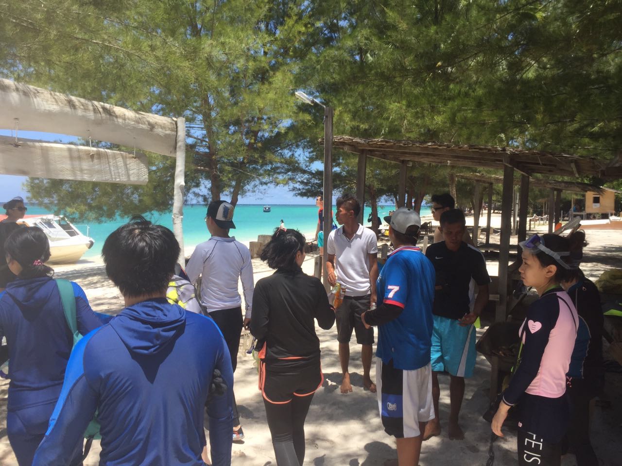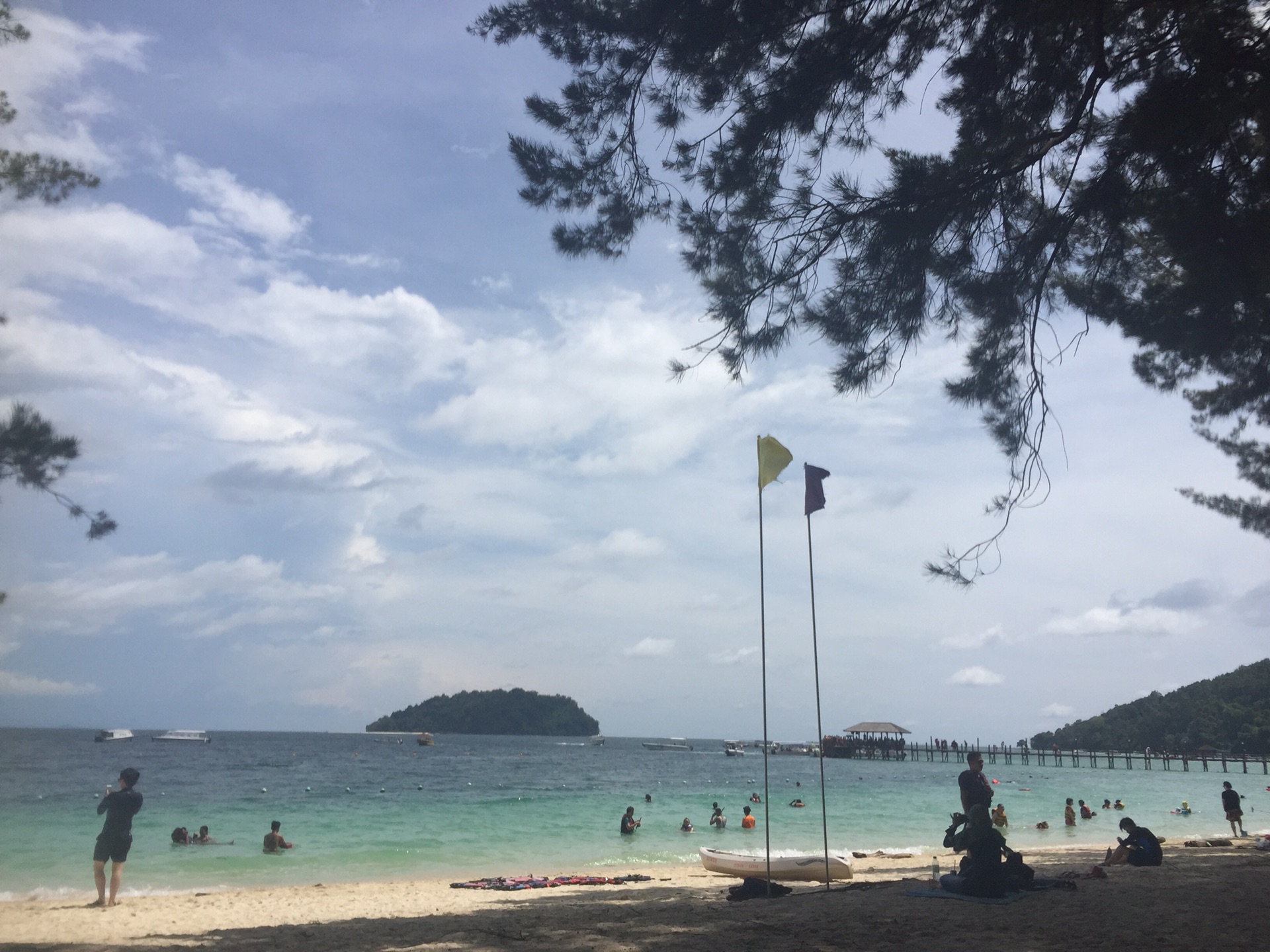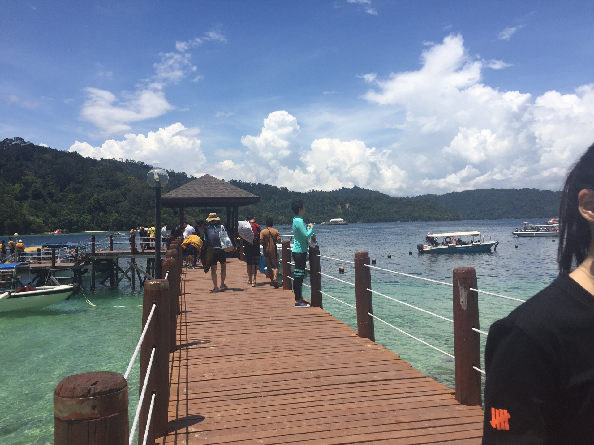 ⬆️图,大茄来,点餐排队,我们选的室内空调的座位,因为太火的原因吧,服务不是很好,后来碰到当地华人,才知道只有游客去大茄来,价格没有想象中便宜,湿奶油老虎虾不是按大小算,都是一样的尺寸一份39RM,说实话我们没觉得有什么惊艳的,可能期望值太高了,甘香蟹不错,酱汁好吃,蟹子没什么特别,大肚佬不吃蟹,大茄来最少点两只蟹,所以点了小蟹,6RM一只,树仔菜的酱汁也不错,但是菜实在是太老了,都咬不动,12还是14RM好像,点了一个桔子汁冰,和一个咸桔冰,4.5RM好像,一份米饭,一共花了76马币。真的没那么惊艳,后来也没再吃。吃完走路回酒店,酒店旁有一个7-11,买了点薯片,零食,回酒店休息。第二天: 五月3号,美人鱼岛➕kawa红树林一日游。蚂蜂窝懒猫旅行订的(418人民币一人),蚂蜂窝的订单不能通过微信查寻,所以不是很方便,但是价格比懒猫旅行在淘宝的价格便宜,早上7点半,酒店吃过早餐,等待司机接我们去码头坐船。到码头的车程1个半小时左右,但是因为有别人迟到,所以10点半才到码头,另一组早就到了,在等我们组(这就是拼团的不好之处)。码头就是红树林,下午茶晚饭也是这个码头吃,去美人鱼岛船程40分钟左右,上岛后换泳衣,领取一次性浮潜咬嘴,我和大肚佬都是在淘宝买的长袖长裤的泳衣,所以只有手和脚晒黑了。后悔没有买潜水面罩,咬嘴这种真的不是很好用,总是想用鼻子呼吸,所以就呛水。当天天气不错,所以浮潜两次,导游小方还帮大家捞到海星(此处👏👏👏)我们这个团大多数人都不会游泳,大家都等教练带我们,但是教练就3个,根本不够分,于是小方大有就让大家先下水,他在水下接我们,结果发现根本不害怕,又沉不下去,就是不会游泳的会漂很远😵😵😵。会游泳的看到了尼莫,我和大肚佬没看到。因为我们没有相机,所以没有拍到照片,找导游租防水相机要100RM,所以没租。手机不让带下水,带下去也拍不了。
