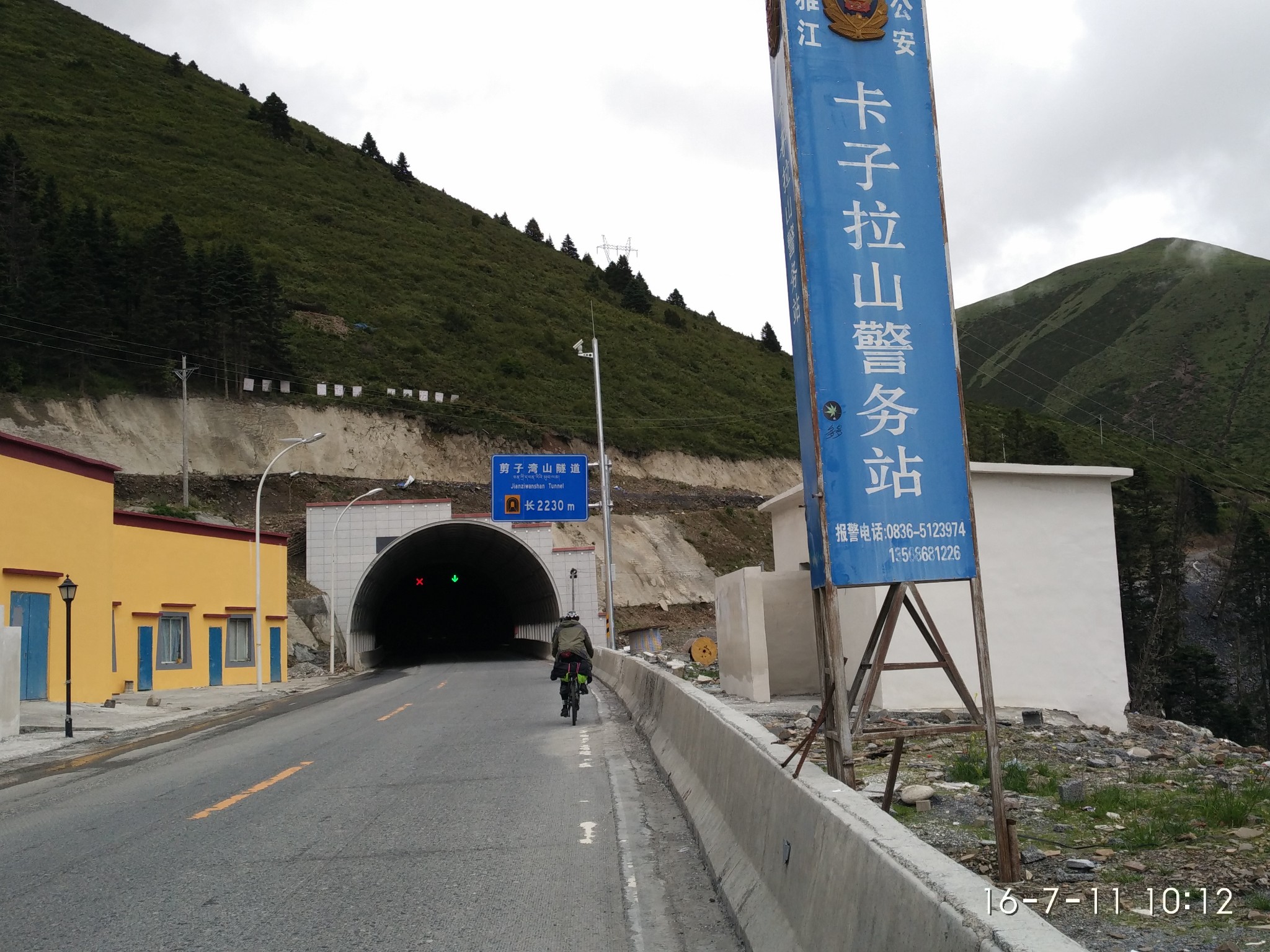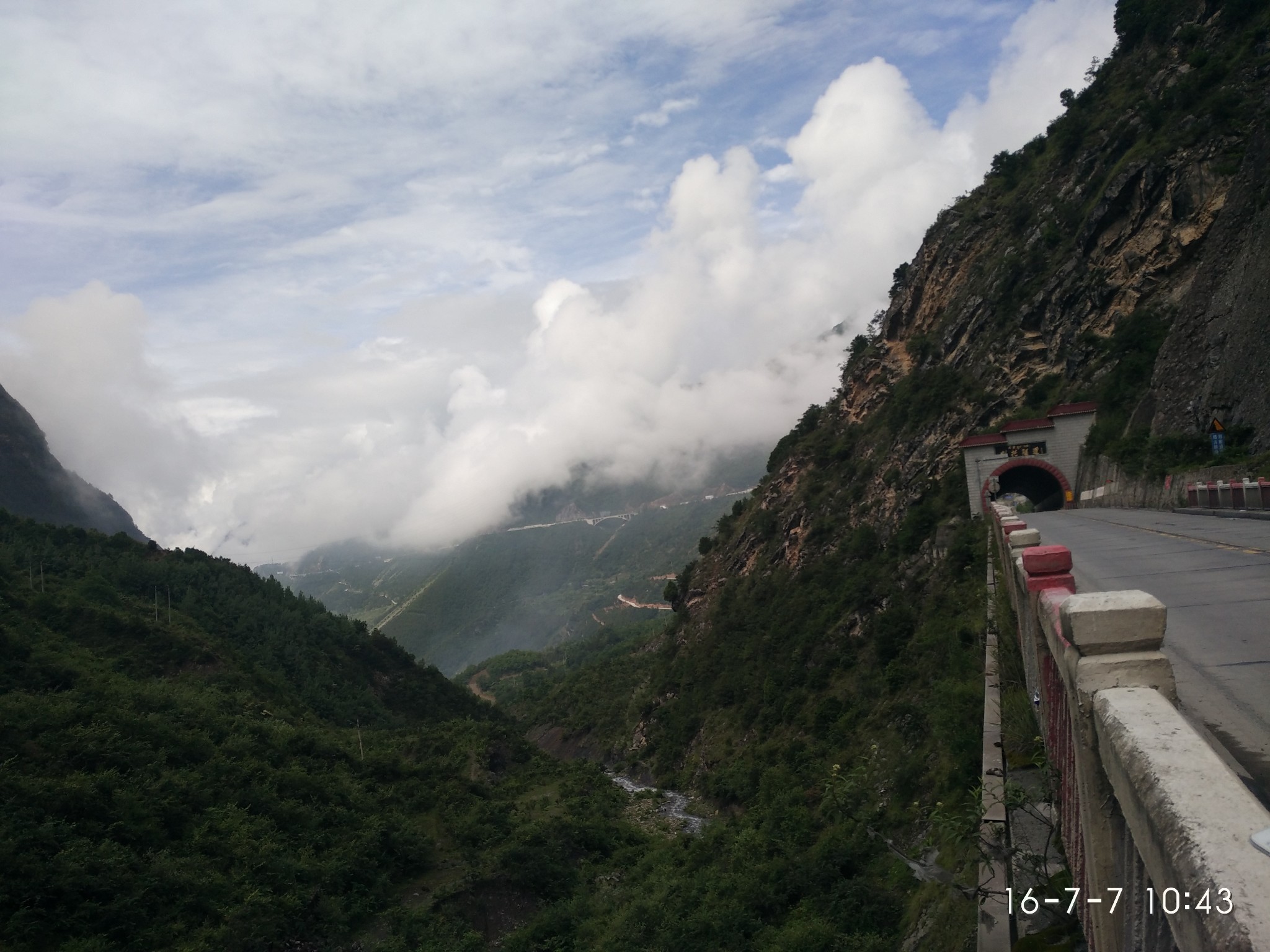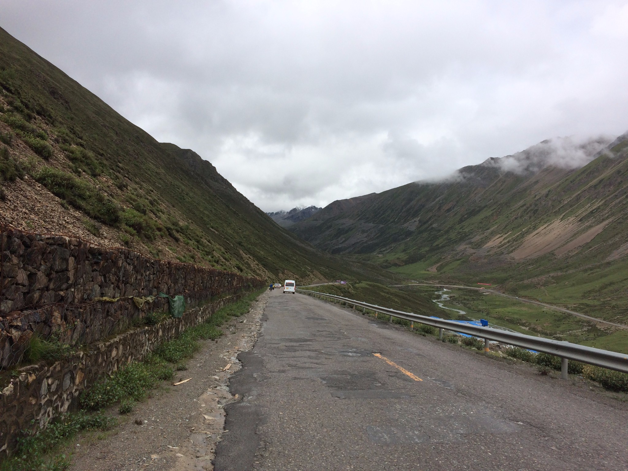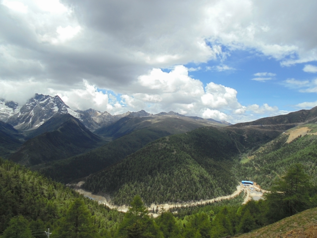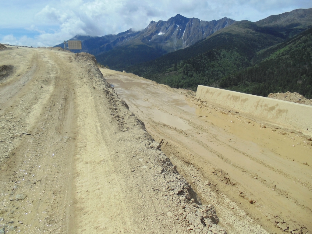 在过去就是隔界河了 一过界我的变速器就罢工了 幸好和亚麟在一起 帮忙搞定 不然今天晚上真不知道怎么办了---------------------------------------------------------------------------------------------------------进入境内基本算是雨季宣布到来了~D10 -红啦雪山-村 2013.6.22 忽晴忽雨进入算是正式进入境内了,昨天经过的就是进最后的一个小乡镇了 过需要出示身份证,有边境警察站岗查证今天的任务基本就是爬红拉雪山了 期间经历春夏秋冬、大晴大雨就差下雪了214段是进入境内的第一座城镇,也是茶马古道 中极为重要的小镇。所以出现驴马驮包灰常正常。爬红拉过完一个隧道处 休息吃早餐 一只雄鹰一直在天上盘旋