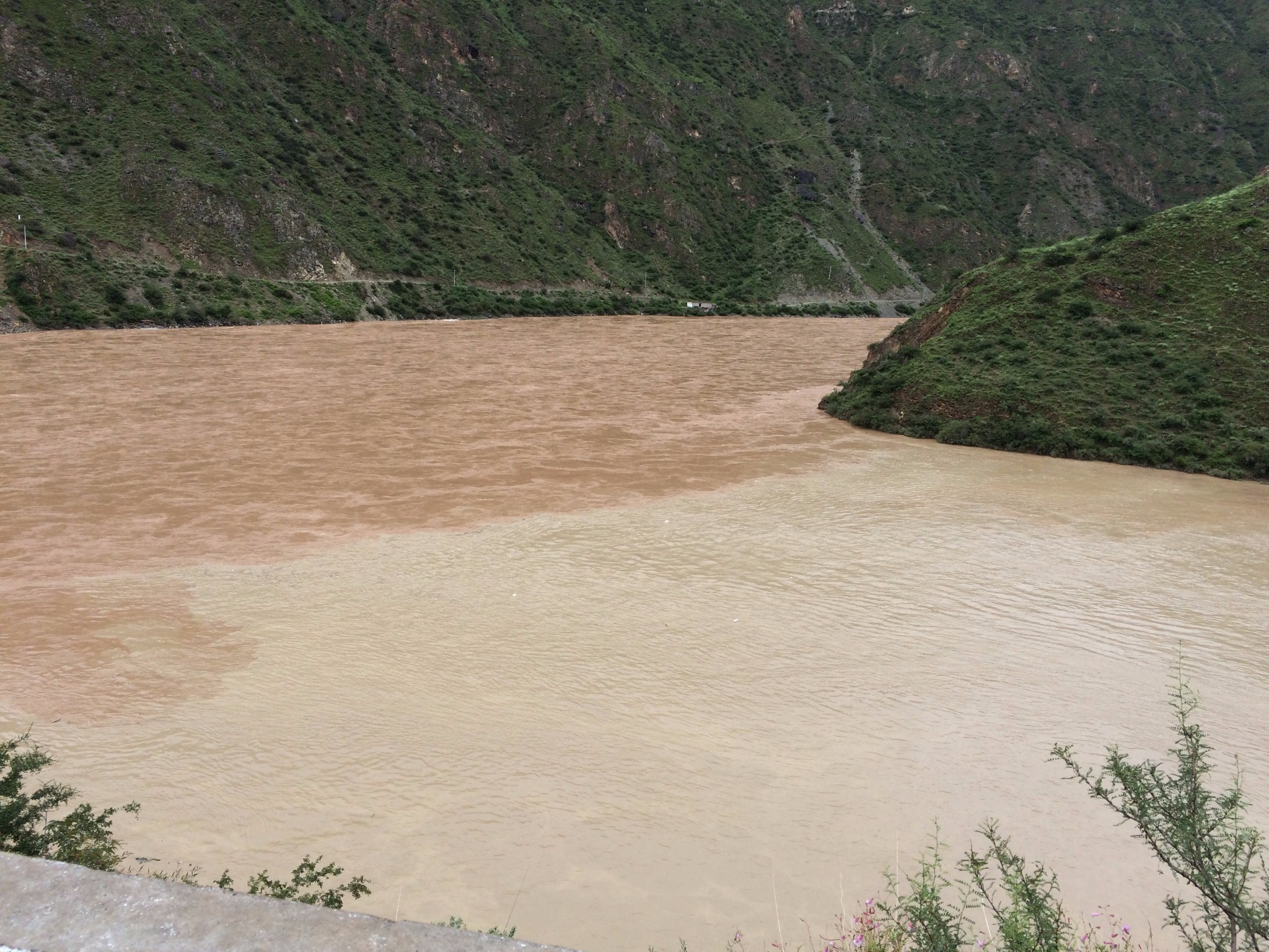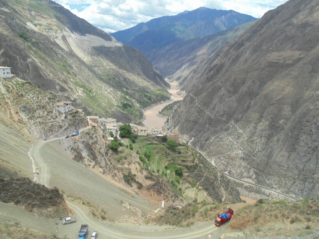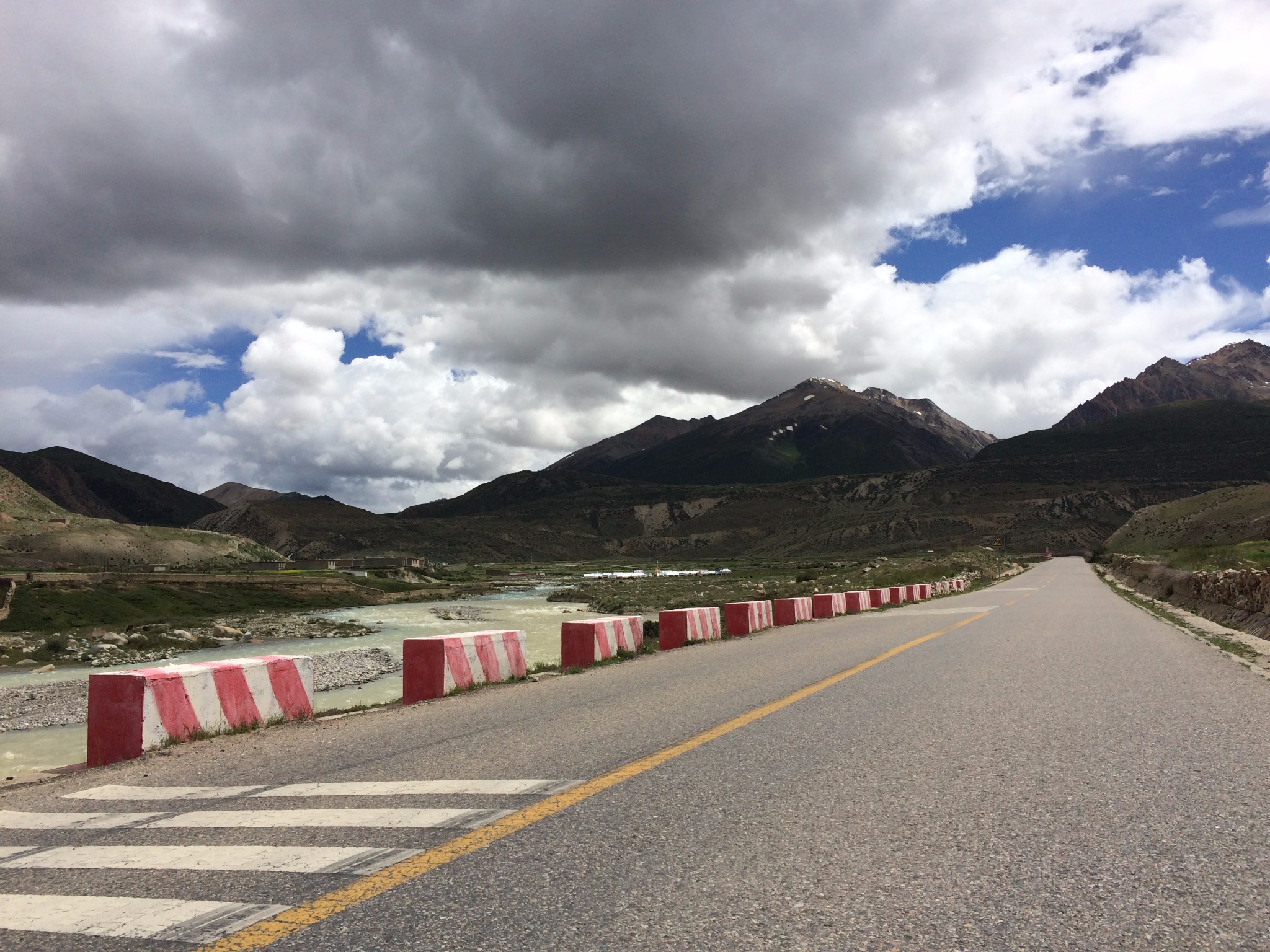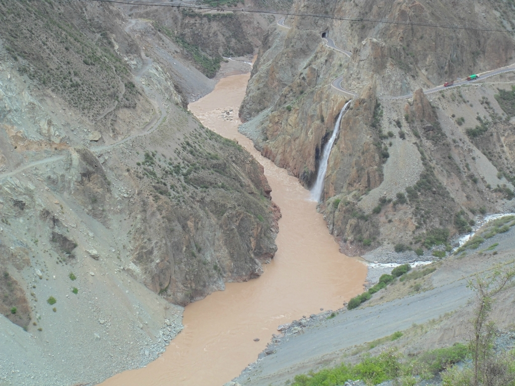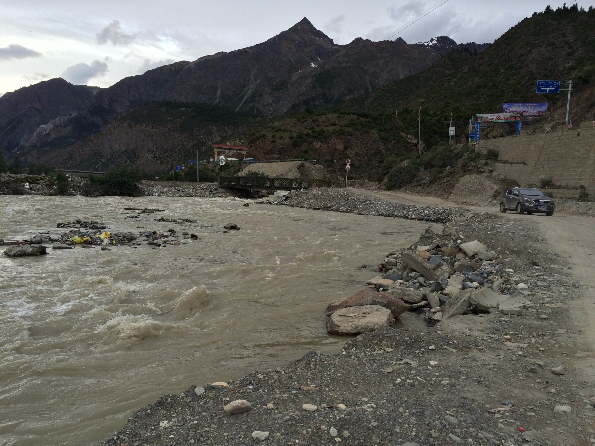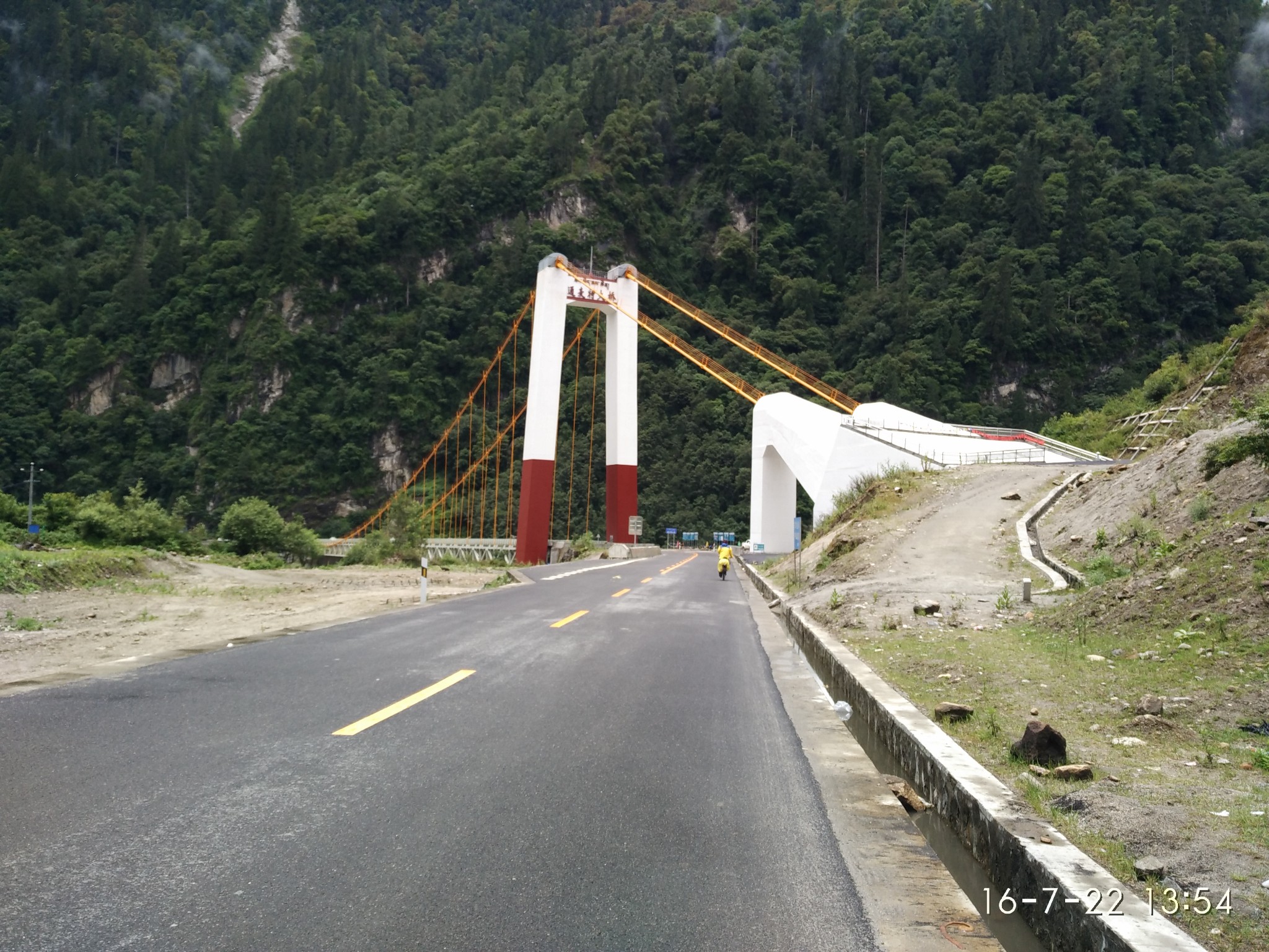 在过去就是隔界河了 一过界我的变速器就罢工了 幸好和亚麟在一起 帮忙搞定 不然今天晚上真不知道怎么办了---------------------------------------------------------------------------------------------------------进入境内基本算是雨季宣布到来了~D10 -红啦雪山-村 2013.6.22 忽晴忽雨进入算是正式进入境内了,昨天经过的就是进最后的一个小乡镇了 过需要出示身份证,有边境警察站岗查证今天的任务基本就是爬红拉雪山了 期间经历春夏秋冬、大晴大雨就差下雪了214段是进入境内的第一座城镇,也是茶马古道 中极为重要的小镇。所以出现驴马驮包灰常正常。爬红拉过完一个隧道处 休息吃早餐 一只雄鹰一直在天上盘旋