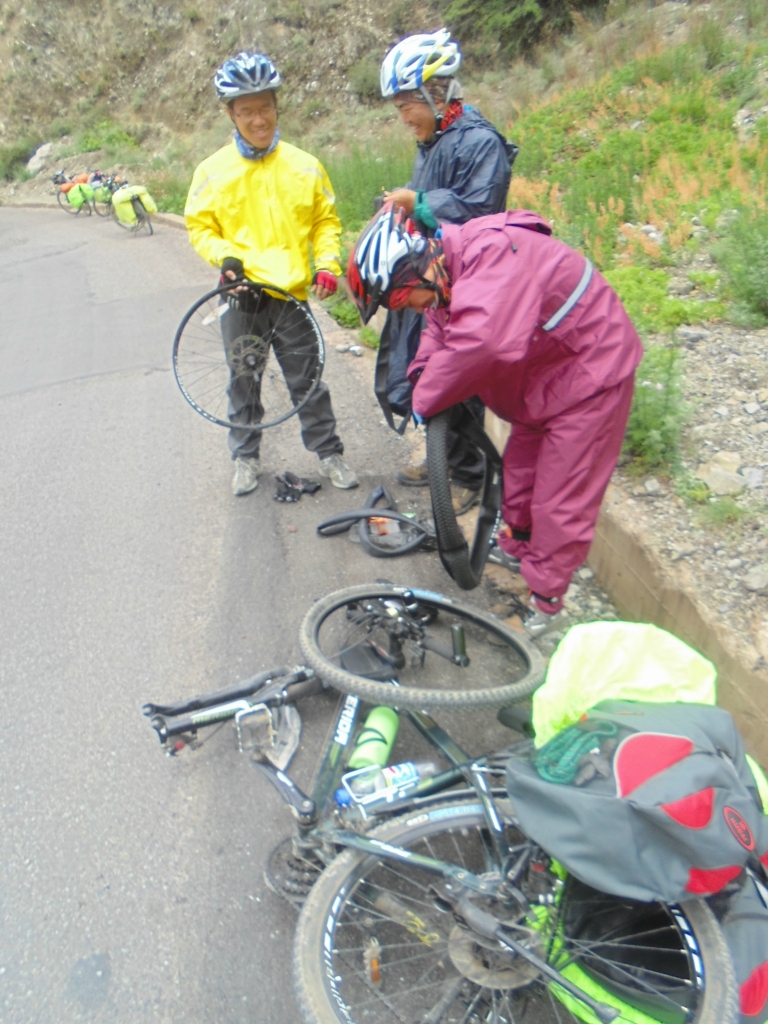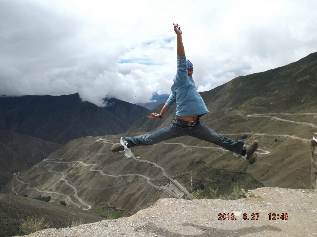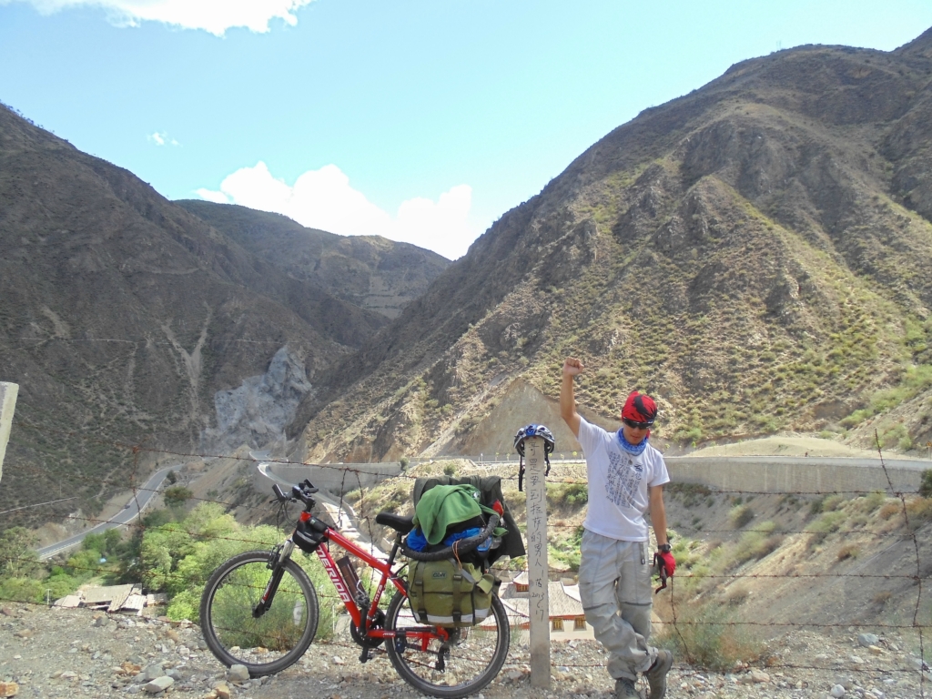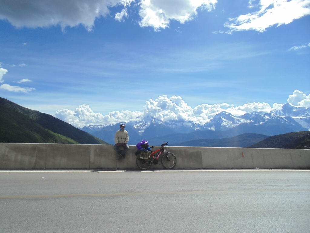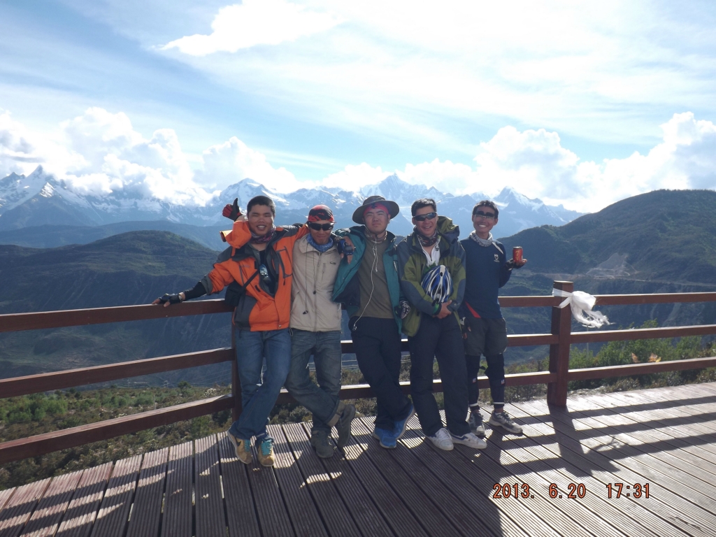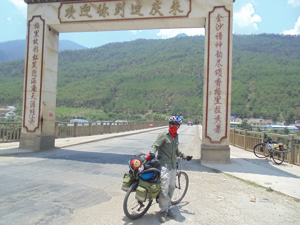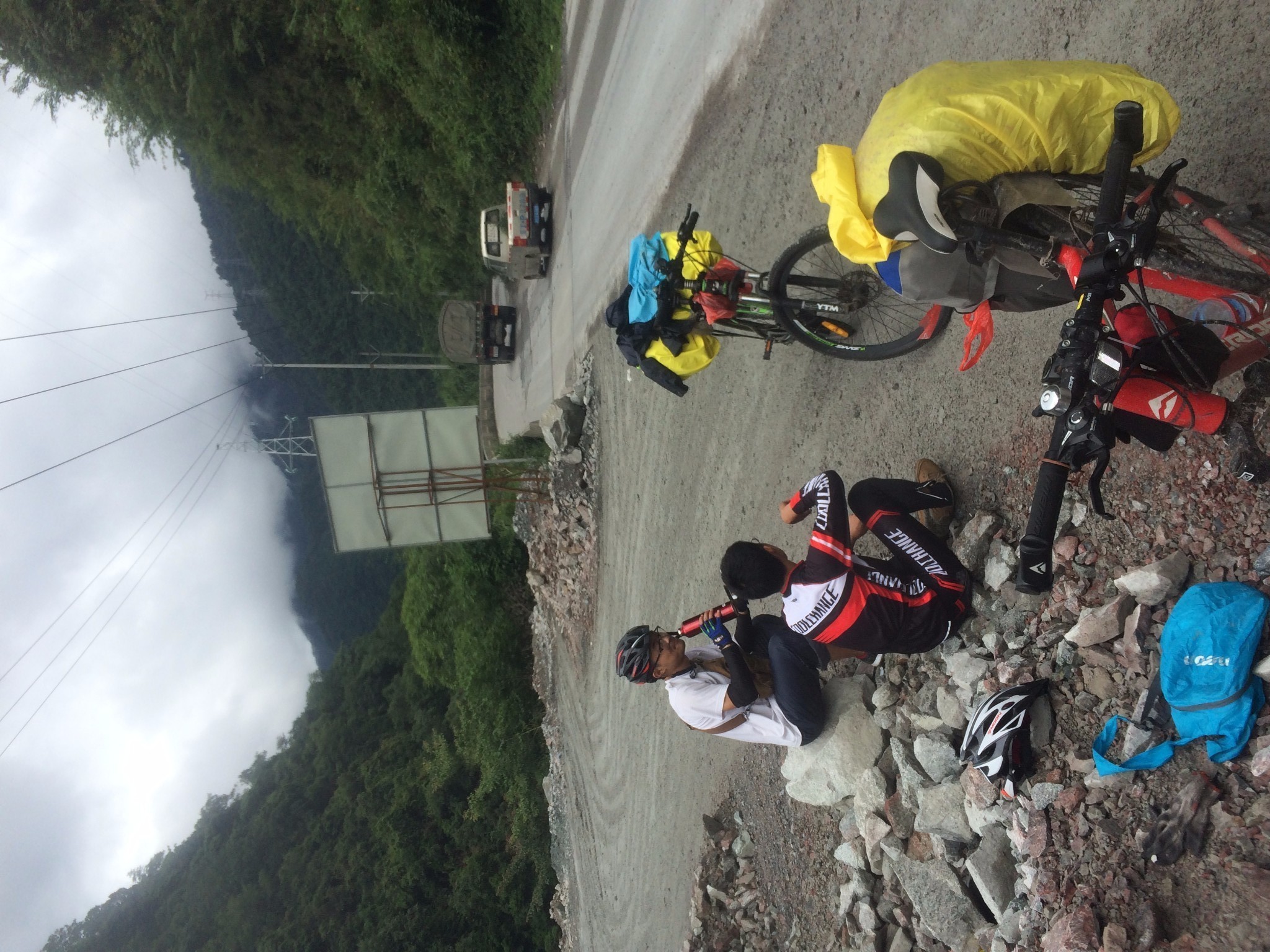出了奔子栏 又开始无休止的上坡了 每天每个人状态不一样 所以进度也不一样 记得到这里 小硕也沦落为推车王了