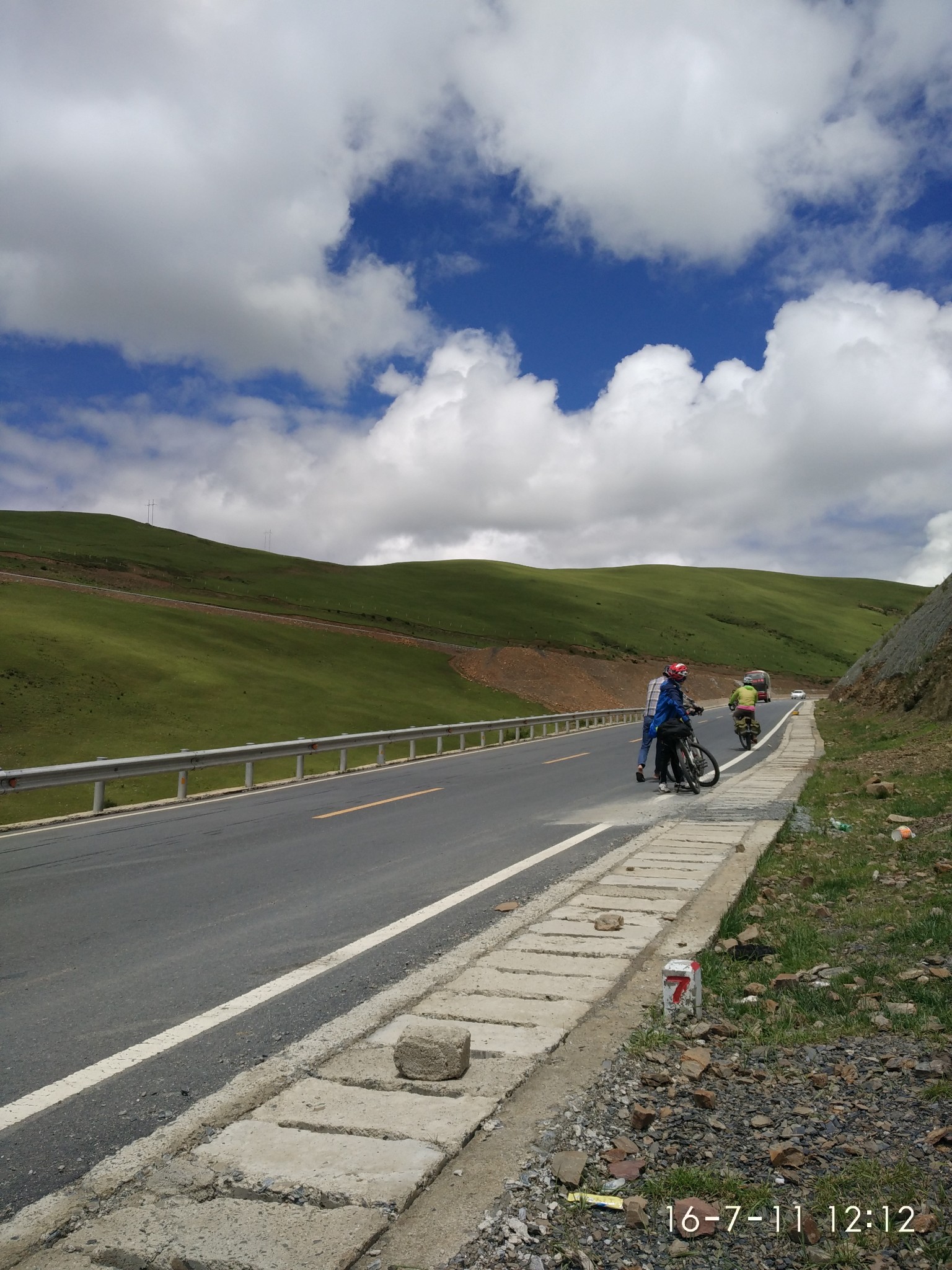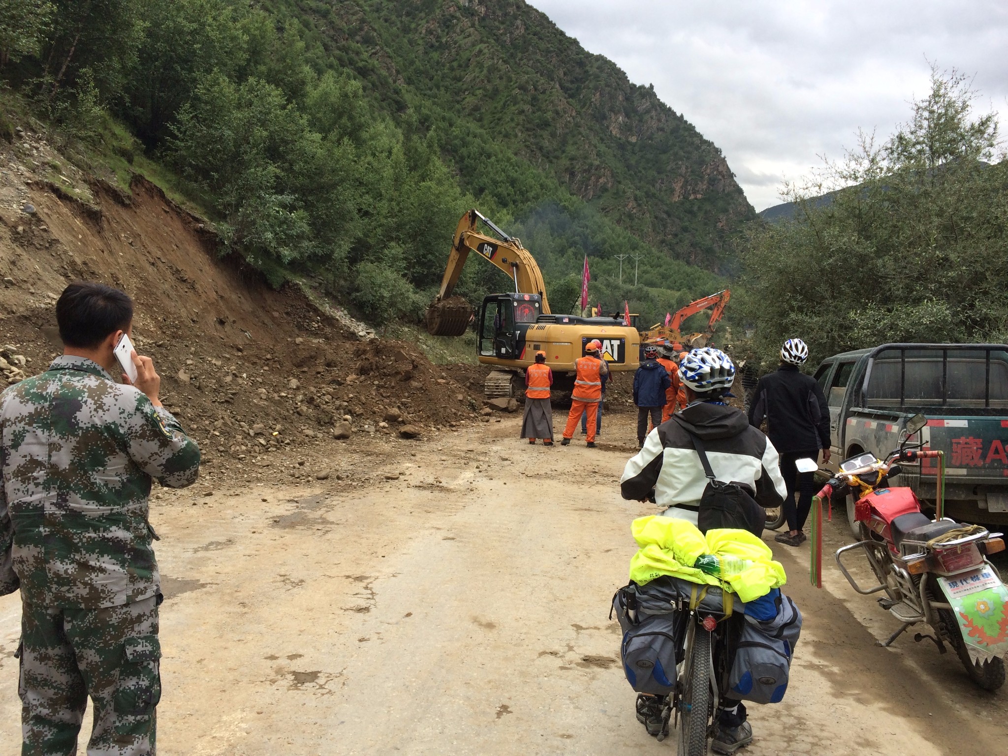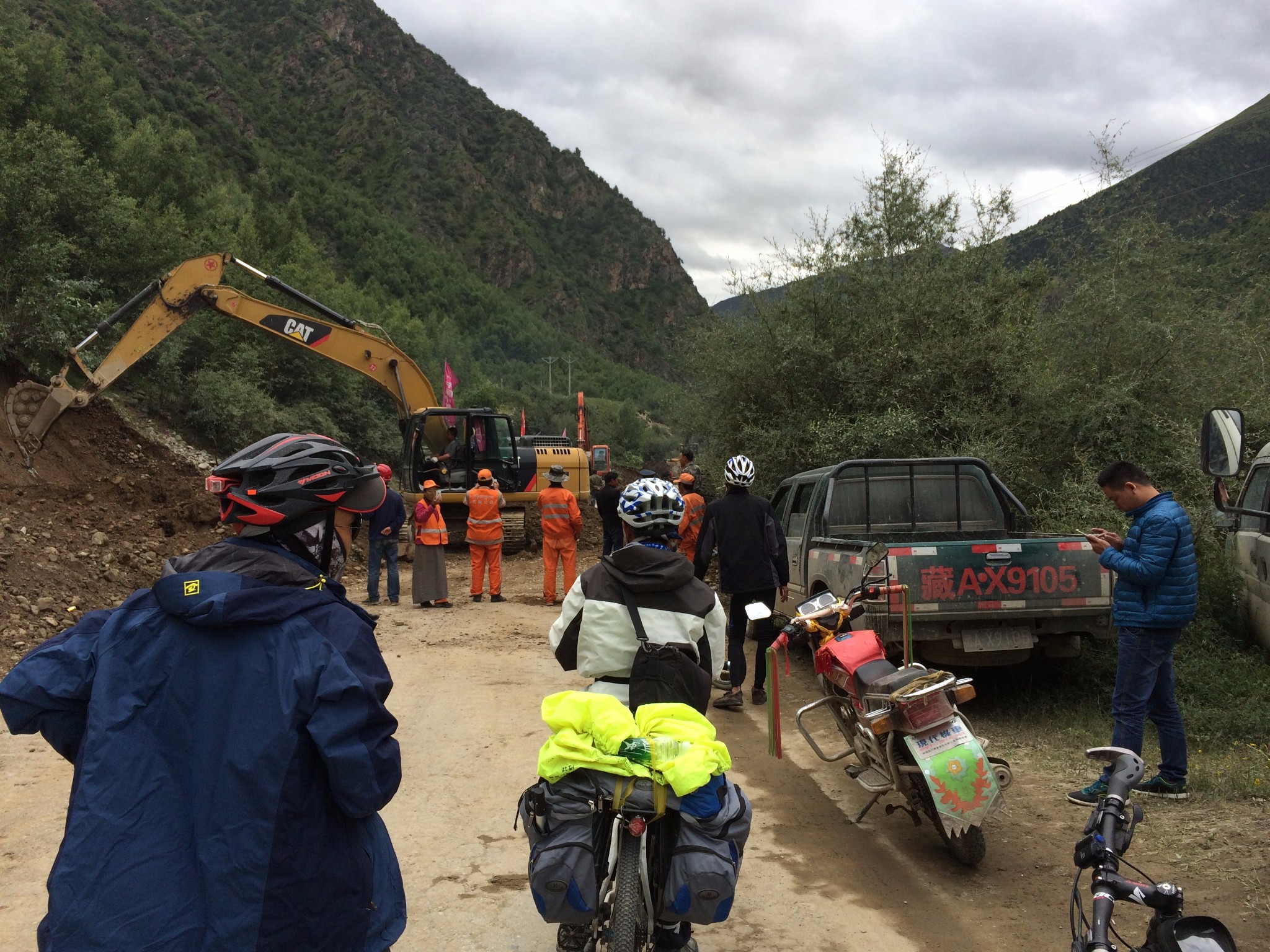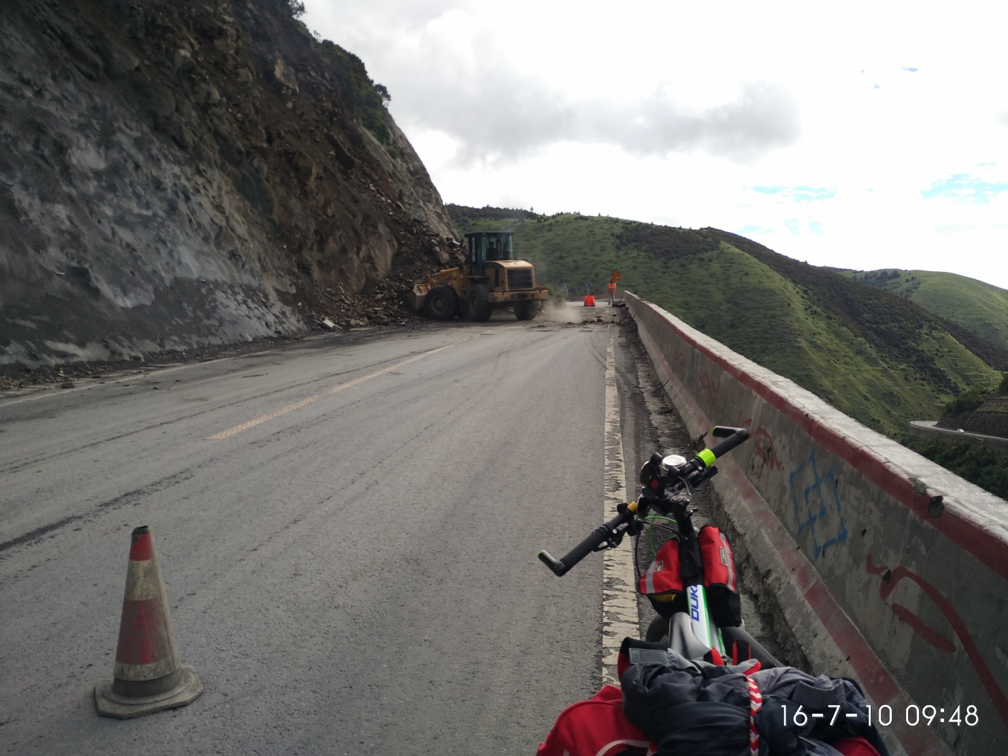 出了奔子栏 又开始无休止的上坡了 每天每个人状态不一样 所以进度也不一样 记得到这里 小硕也沦落为推车王了