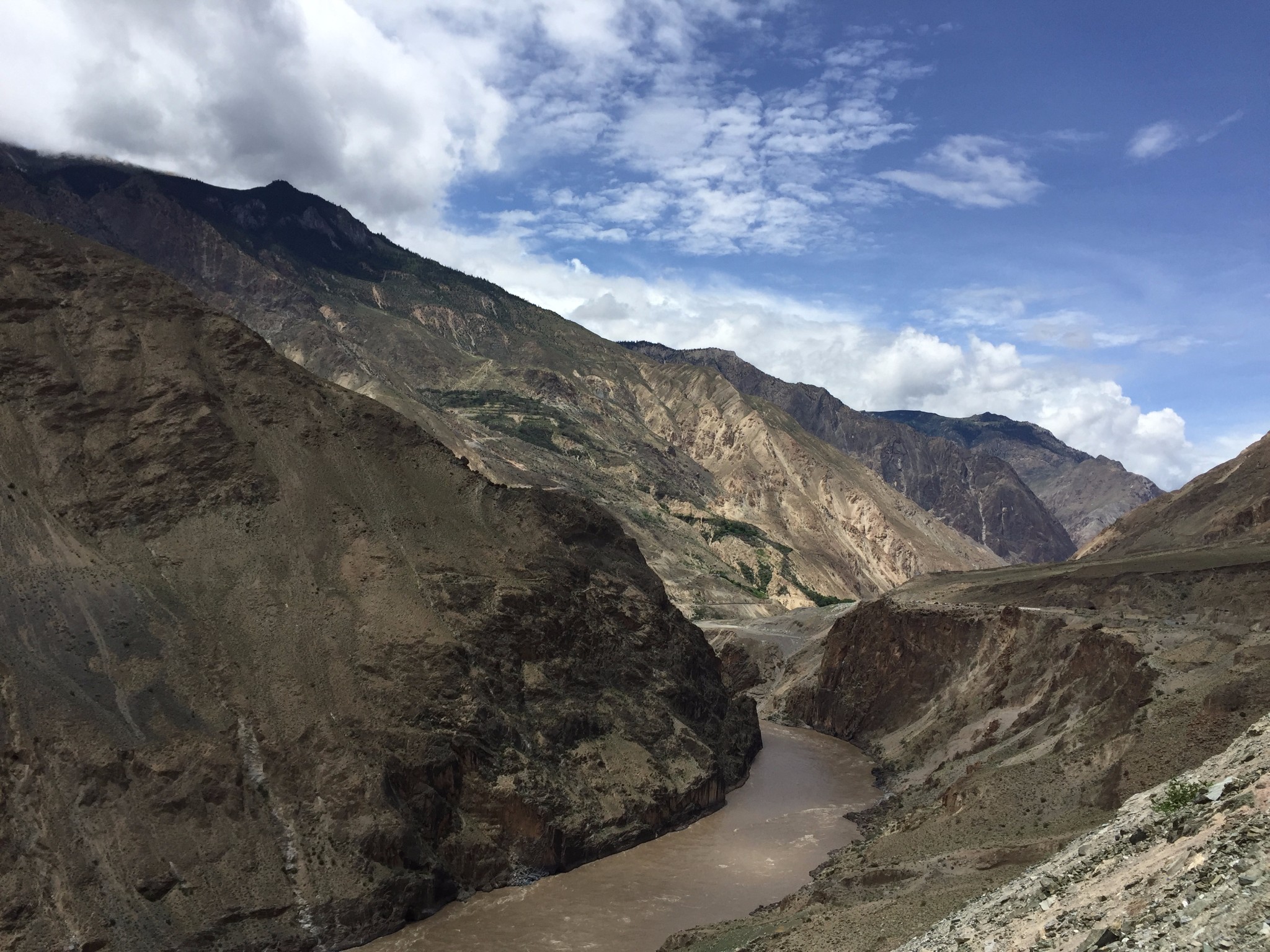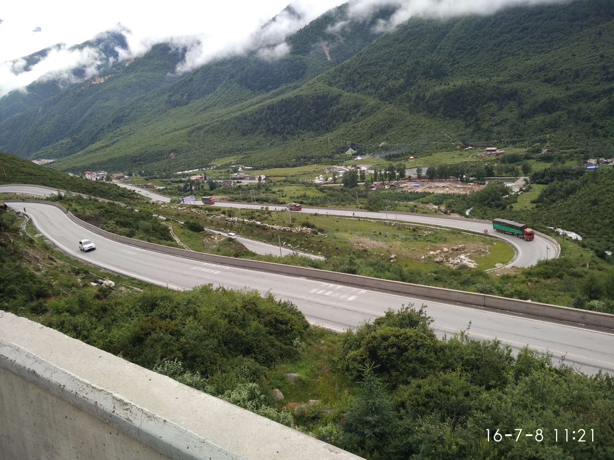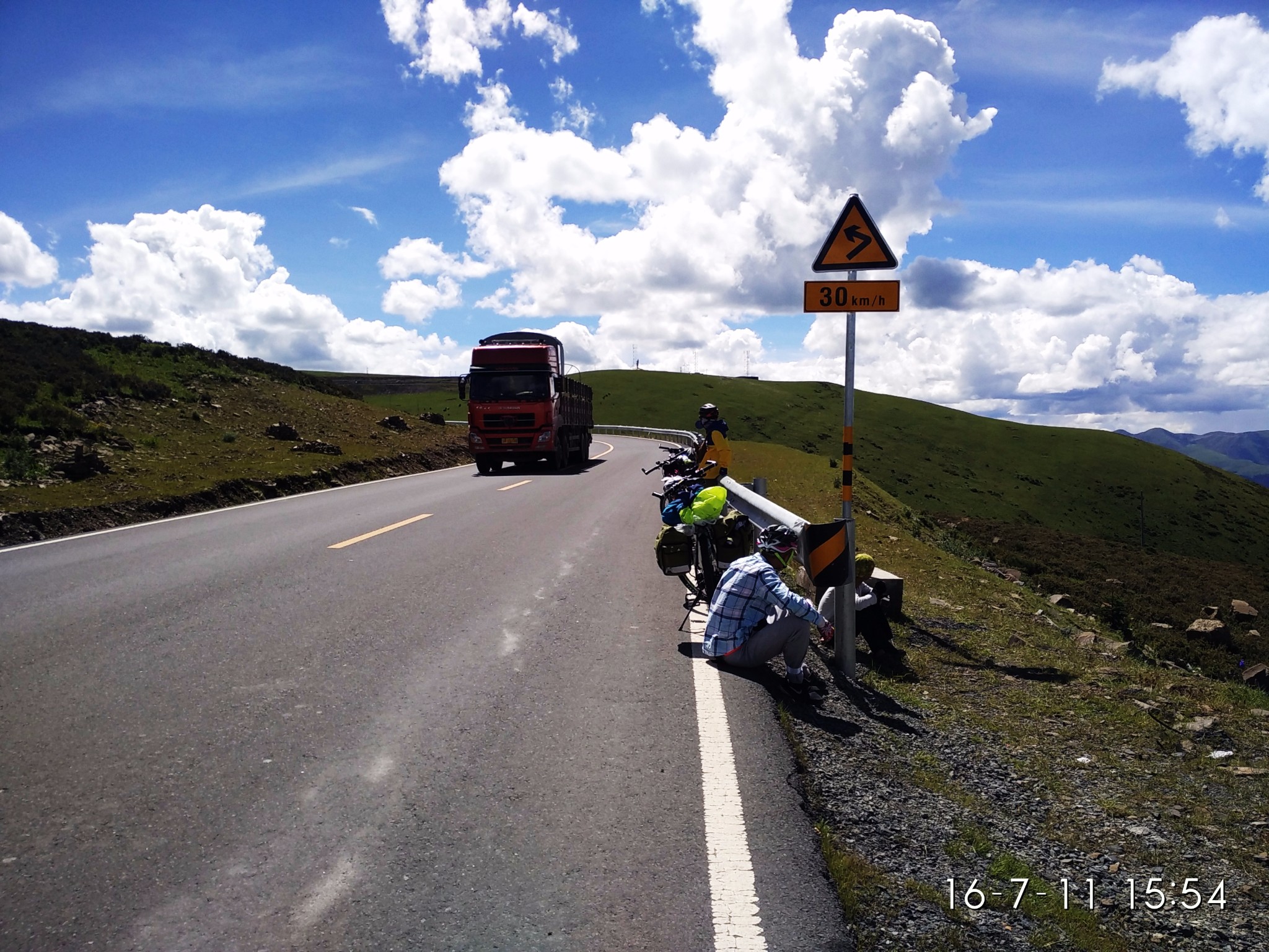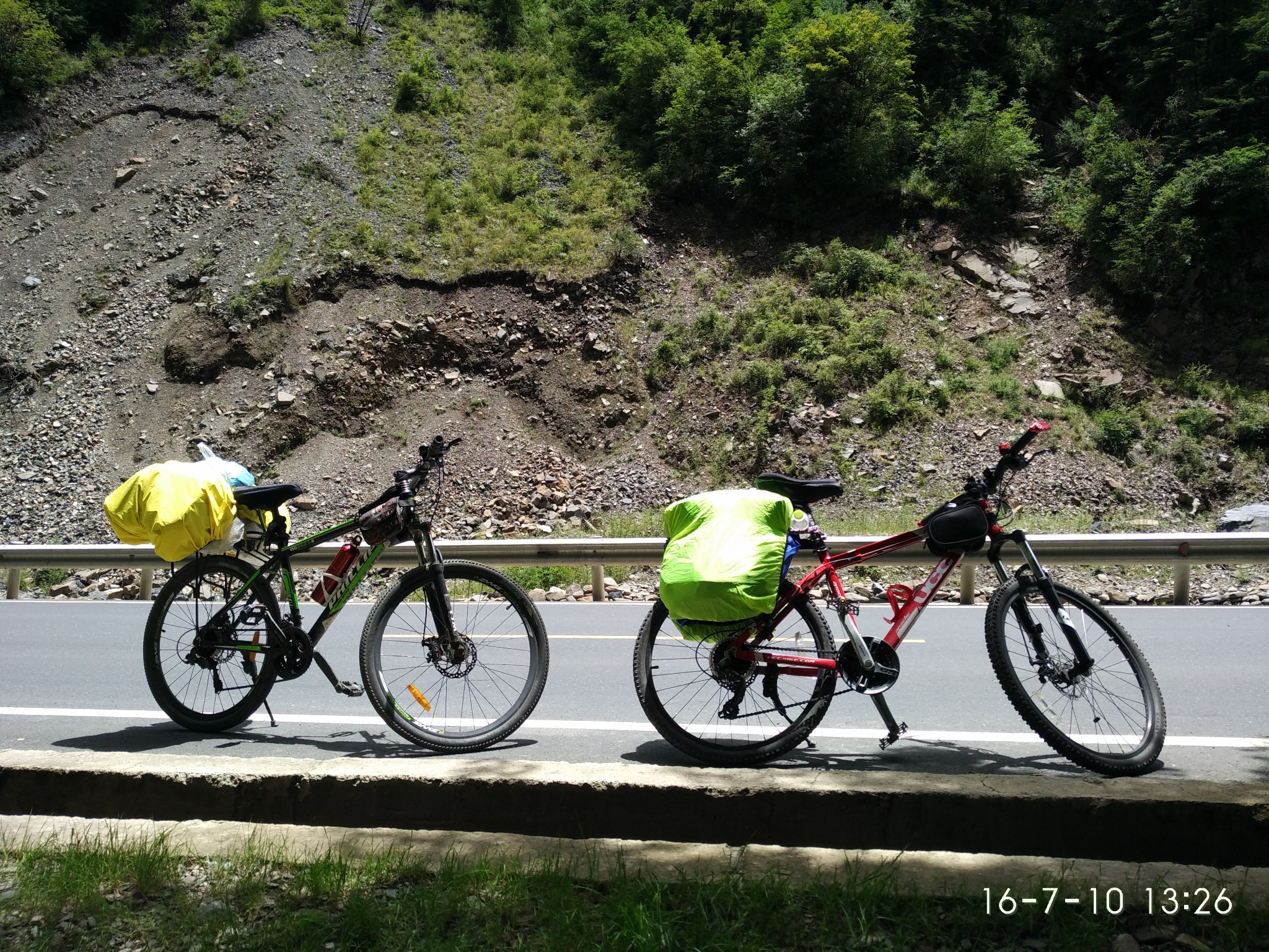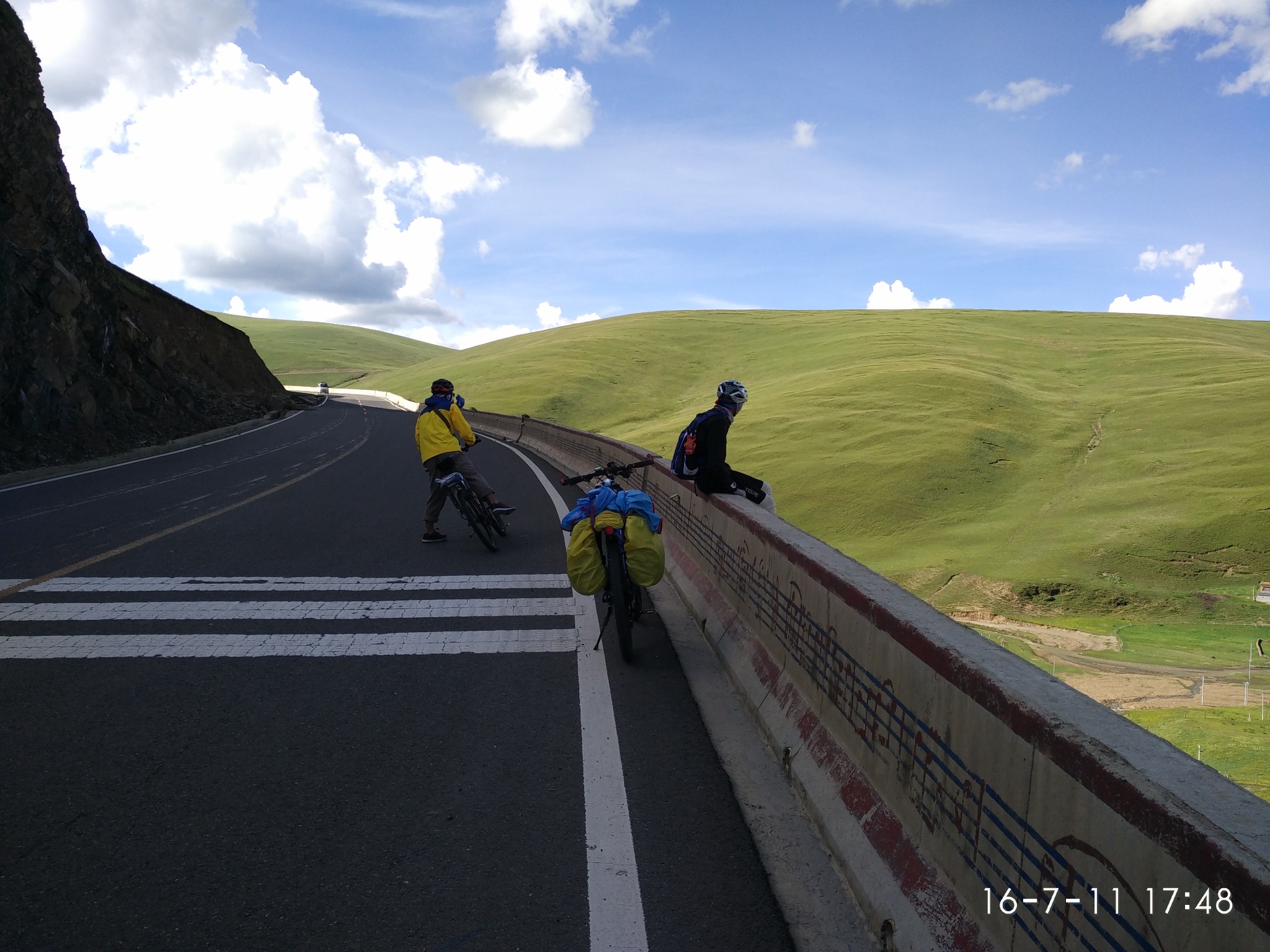 出了奔子栏 又开始无休止的上坡了 每天每个人状态不一样 所以进度也不一样 记得到这里 小硕也沦落为推车王了