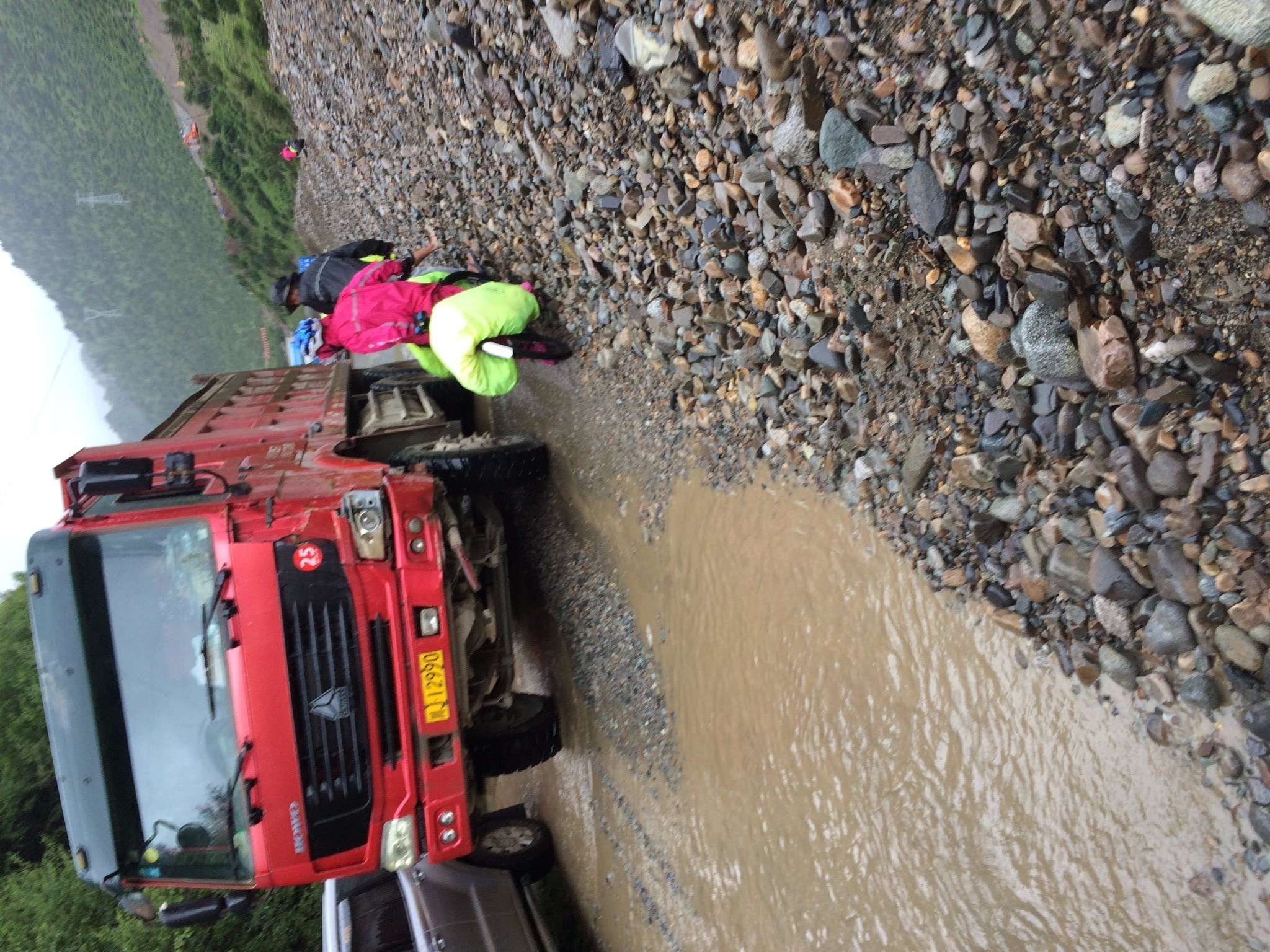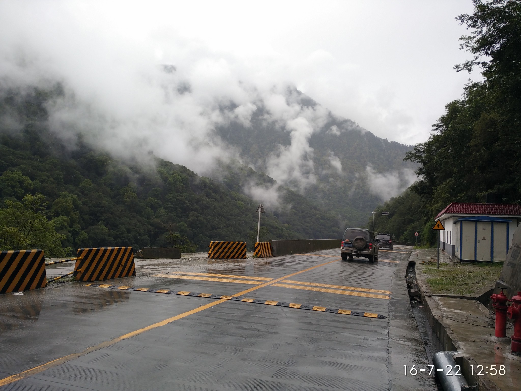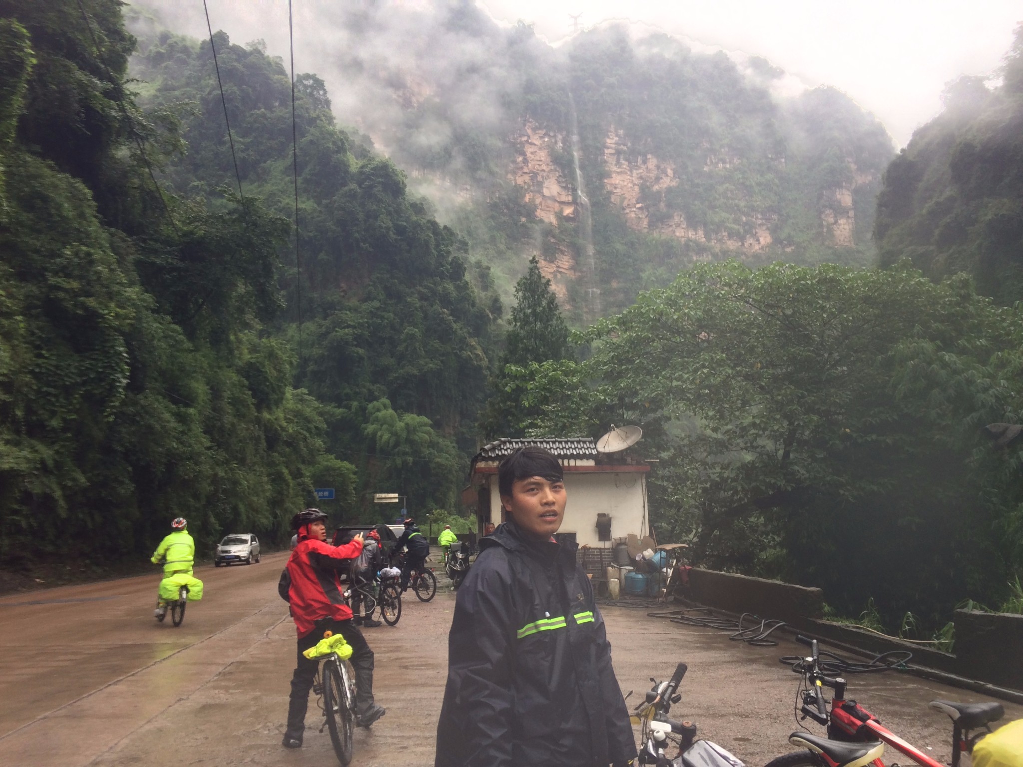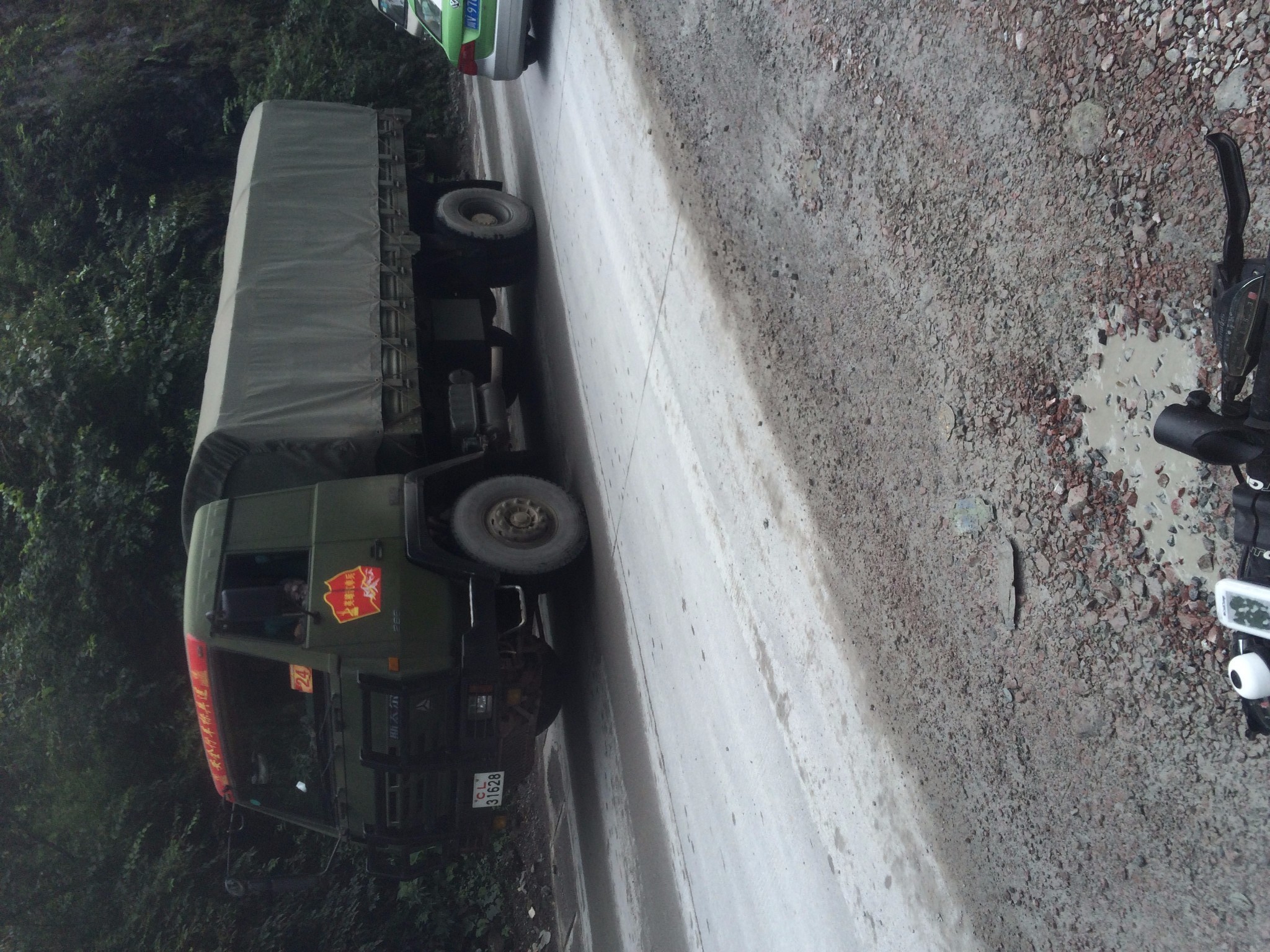 打听了下情况 前方塌方 还大雾 能见度太低 很多人建议休整一天在前进 考虑到前天已经在书松休整过了 大伙商量了下 决定冒险下山 不过分配了各自的安全工作 车速20 慢慢下 有情况直接呼叫协助 当时中午一点 目的地--