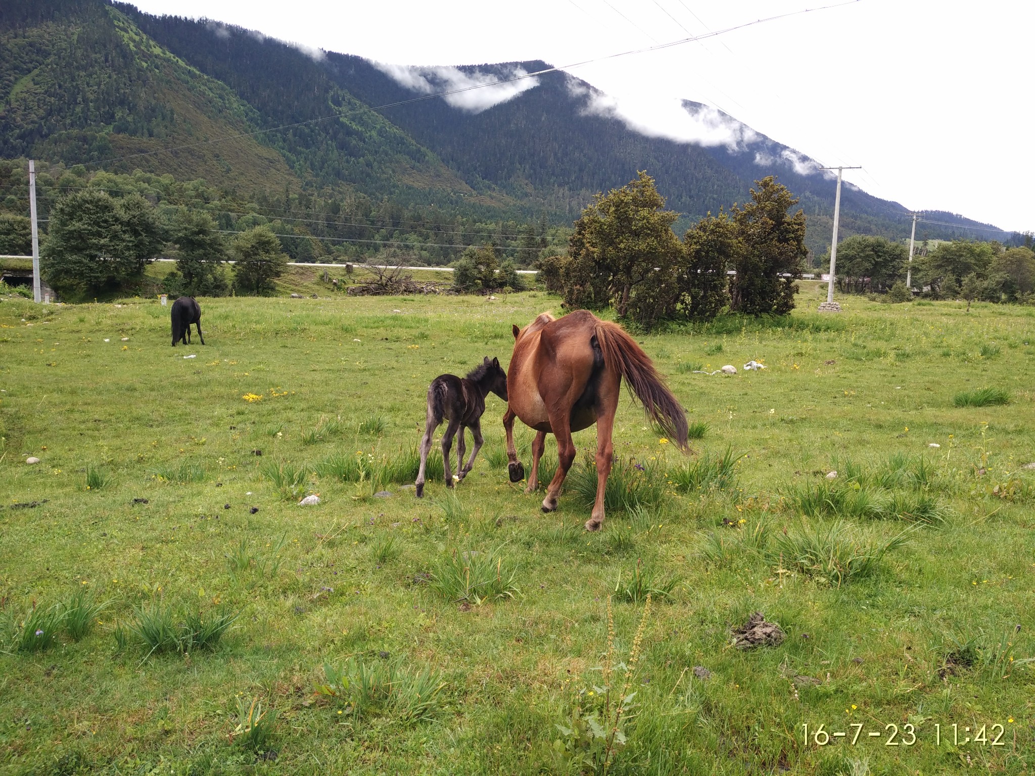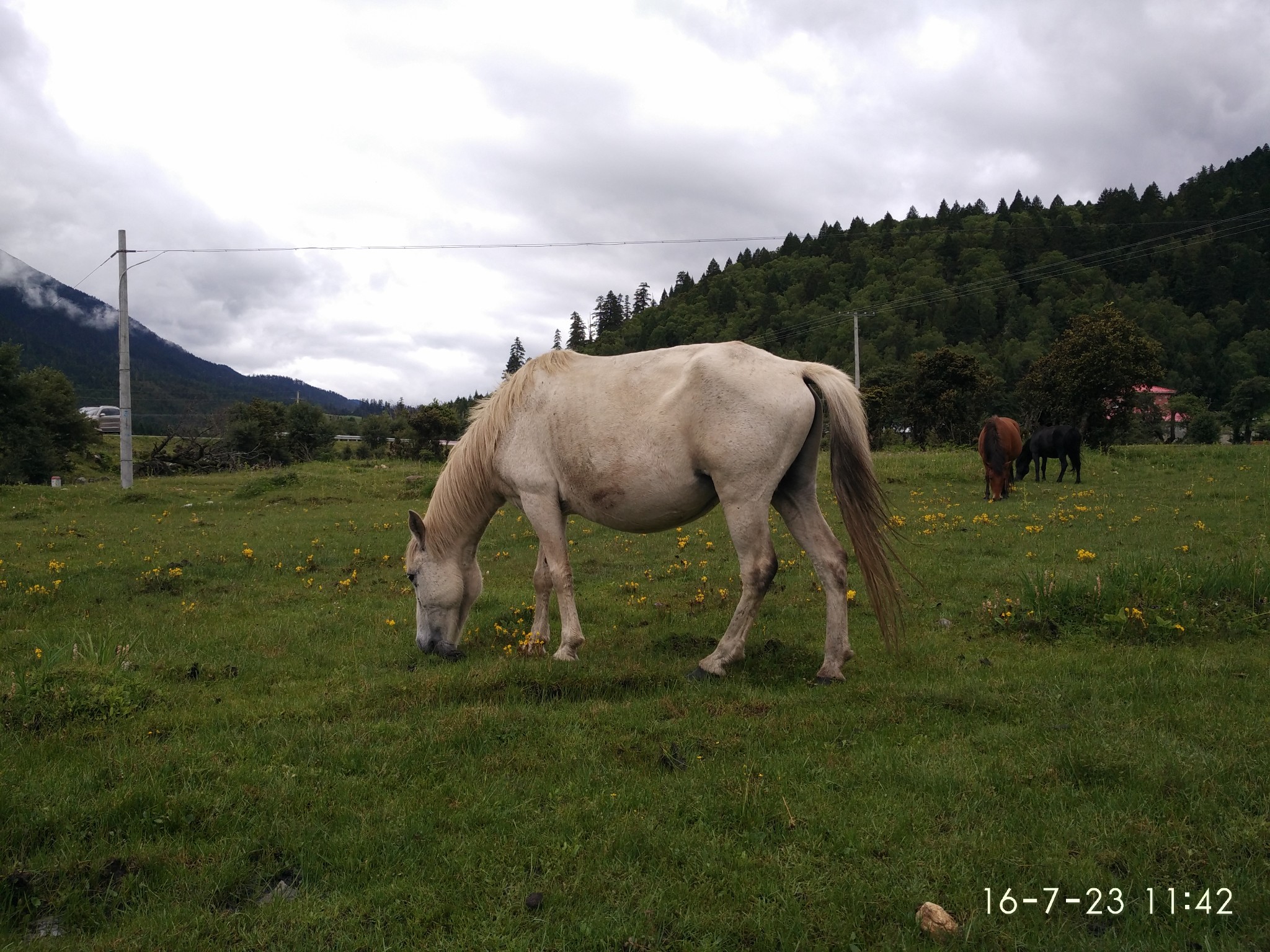 ---------------------------------------------------------------------------------------------------------D20 鲁朗--鲁朗林海观景区--色季拉山--镇--八一镇 2013.7.2 晴-雨-阴鲁朗住的藏民家环境太好,睡到的舒服到不行~ 习惯懒懒的起、不慌不忙,回到石锅一条街吃了早饭盖章走人,刚开始一路阳光明媚,又回到一个充满鲜花的地方,在往前走到4106天气渐变开始下雨,行程与美景瞬间幻灭,拍照也没了心情,最崩溃的事昨天本来已经湿掉的鞋子没法在穿夹着拖鞋一路狂踩~~过鲁朗观景台处双腿冻的已经没有知觉,停车在一家藏民家避雨顺便泡了碗泡面啃馒头,依然全身冰凉,不过吃的泪流满面,能明显体会到热量在全身蔓延开的感觉。进八一果然有进小县城的感觉,找到落脚的地方,吃了个饭已经9点,离越来越近了还有406km,慢慢来~ --记 .八一 康巴部落旅店