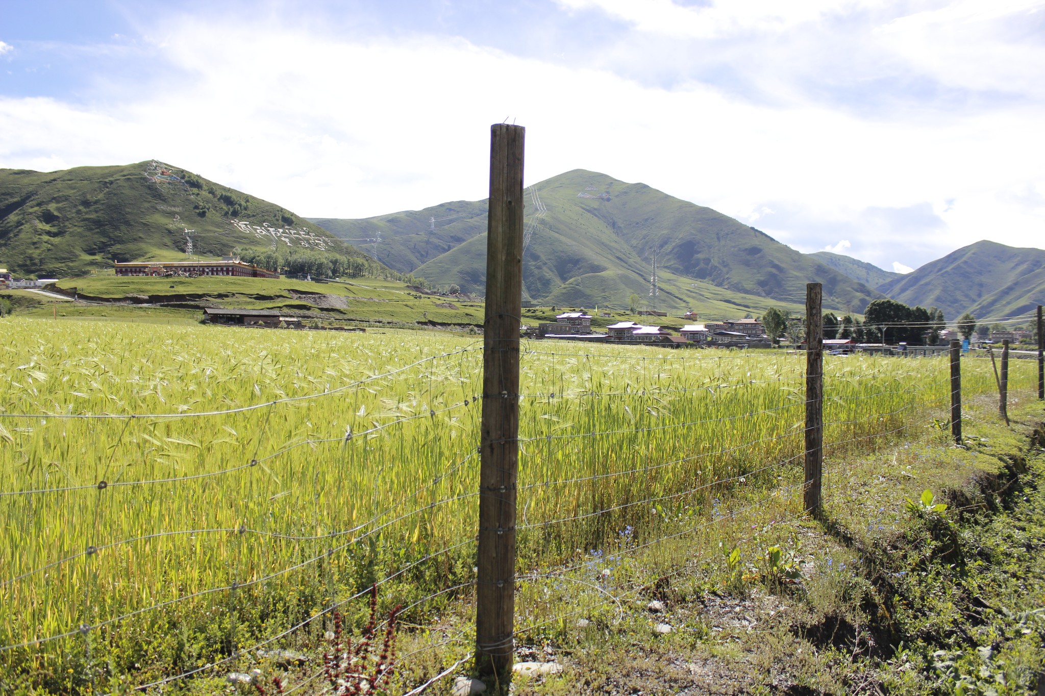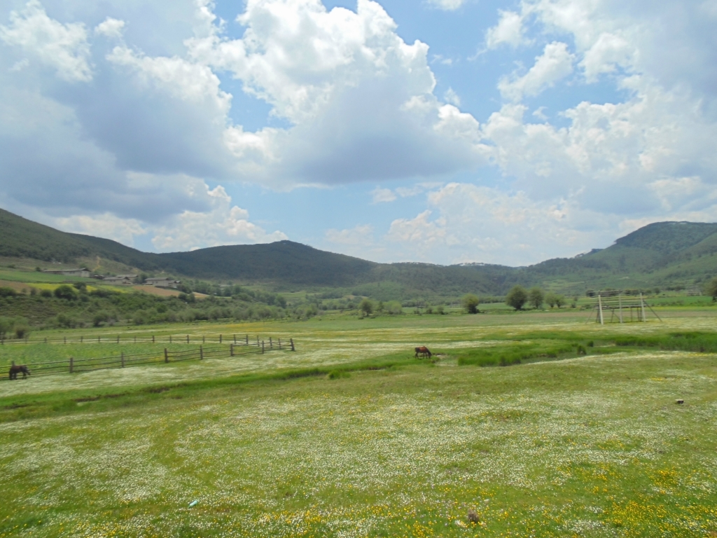 开阔地带 在前方就是纳帕海草原收费口了很大的一片大草原 站在围墙上面视野很开阔