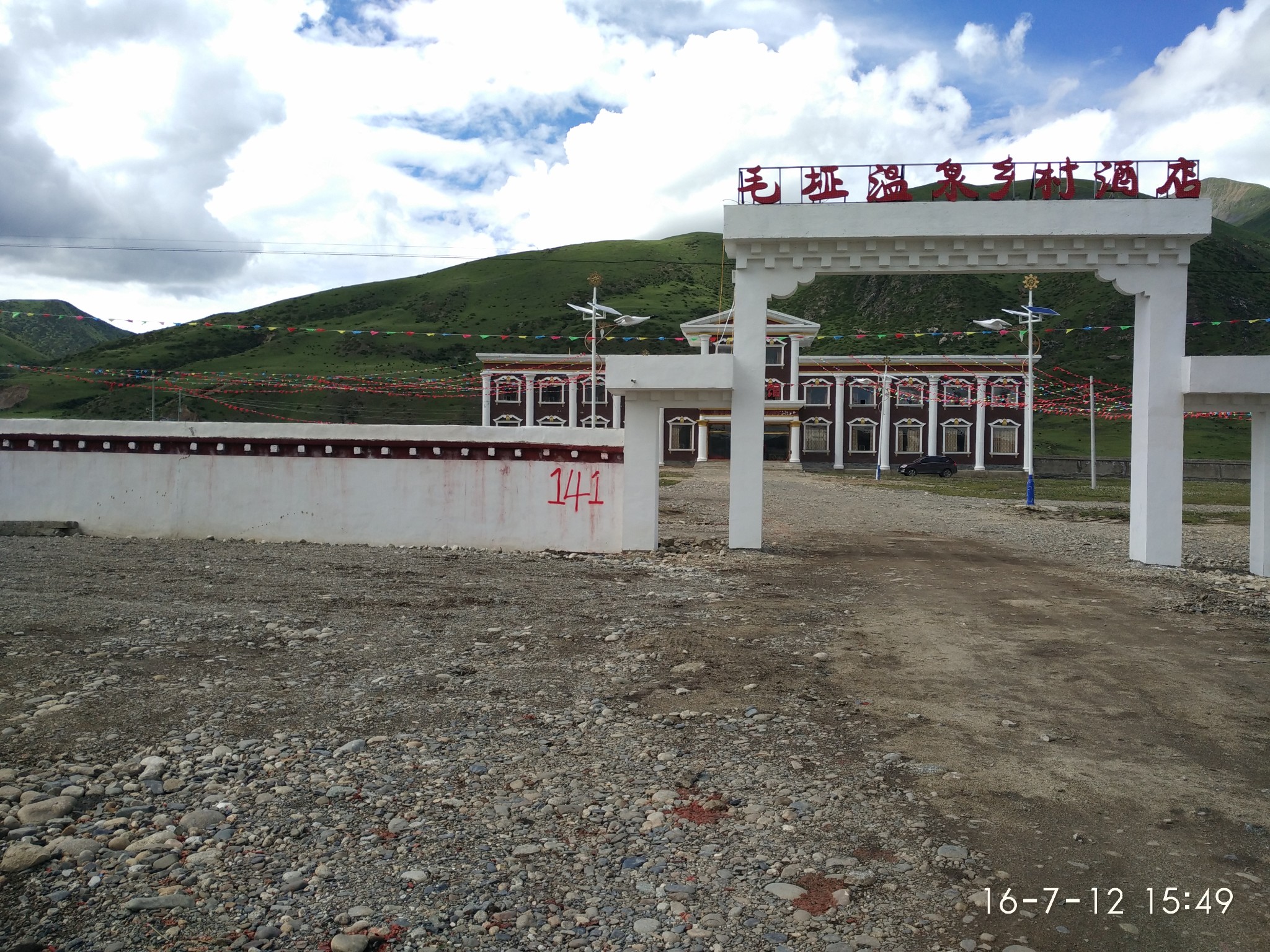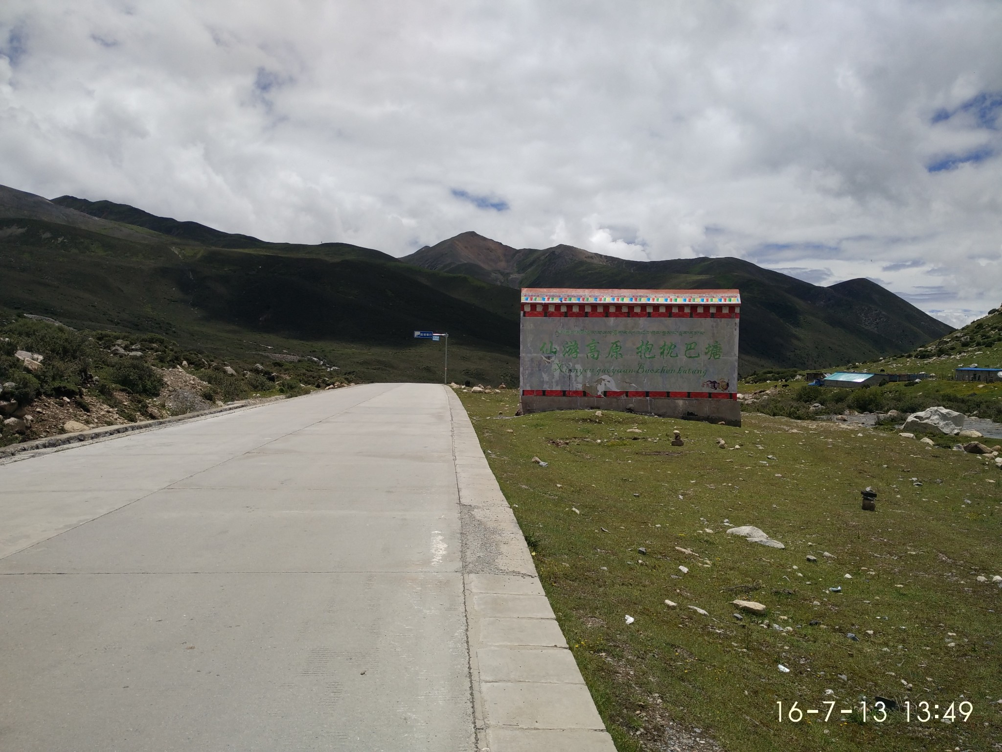 D22 --金达镇--加兴--松多 2013.7.4 晴--小雨昨天在青旅休整,店家很热情,厕所很大不能洗衣,服务五星,四床铺住了我峰仔还有一个驻扎在这边的小伙,做工地工程的,满口的口音很亲切。今天是滇藏骑行的倒数第二天,行程100km,海拔上升高度1000m 8点起收拾完毕吃完早饭9:0邮局盖章走人,上午状态不是很好,有很漂亮的蓝天白云黄花菜,今天要经过“砥柱中流”免不了又有很多包车的游客驻足拍照。一路吊车尾直到加兴镇4400处休整,喝了藏姑娘提供的甜茶,在油菜花田美美的睡了一觉开始发力前行,在4444黑暗界碑处等峰仔,一起同行到今天的落脚点松多。发现离越近越有点不舍,最早的急切道现在都变的坦然,就在前方,这回是真的不远了·-- 记 松多