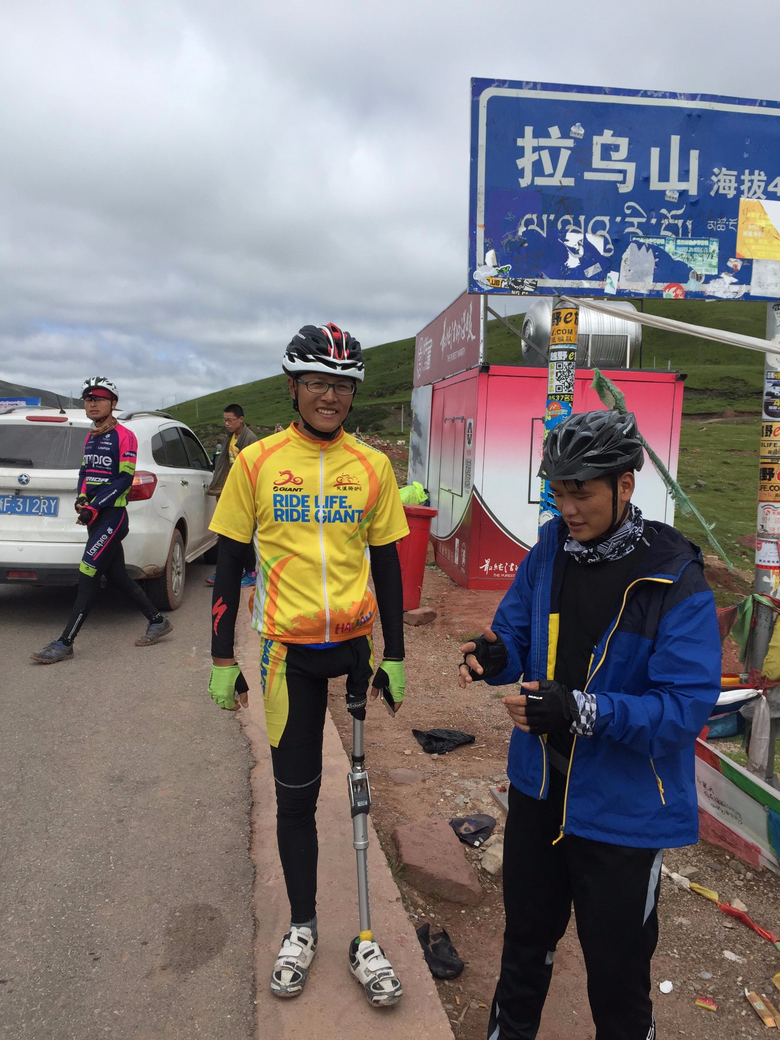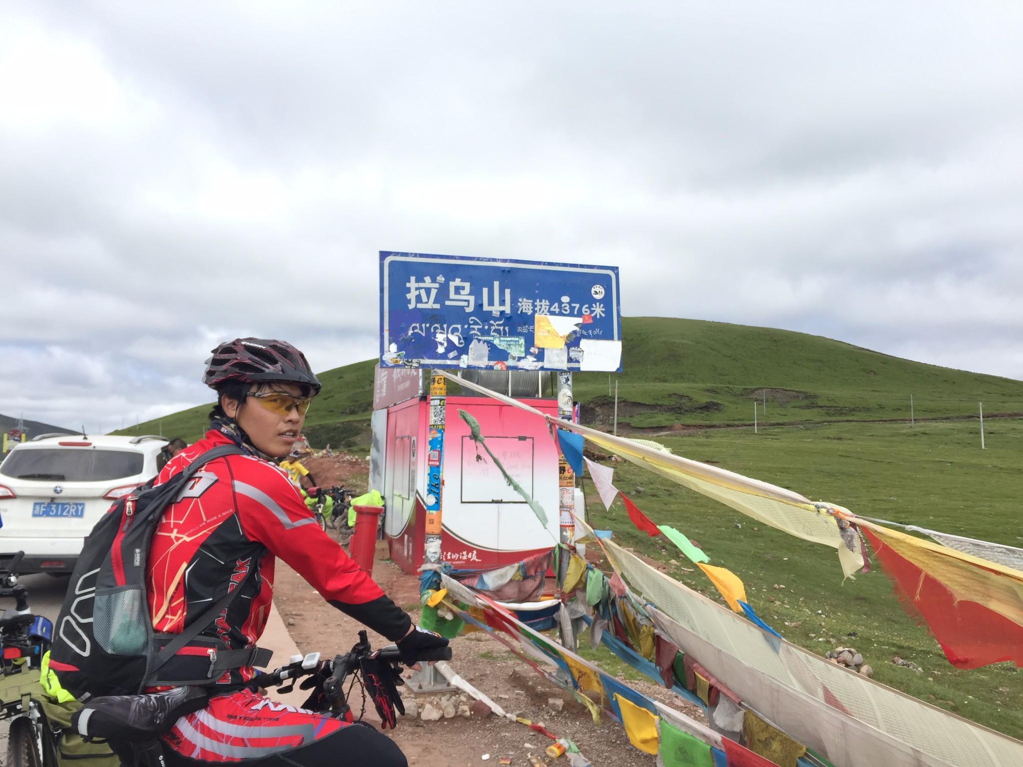 第一个冲上了拉乌山垭口,两个搭车小伙上前给我颁发奖品,说是说好了,见到谁第一个上来就把礼品给他,居然是一把六角形简便扳手,