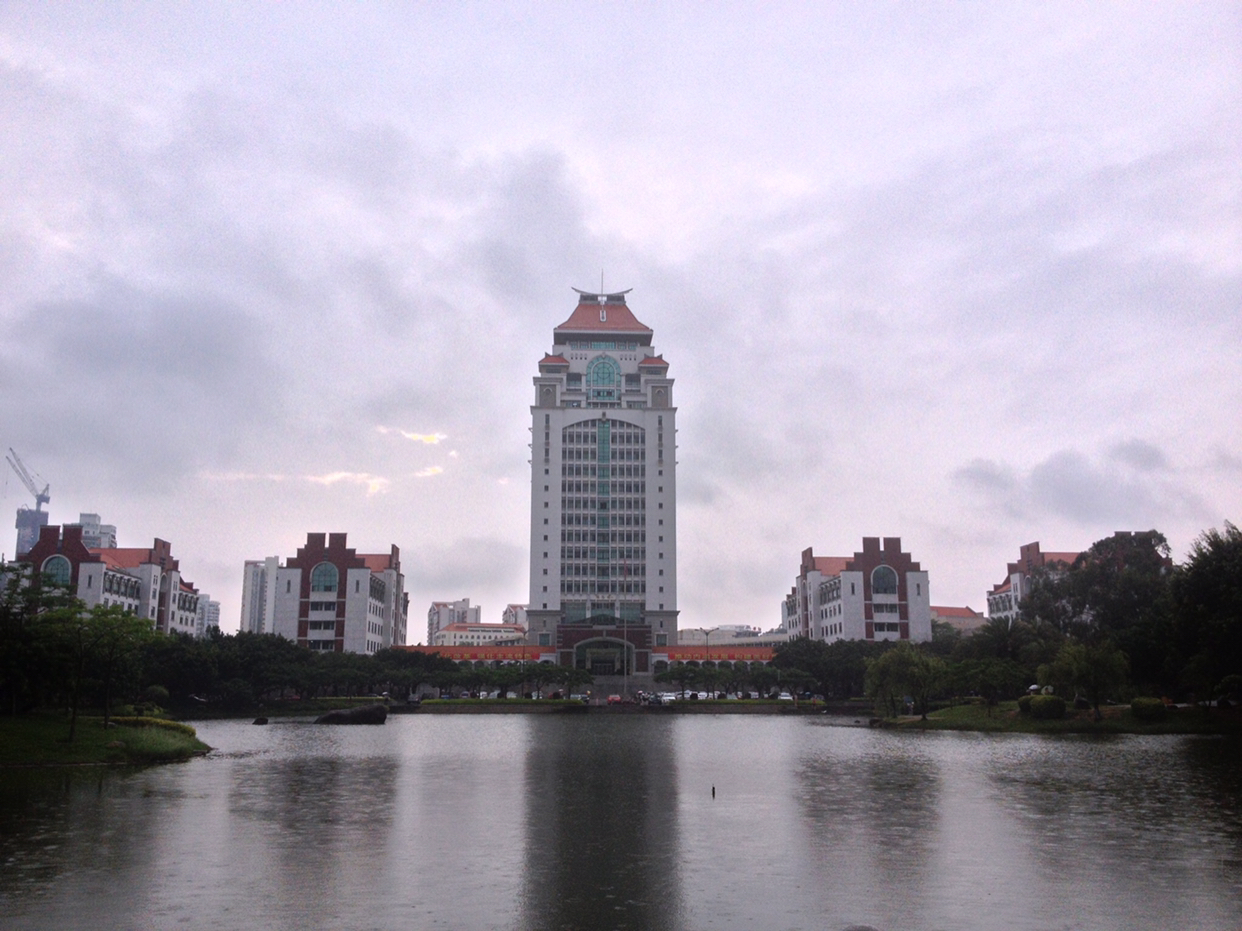 天公不作美,下起了雨来,但行程不能改,打车来到大学,门口已经排起了长队。大学免费参观,但只限于中午和晚上,晚上时间充裕些,还要验证身份证方可进入。大学依山傍海,核心是芙蓉湖,旁边有嘉庚楼群,最高的是21层的行政楼。网上推荐站在楼顶看厦大全景,但到了才知道,行政楼是不让进的。正为天气而烦心,来到湖边,雨却停了,空气格外湿润清新。沿湖漫步,都是郁郁葱葱,还有白鹭、黑天鹅等各色水鸟。