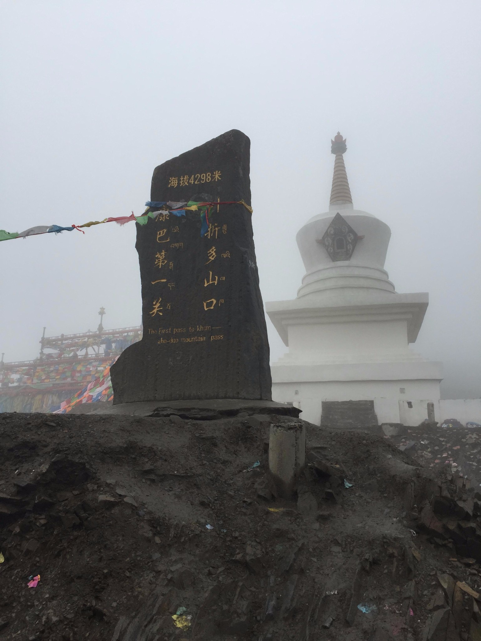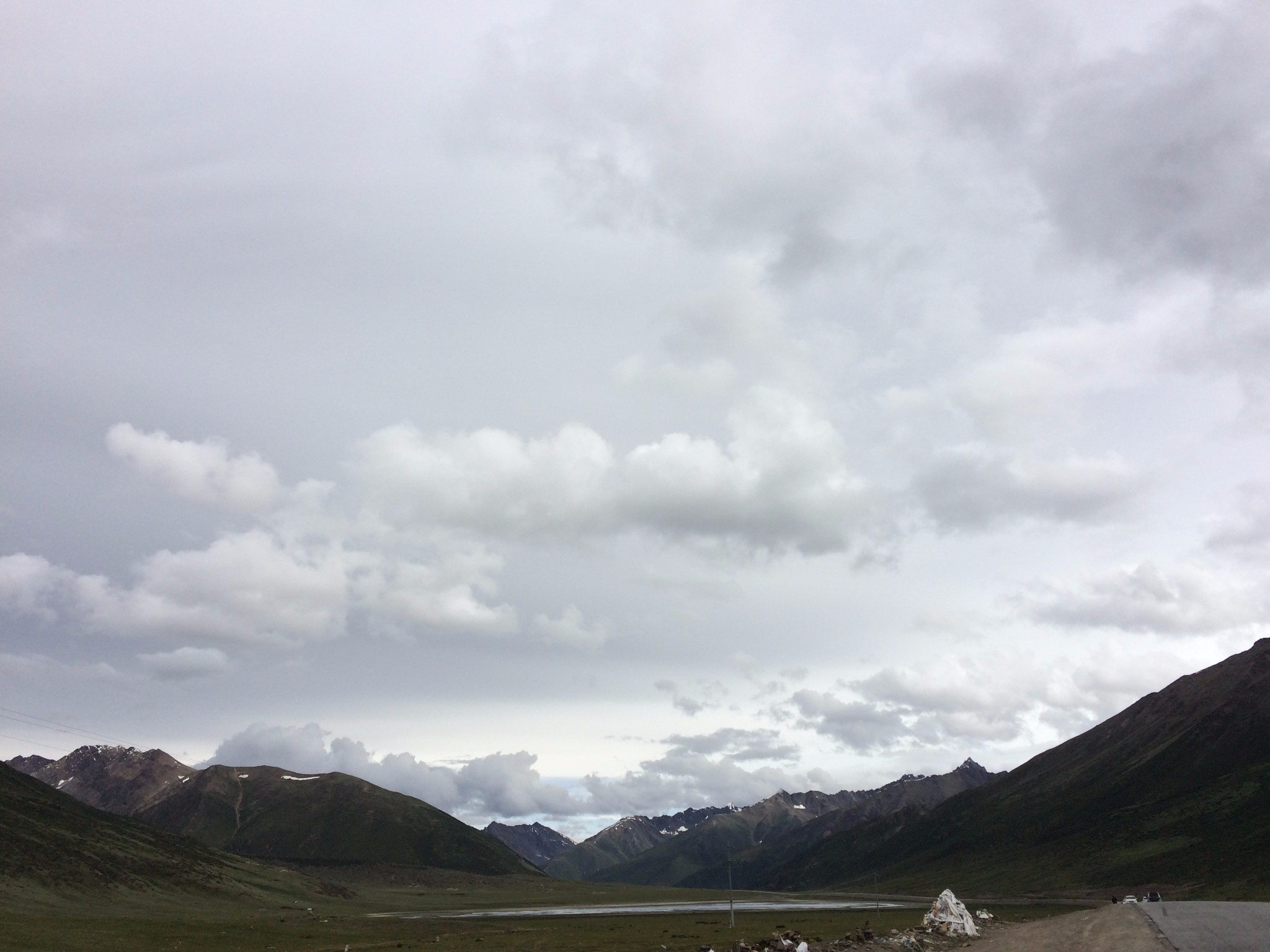 过许荣兵站,在那里可以得到应有的补给,不过物价肯定还是要贵点的,前面就是全程第二高山--东达山,由于昨天冒雨上的觉巴山,所以有两驴友打算还是先休息一天在上,怕高反危及生命有所顾忌,我们还是打算一路向西~在加上变幻莫测的天气,时而大晴时而下雨,还夹杂着冰雹,我天! 果然是分分钟一个季节变化在这里,一阵风吹过,陪伴我半个月的帽子直接被掀到山崖底下,已经累得无力去捡了~留给放牛的娃吧真是咬着牙根,骂着娘上来的 一到界牌,直接下车躺倒地上 大口喘息 心中却是无比激动 ,可他娘的上来了东达山上的玛尼堆 上面寄托着很多祈福和思念,他们遥望远方,给远方的人儿带去福佑~在山顶 今天没有下雪 后来听后面的骑友说 第二天上山已经是满山银素 山舞银蛇了